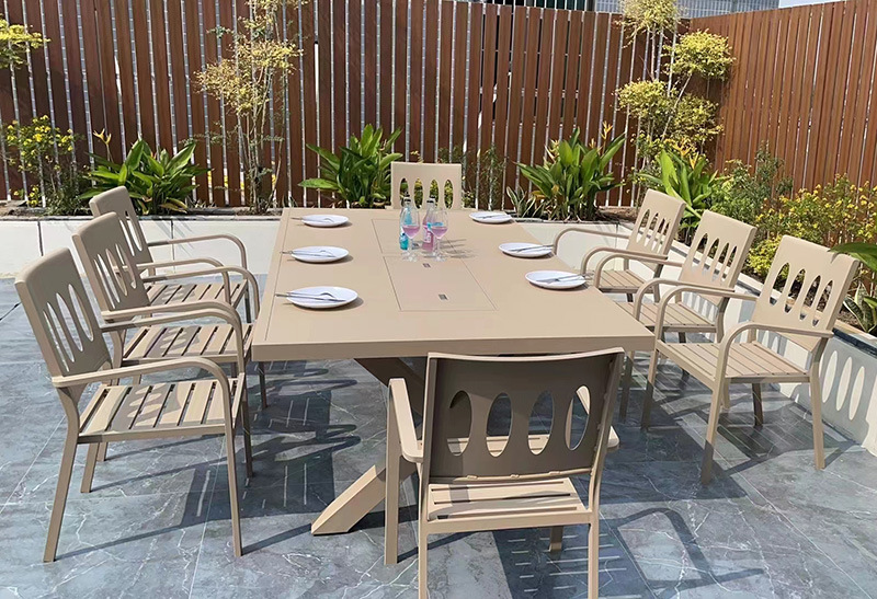 야외 바베큐 테이블과 의자 레저 안뜰 정원 테라스 전기 오븐 야외 가정용 식탁 유럽식 캐스트 알루미늄 가구스토어 가기