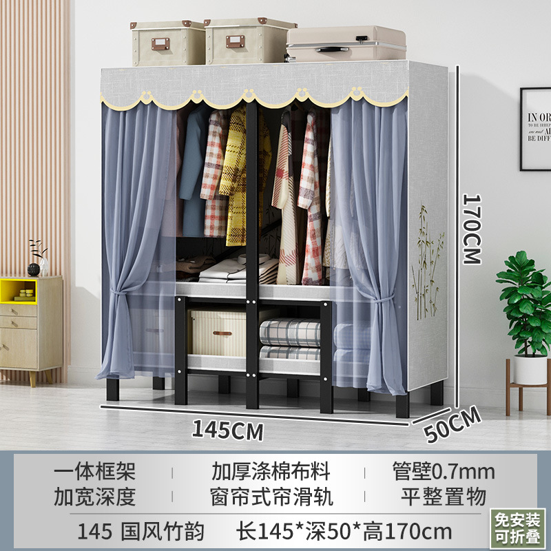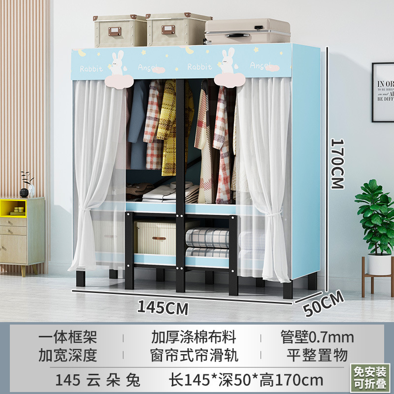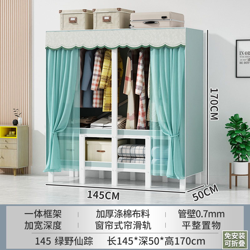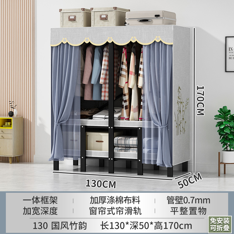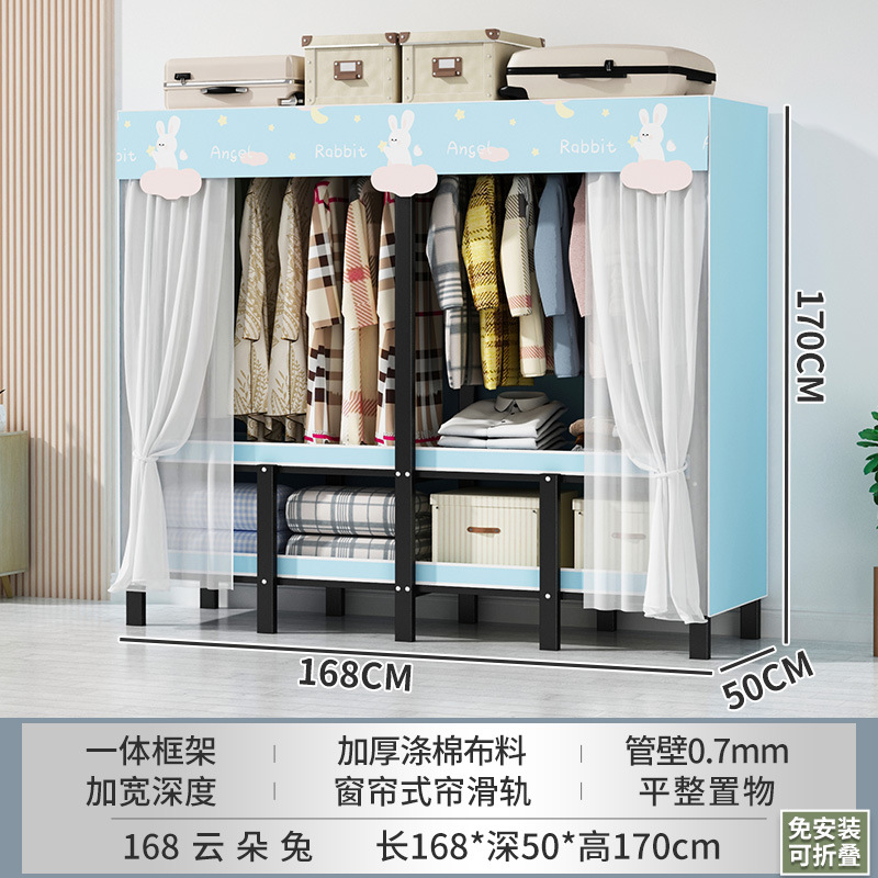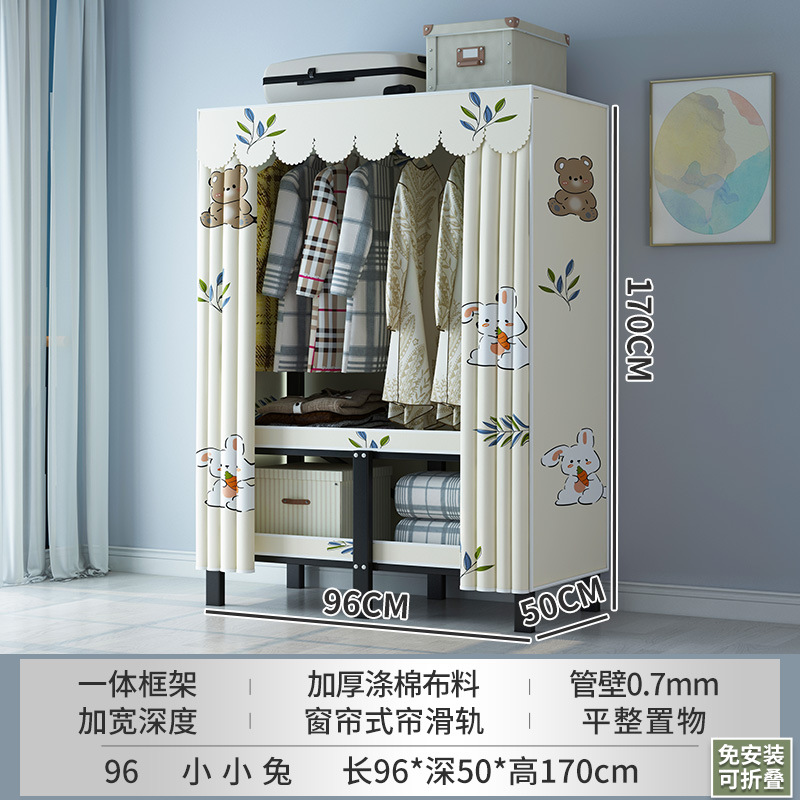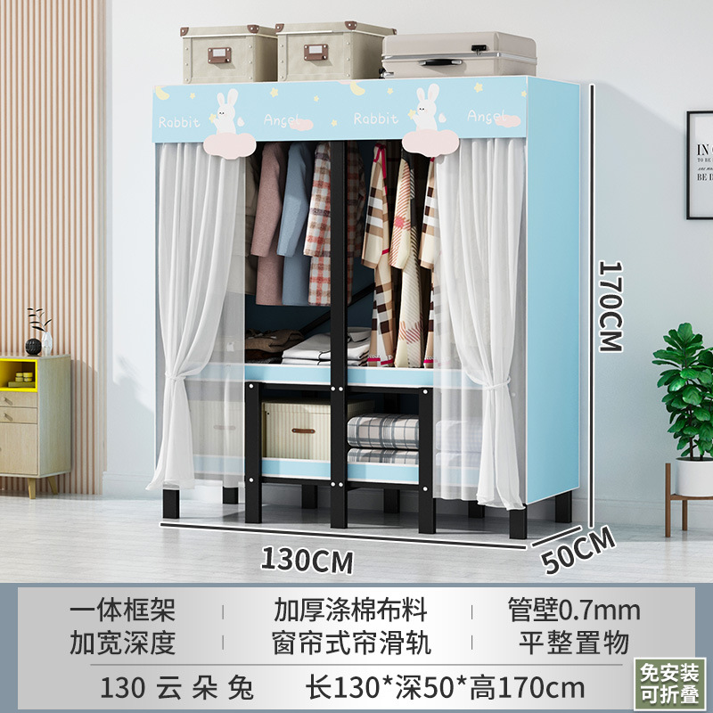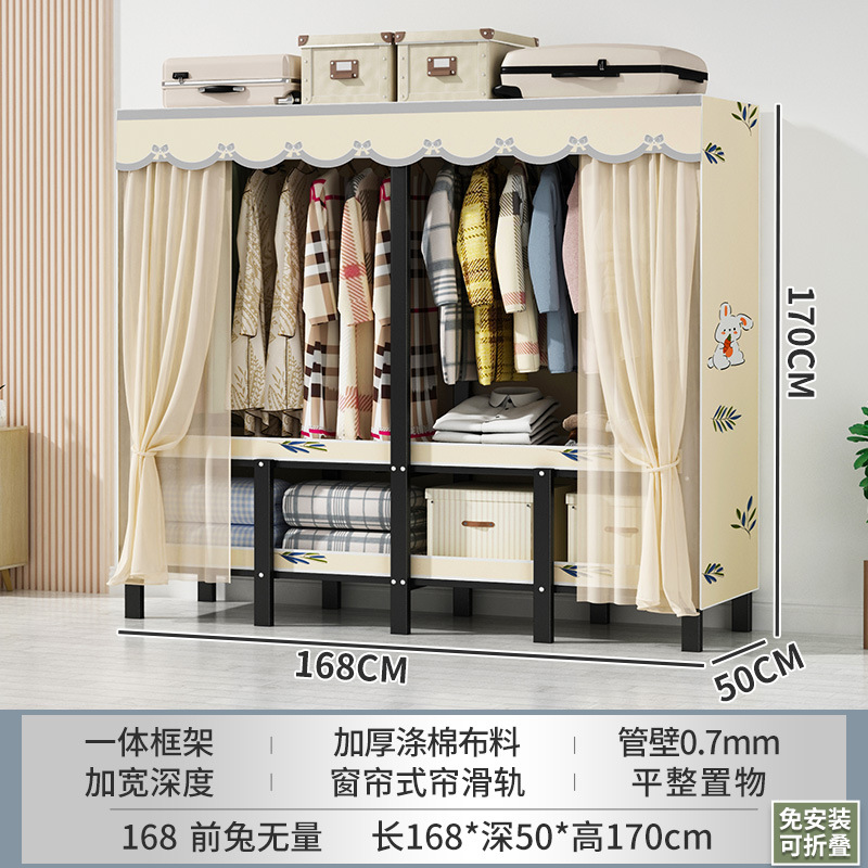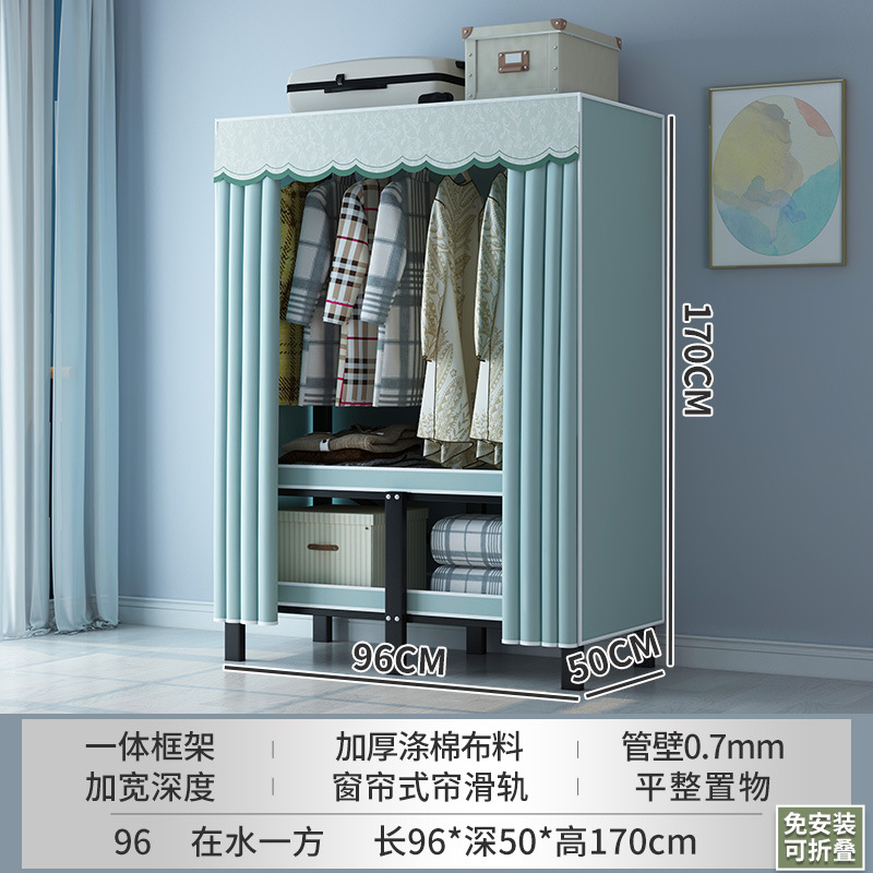 설치 무료 간단한 천 옷장 침실 접이식 가정용 수납 캐비닛 렌탈룸 기숙사 경제적 인 철골 걸이 옷장