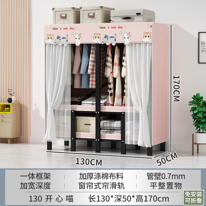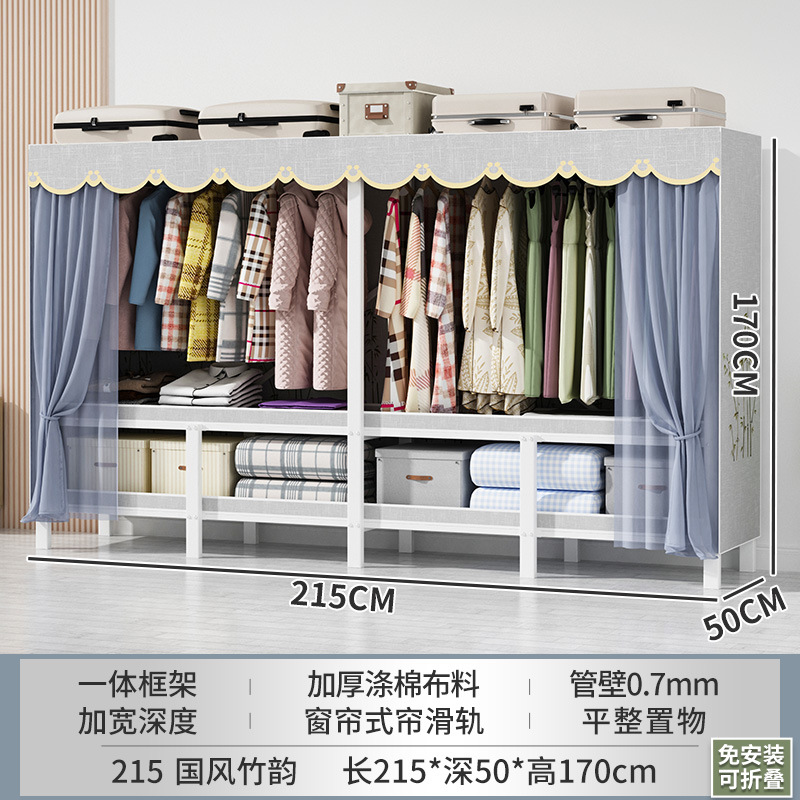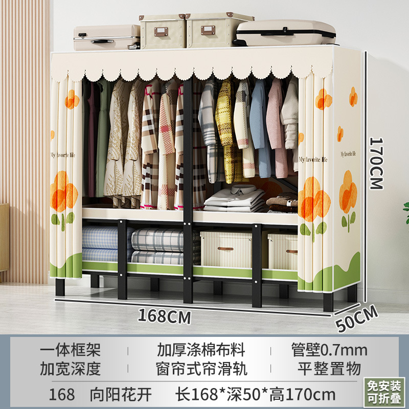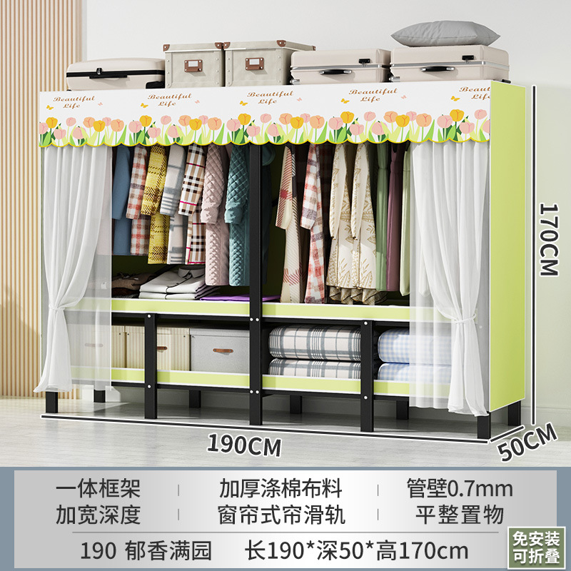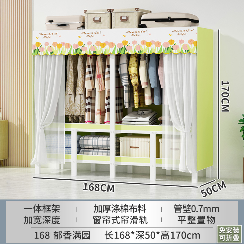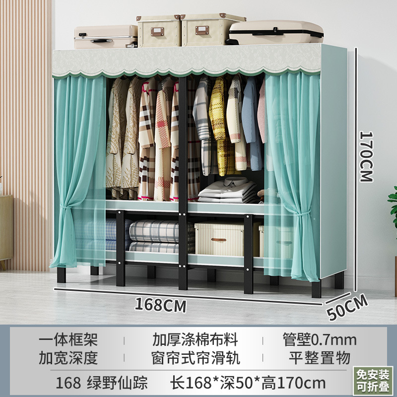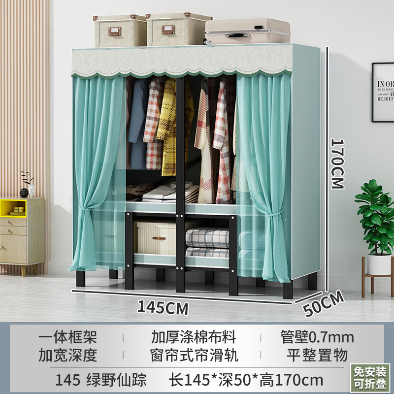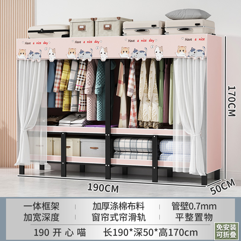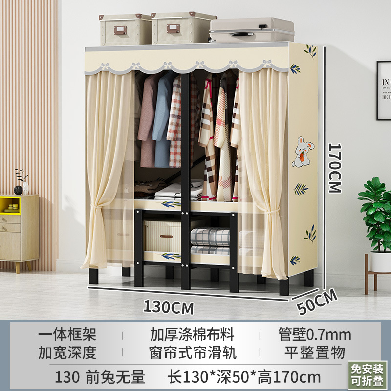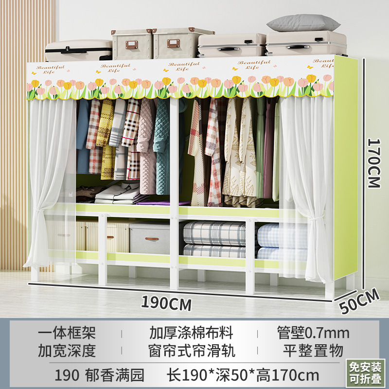 설치 무료 간단한 천 옷장 침실 접이식 가정용 수납 캐비닛 렌탈룸 기숙사 경제적 인 철골 걸이 옷장