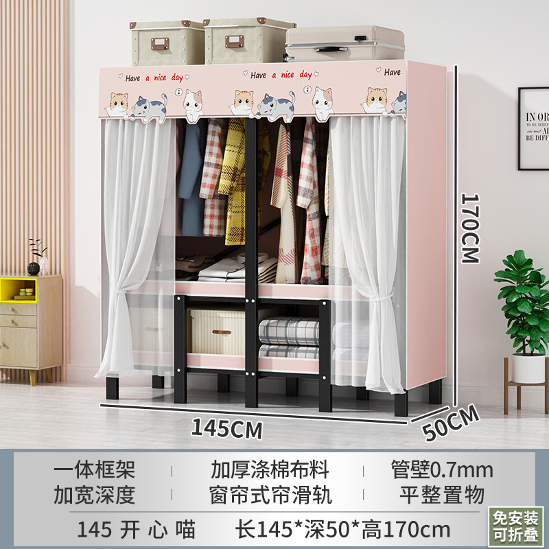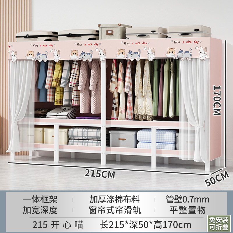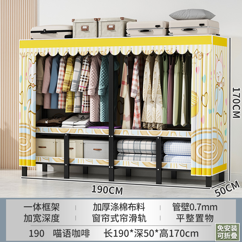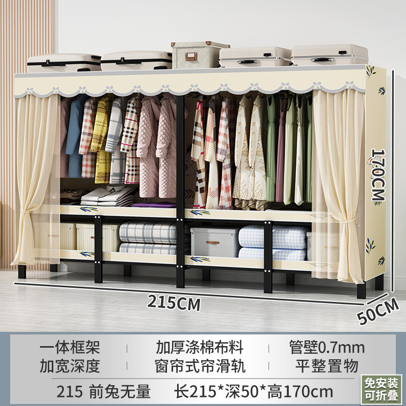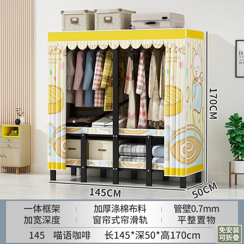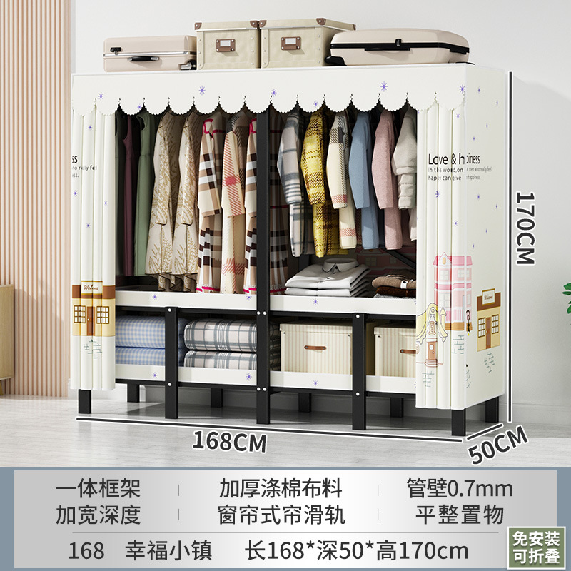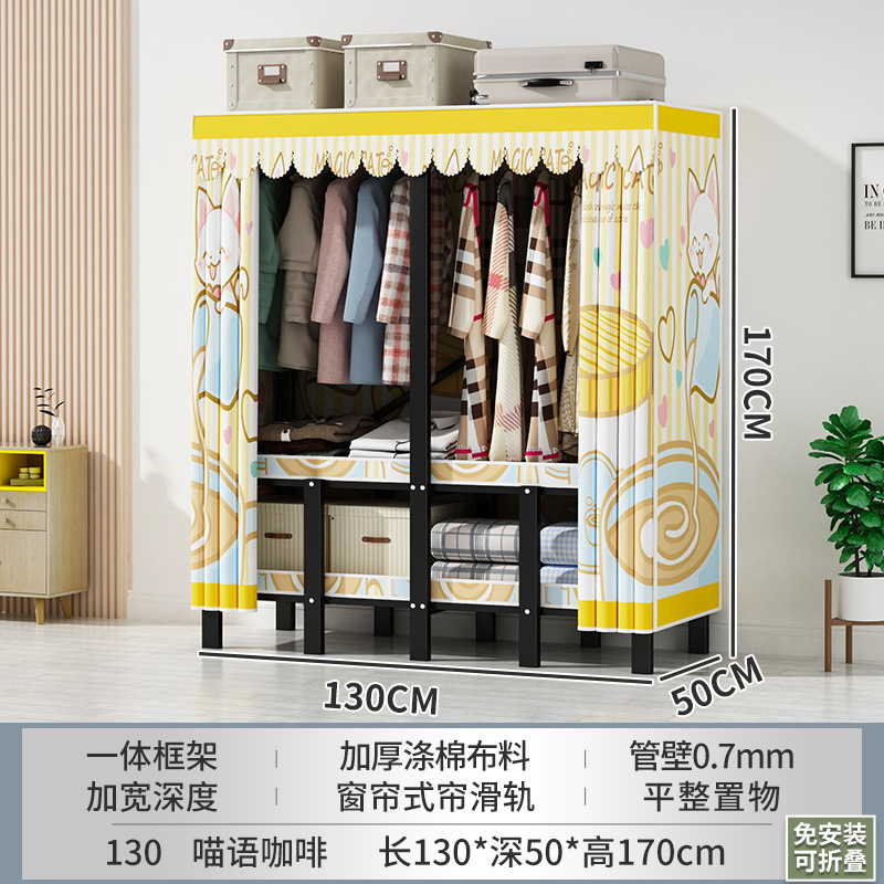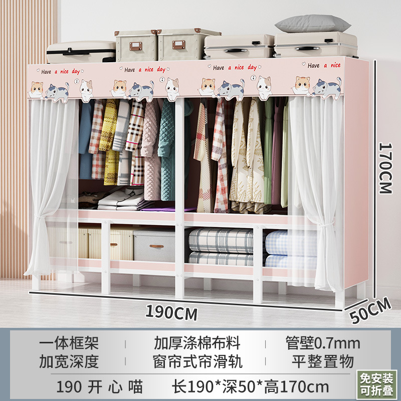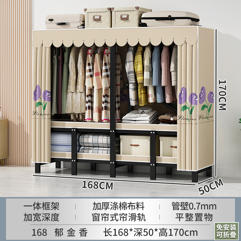 설치 무료 간단한 천 옷장 침실 접이식 가정용 수납 캐비닛 렌탈룸 기숙사 경제적 인 철골 걸이 옷장
