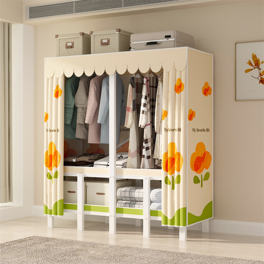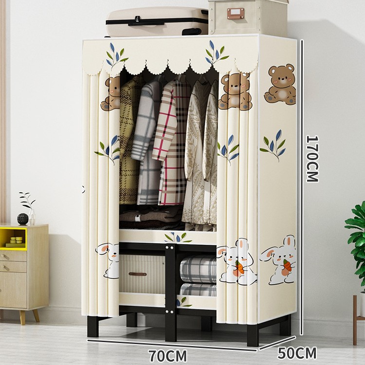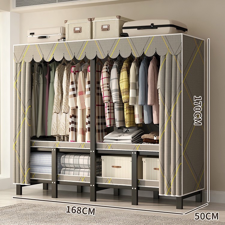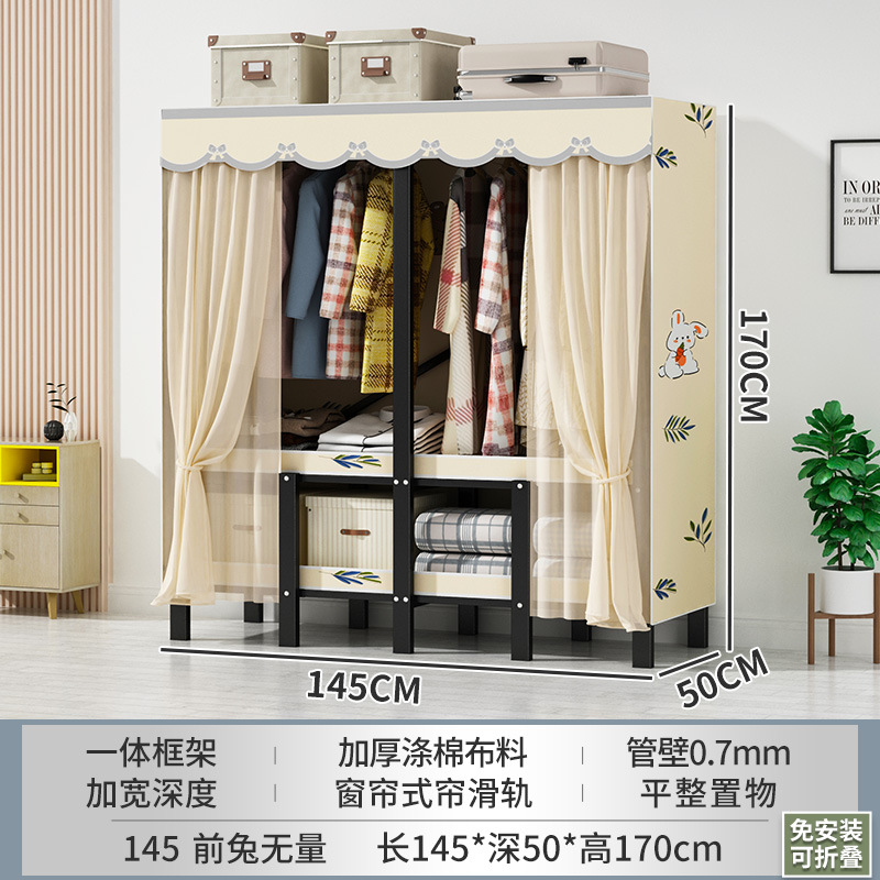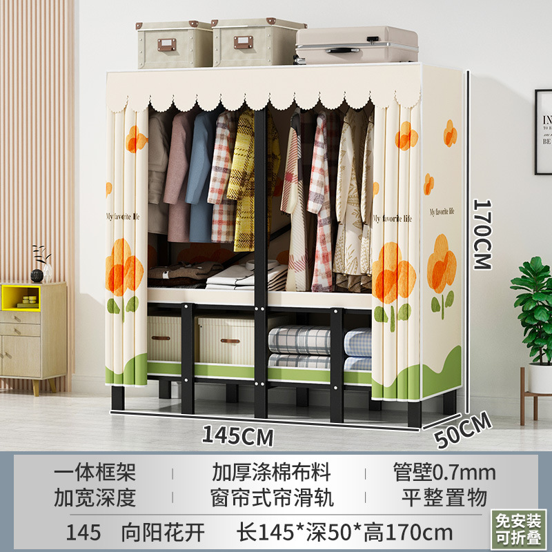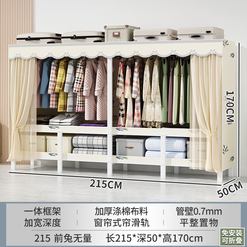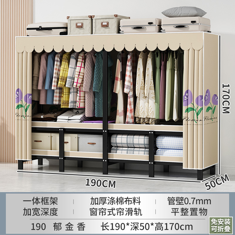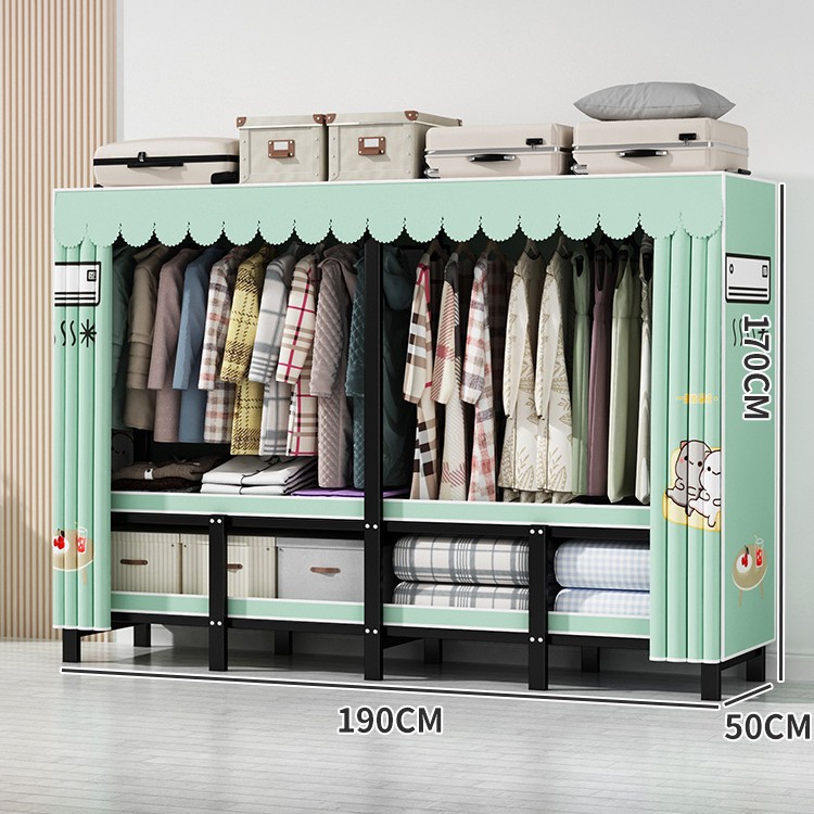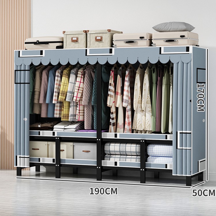 설치 무료 간단한 천 옷장 침실 접이식 가정용 수납 캐비닛 렌탈룸 기숙사 경제적 인 철골 걸이 옷장
