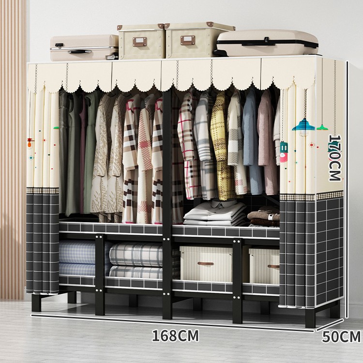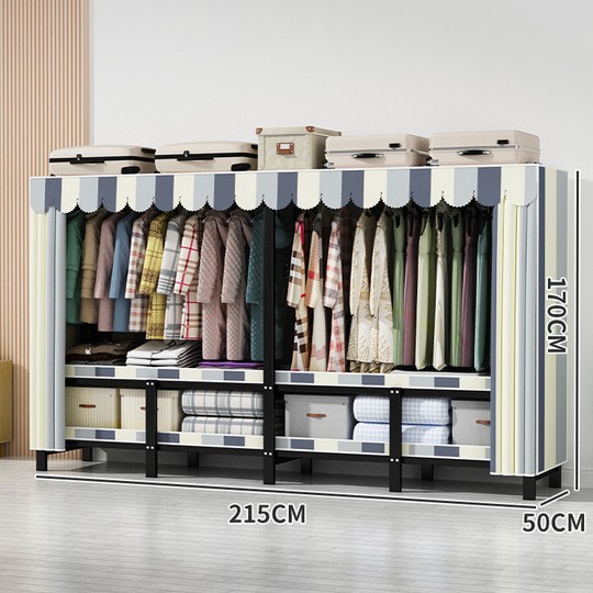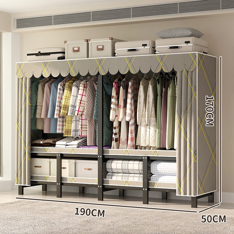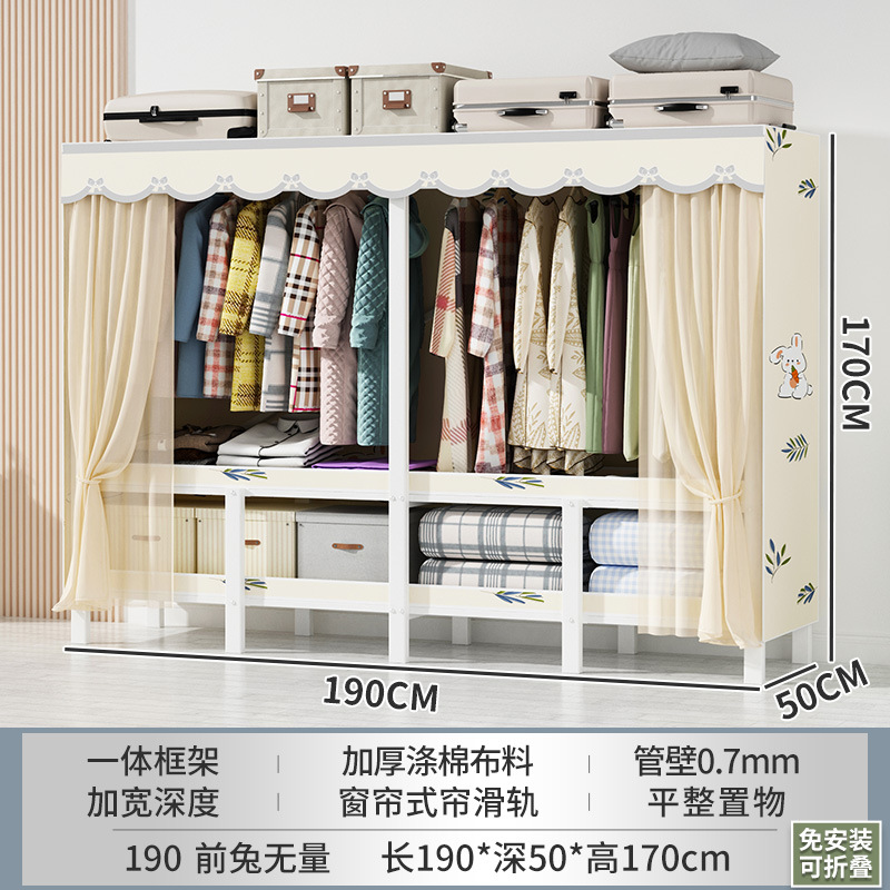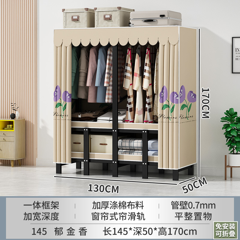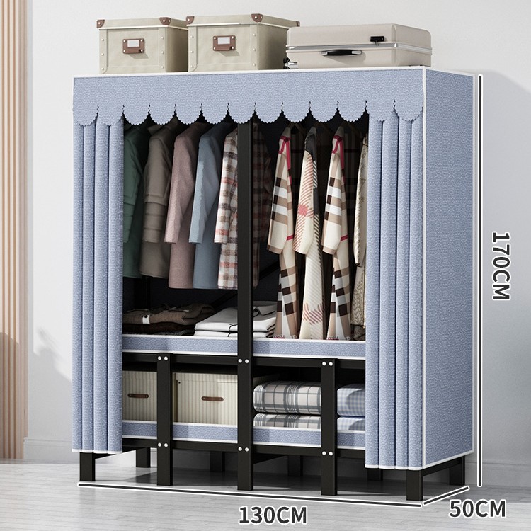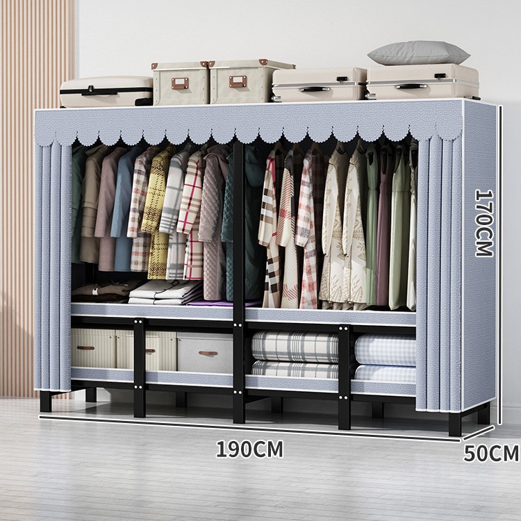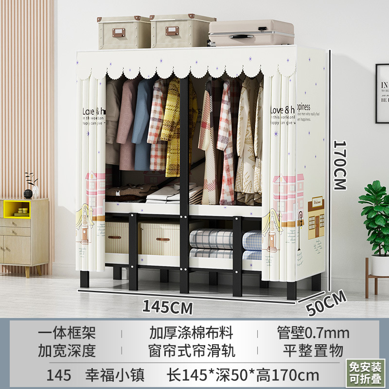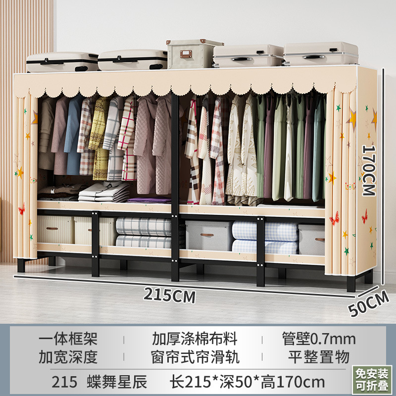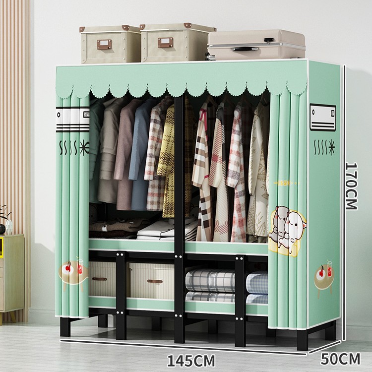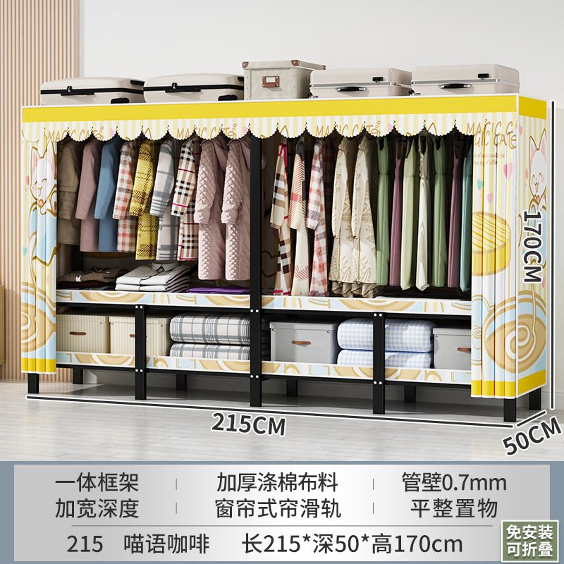 설치 무료 간단한 천 옷장 침실 접이식 가정용 수납 캐비닛 렌탈룸 기숙사 경제적 인 철골 걸이 옷장
