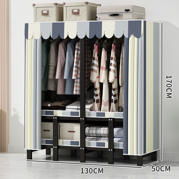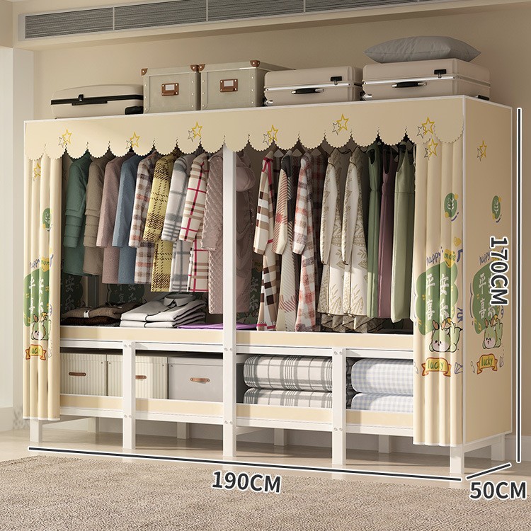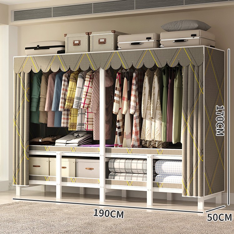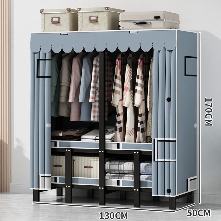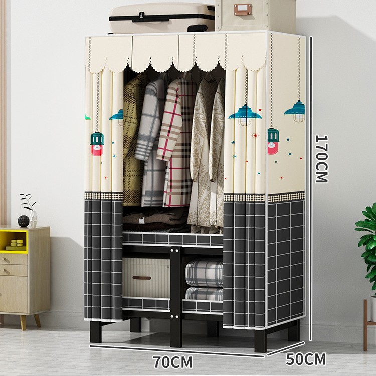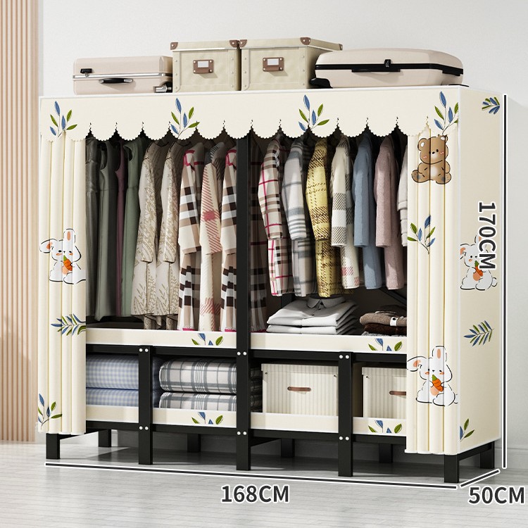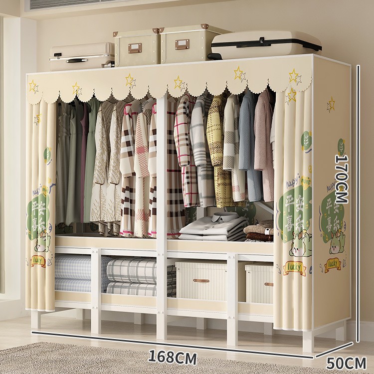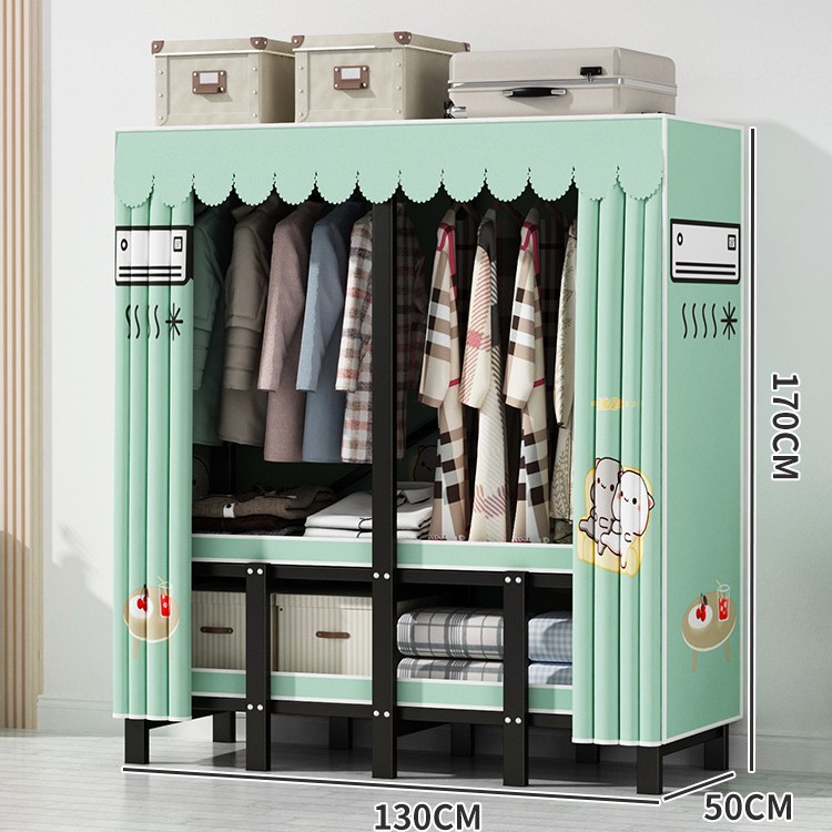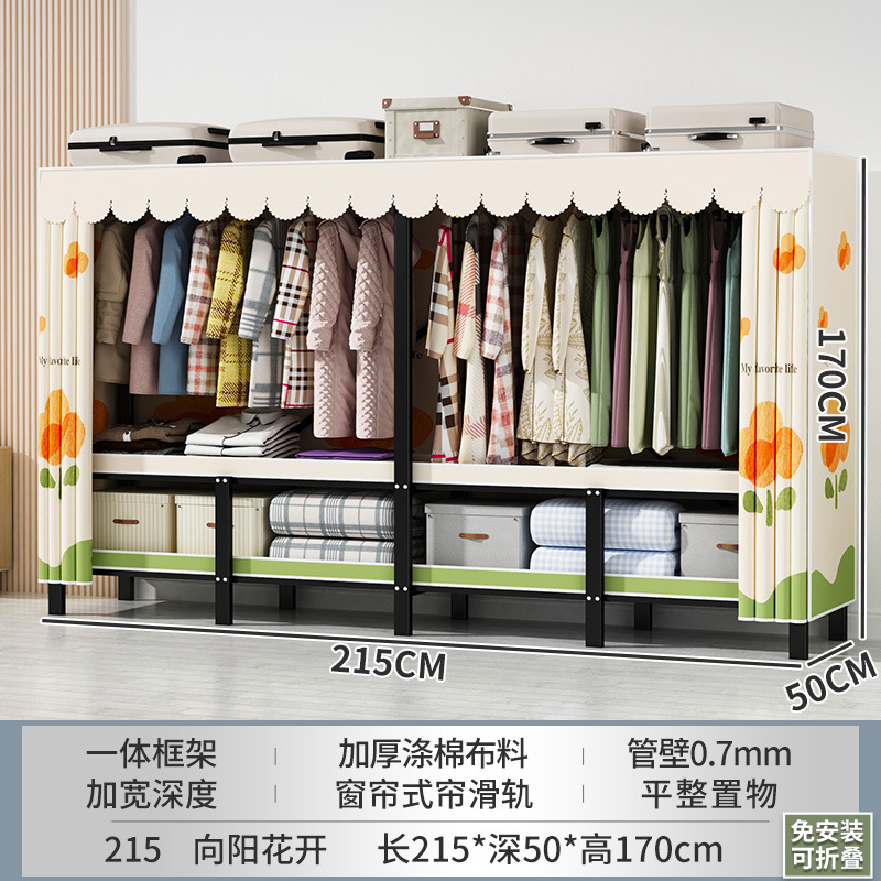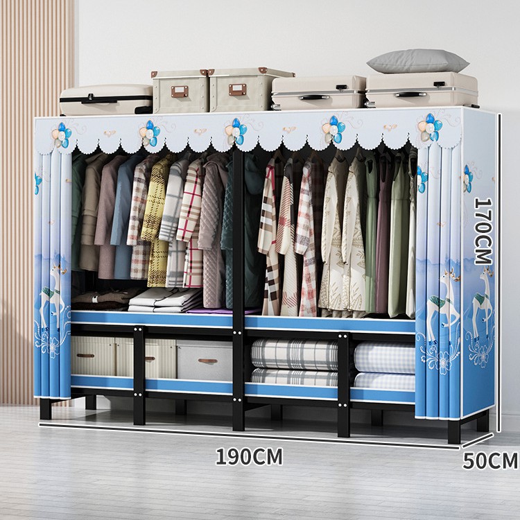 설치 무료 간단한 천 옷장 침실 접이식 가정용 수납 캐비닛 렌탈룸 기숙사 경제적 인 철골 걸이 옷장