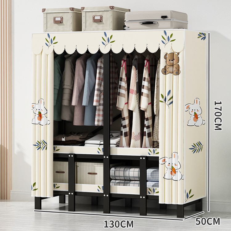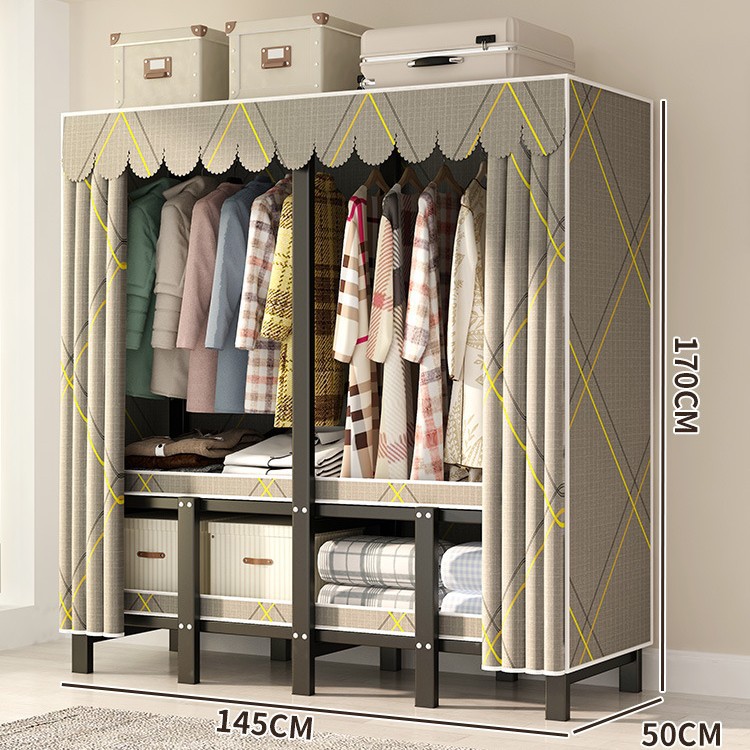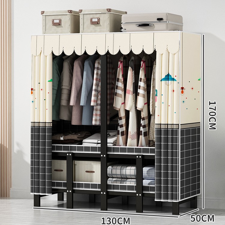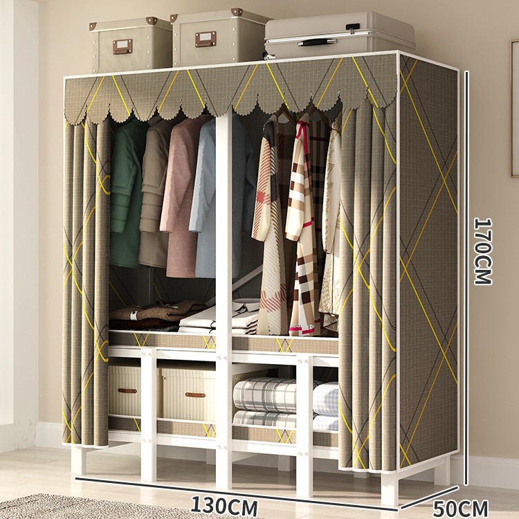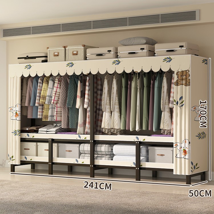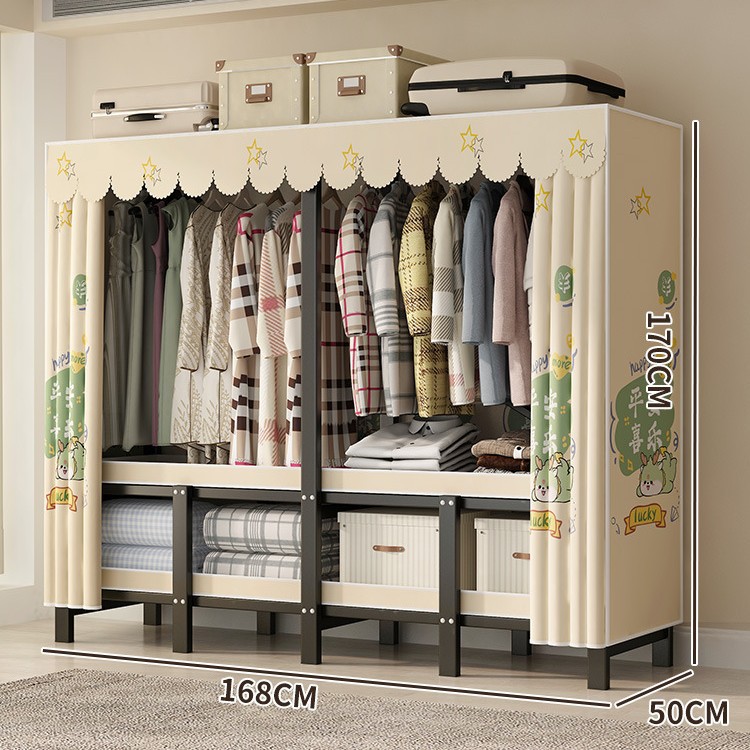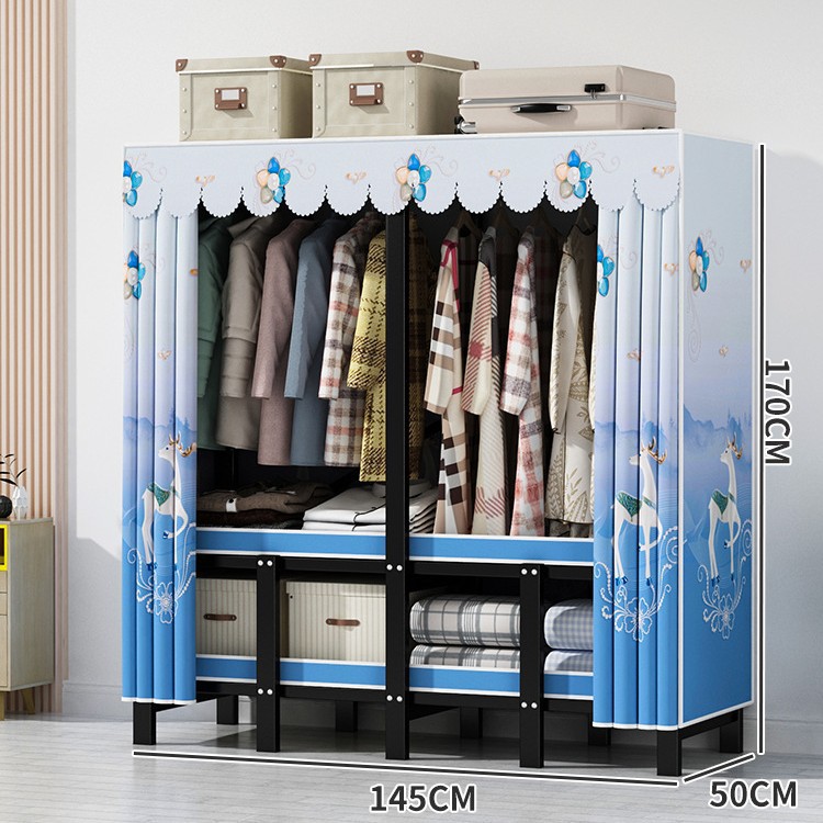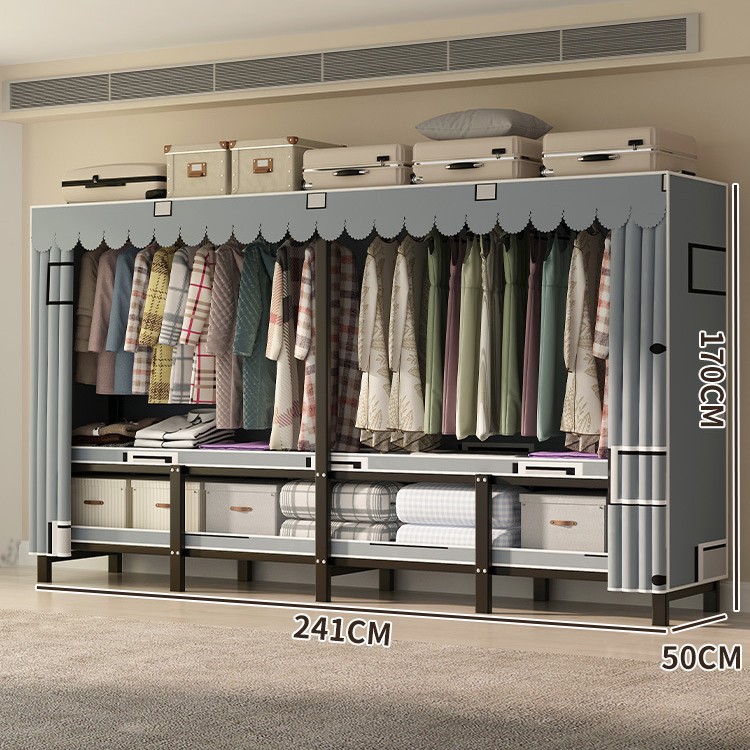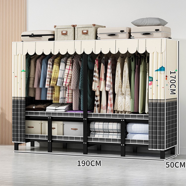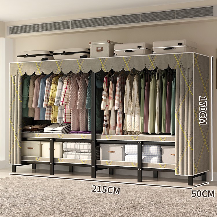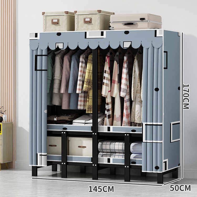 설치 무료 간단한 천 옷장 침실 접이식 가정용 수납 캐비닛 렌탈룸 기숙사 경제적 인 철골 걸이 옷장