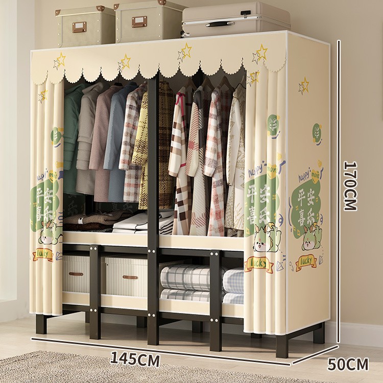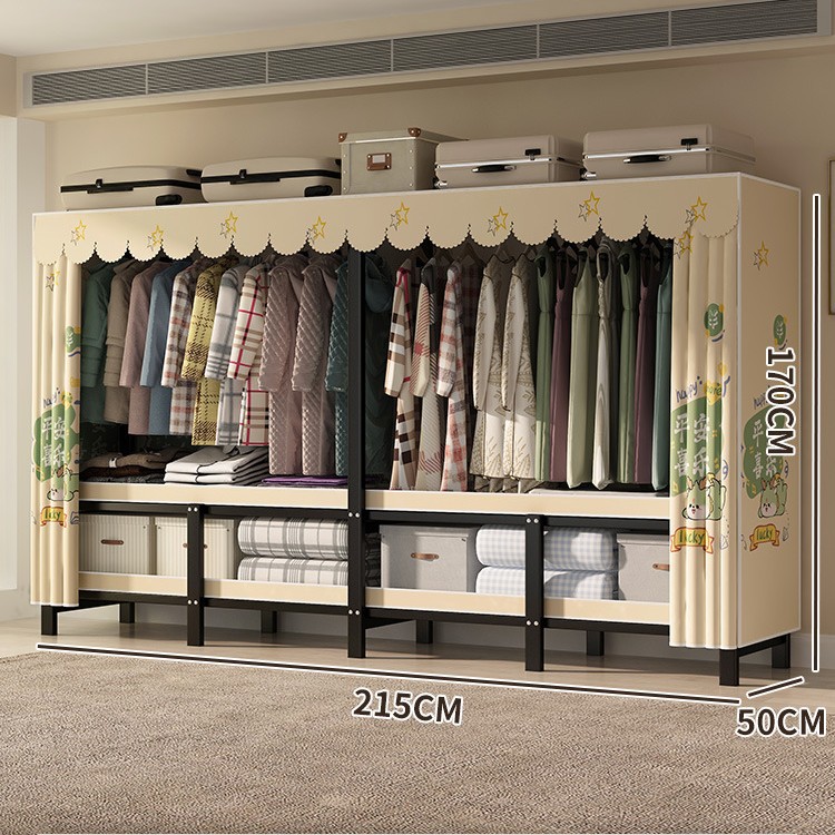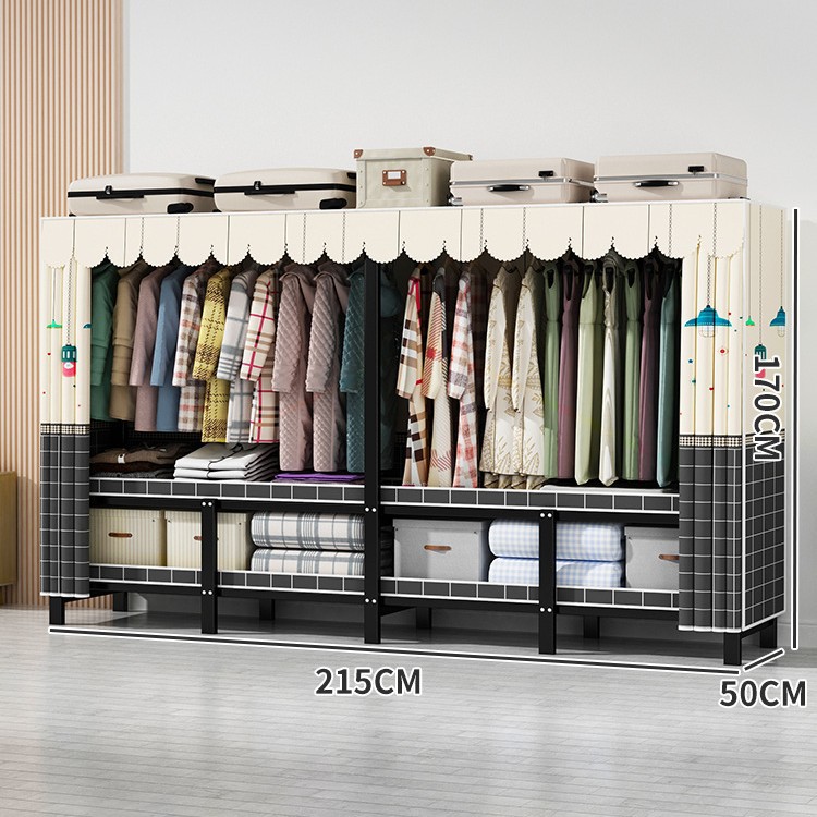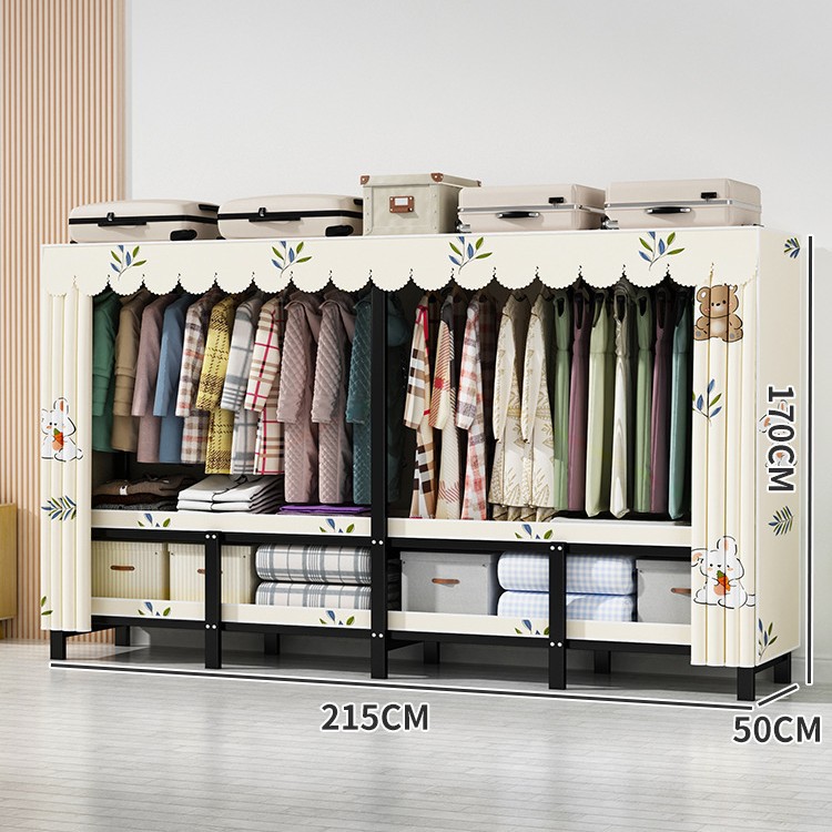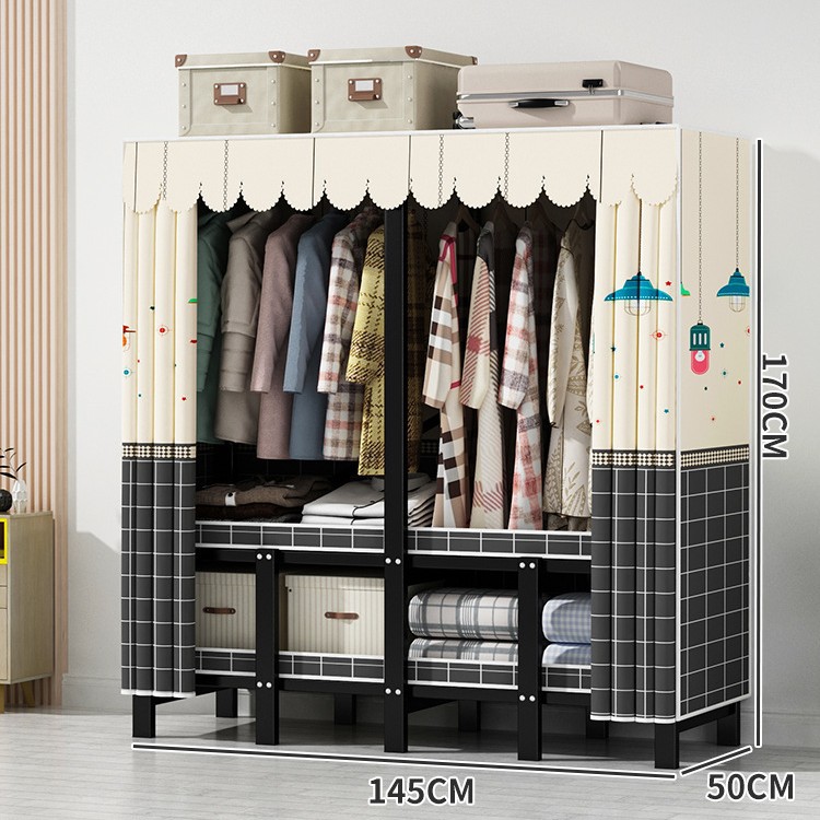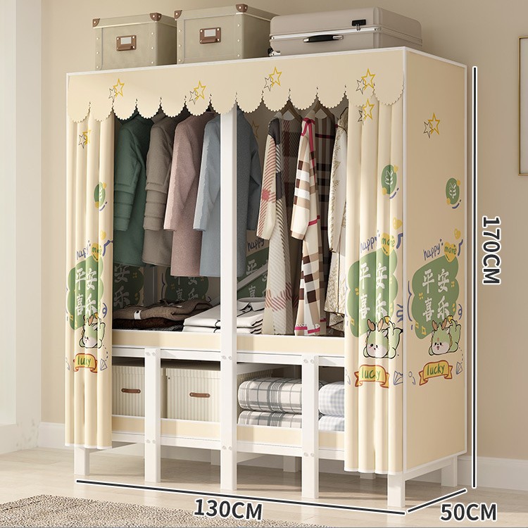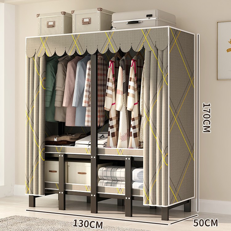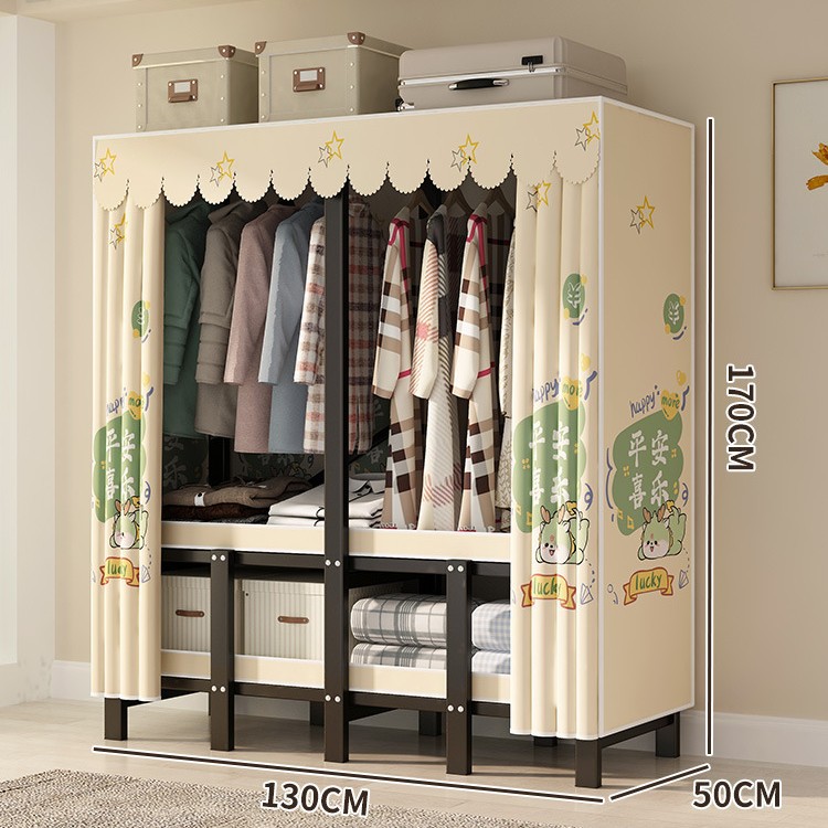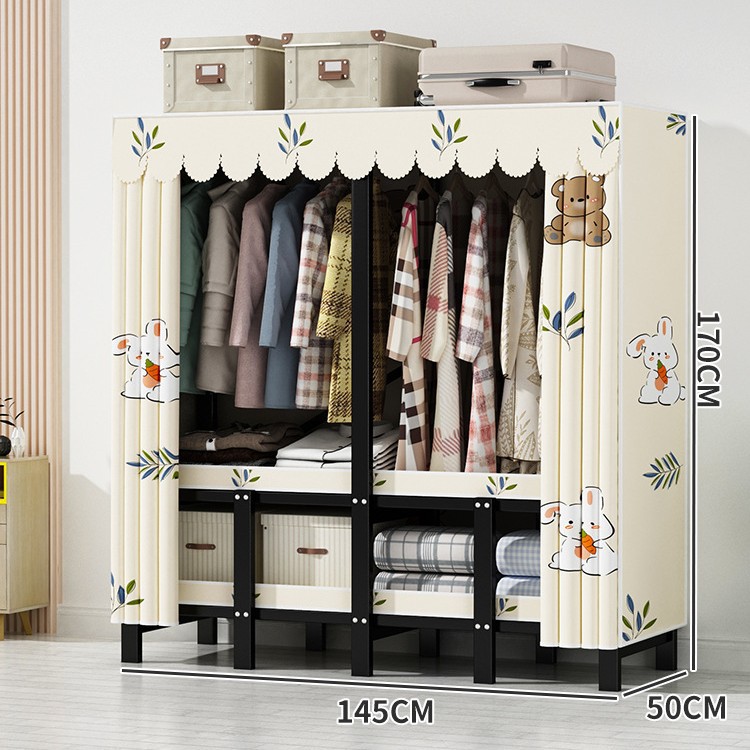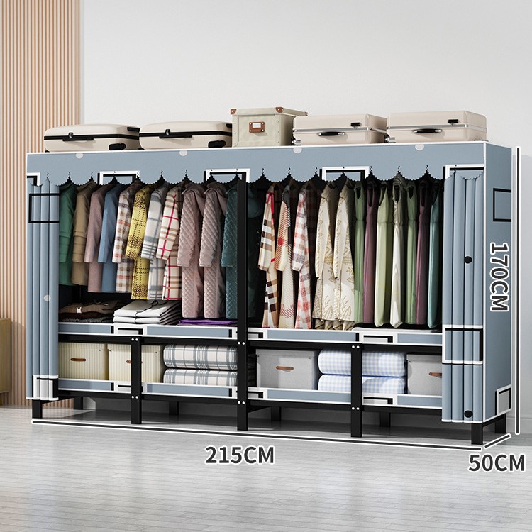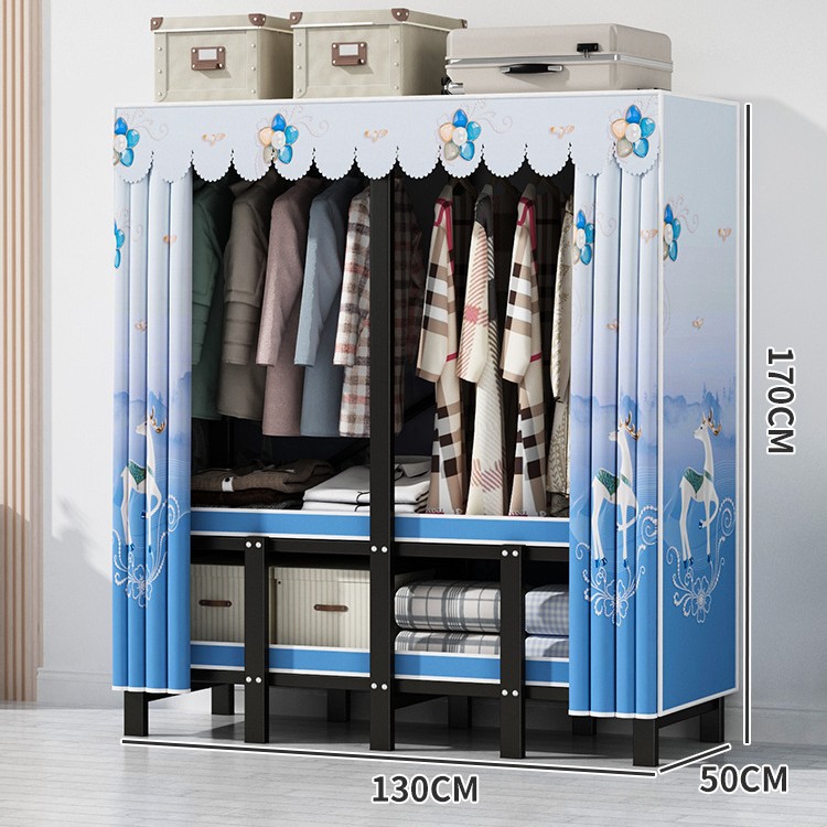 설치 무료 간단한 천 옷장 침실 접이식 가정용 수납 캐비닛 렌탈룸 기숙사 경제적 인 철골 걸이 옷장