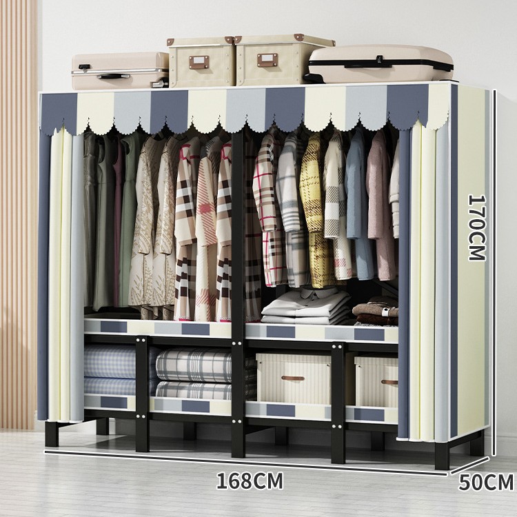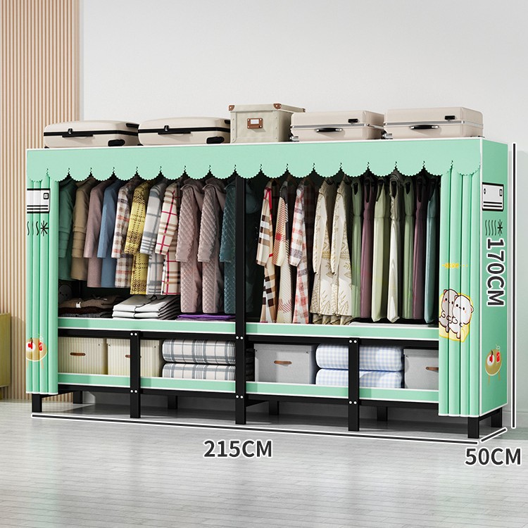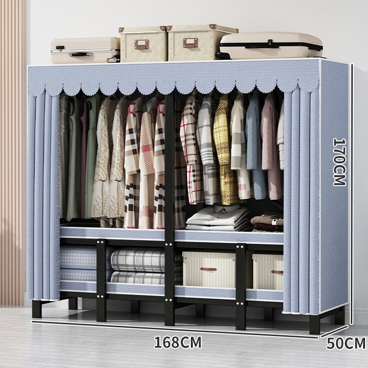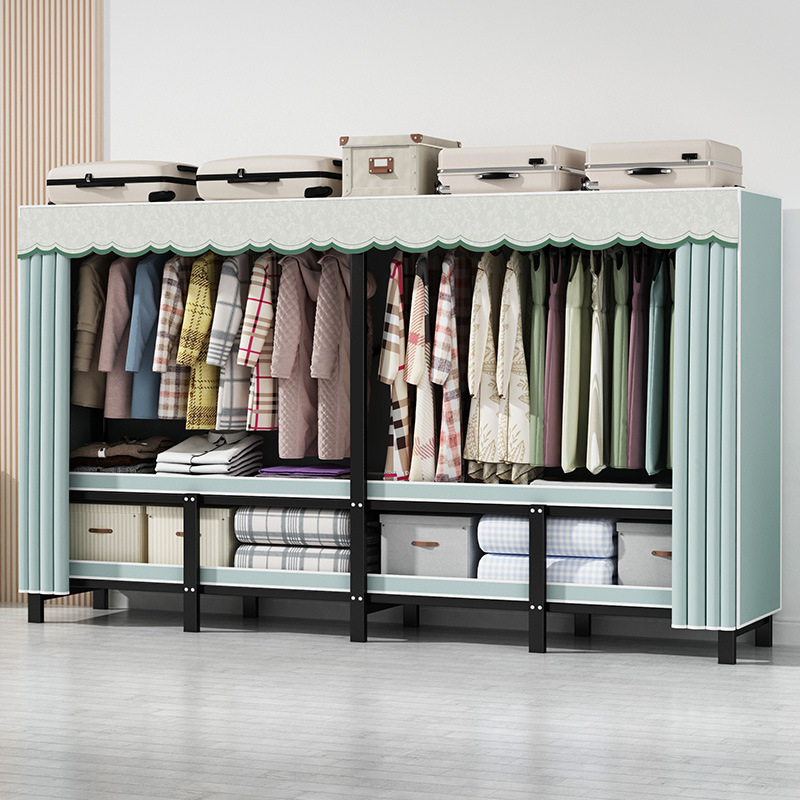 설치 무료 간단한 천 옷장 침실 접이식 가정용 수납 캐비닛 렌탈룸 기숙사 경제적 인 철골 걸이 옷장스토어 가기