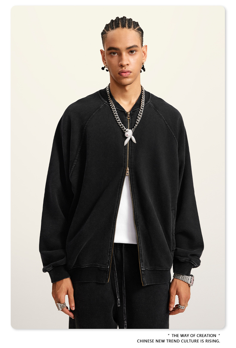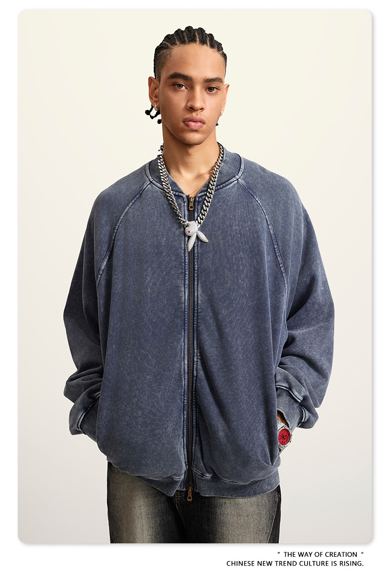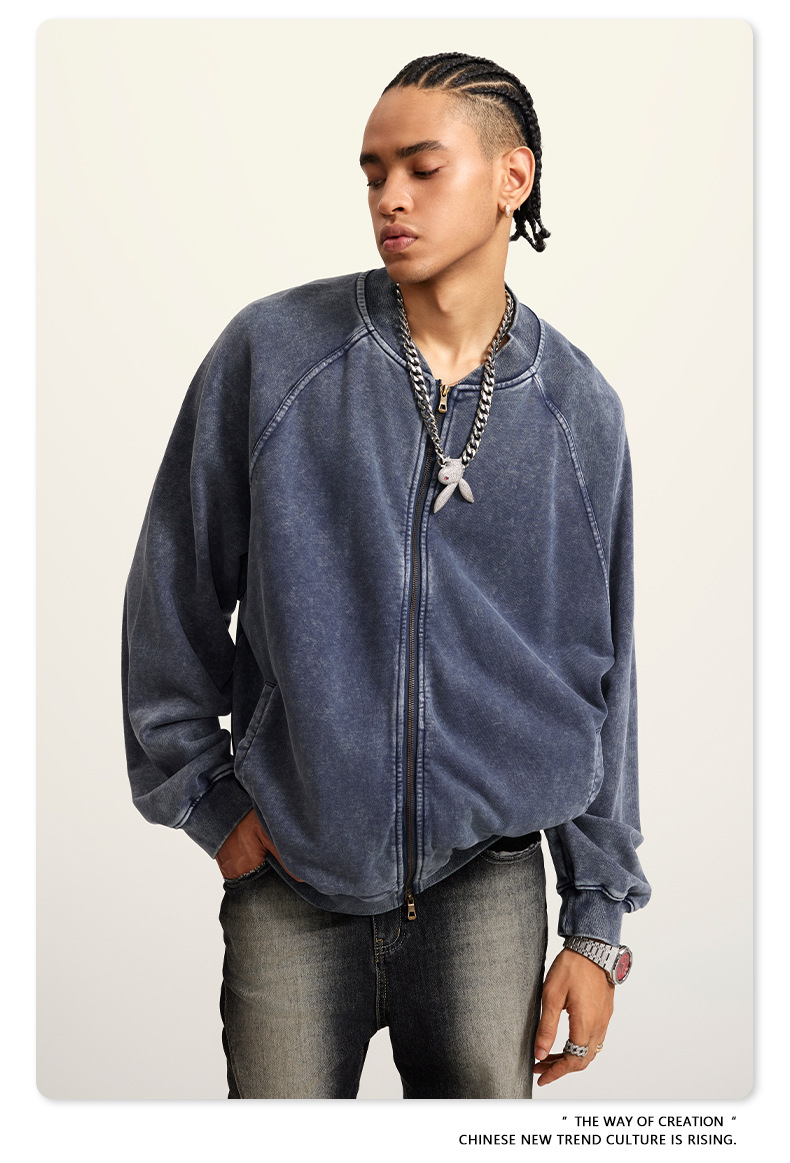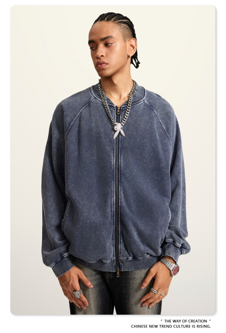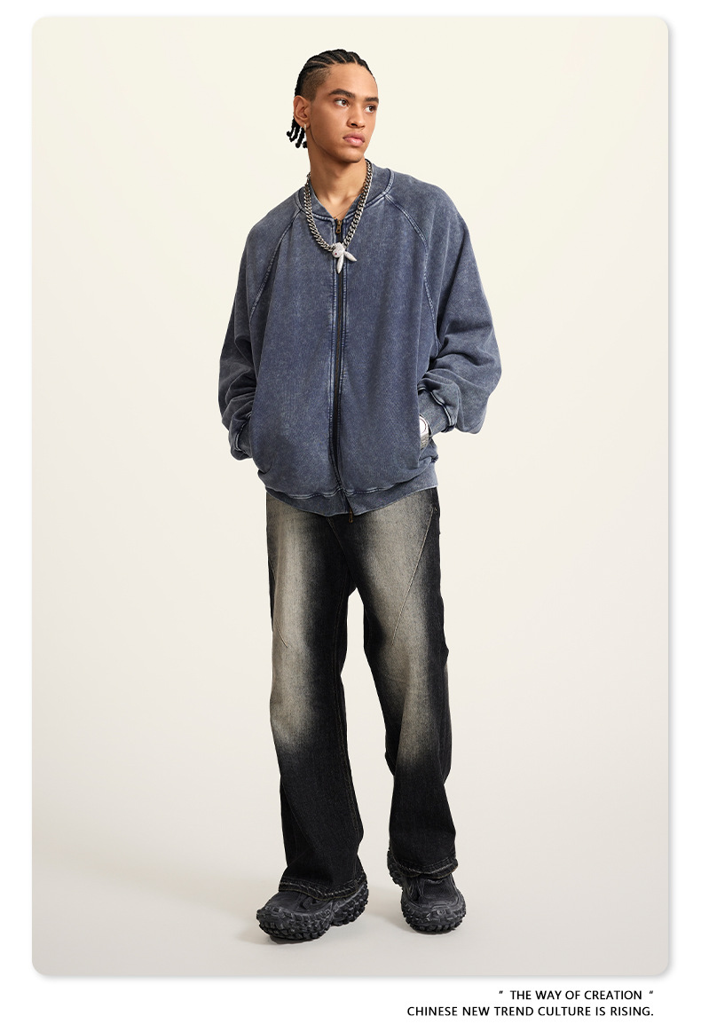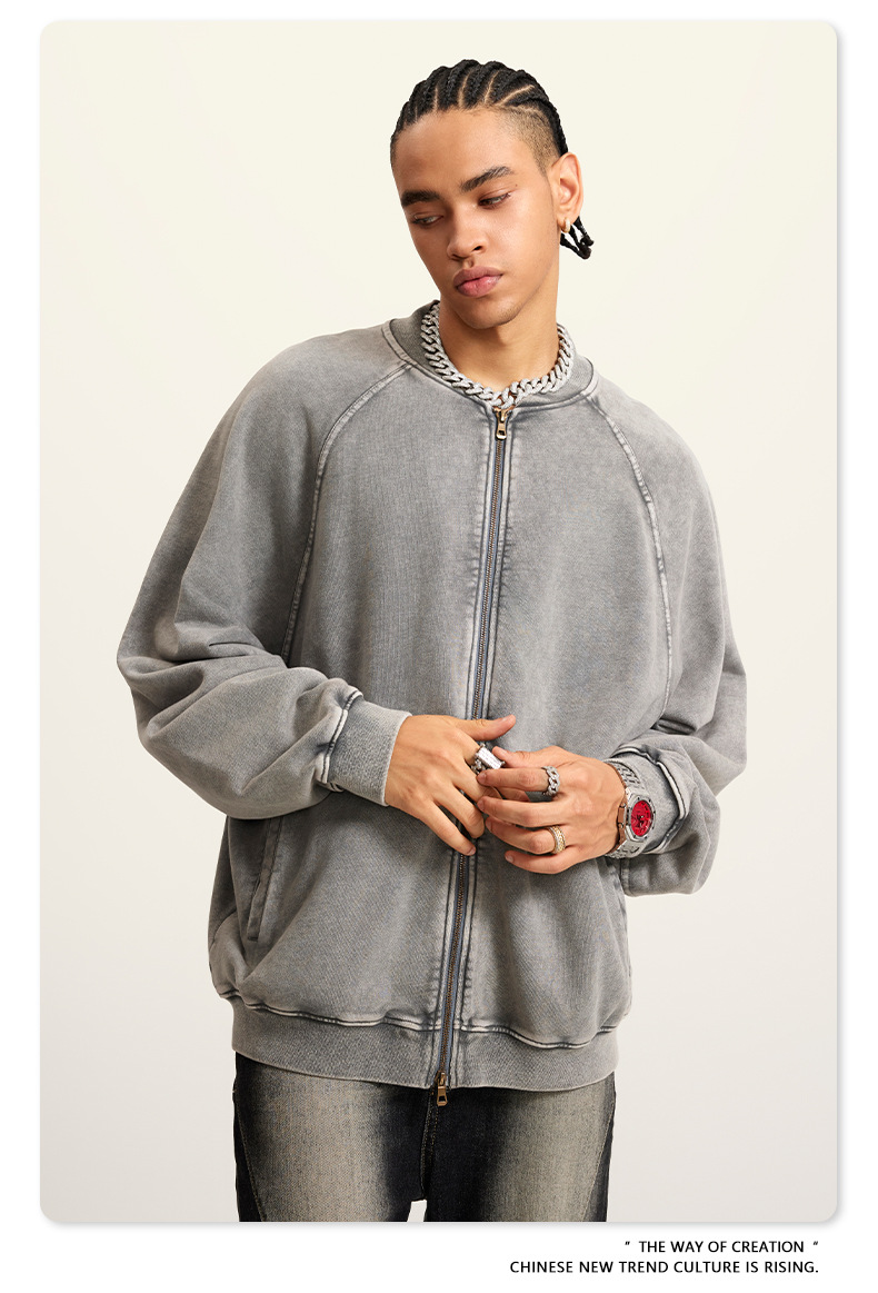 남성복 | 2025 가을 미국 스타일 트렌디 브랜드 헤비 레트로 워싱 가디건 재킷 루즈핏 캐주얼 재킷 남성용스토어 가기