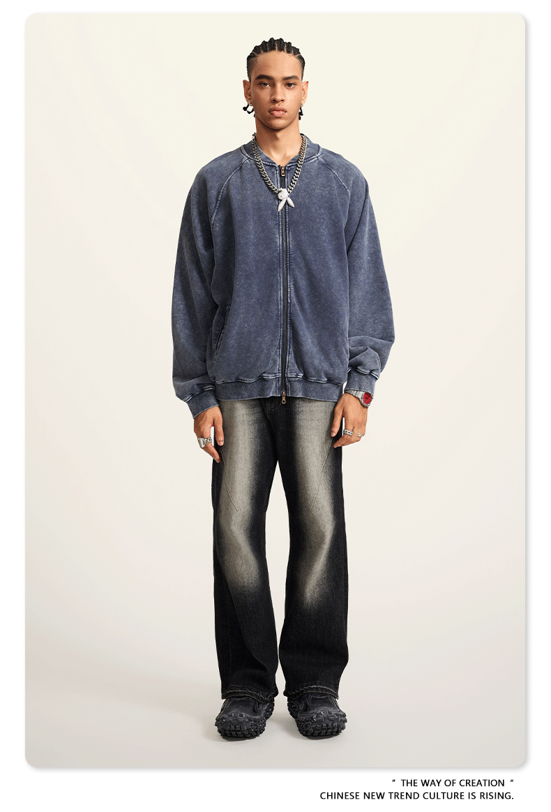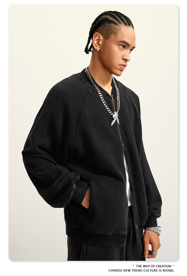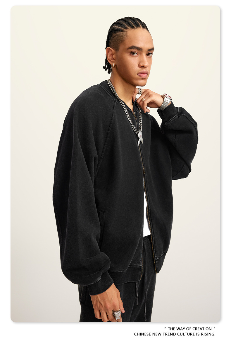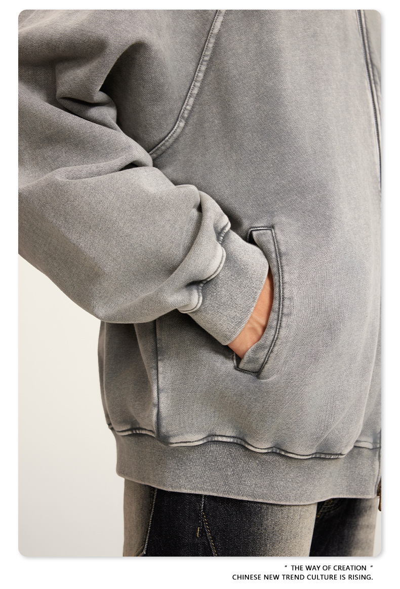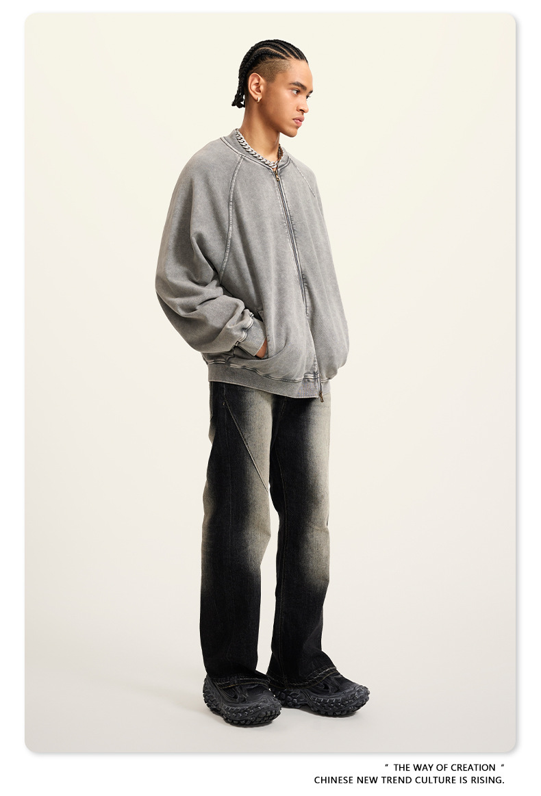 남성복 | 2025 가을 미국 스타일 트렌디 브랜드 헤비 레트로 워싱 가디건 재킷 루즈핏 캐주얼 재킷 남성용스토어 가기