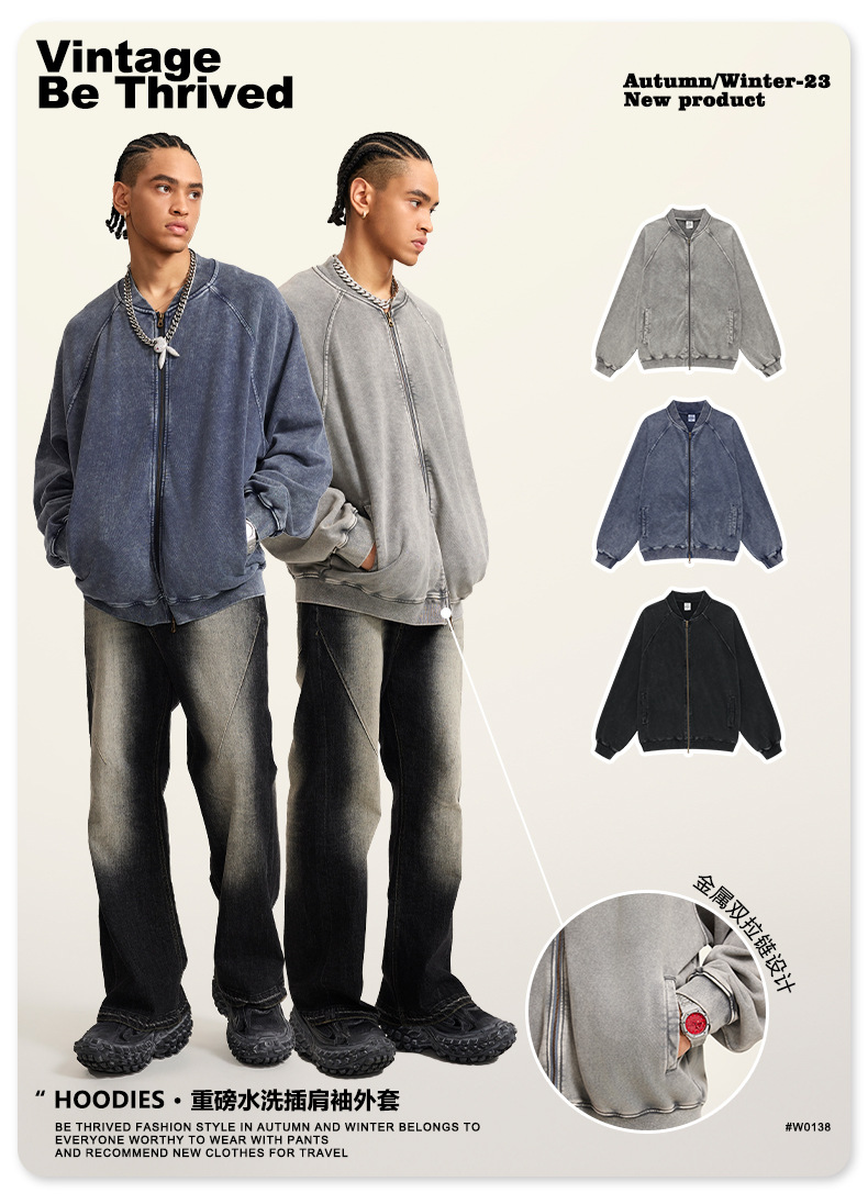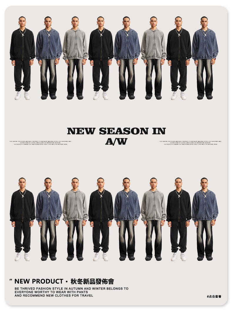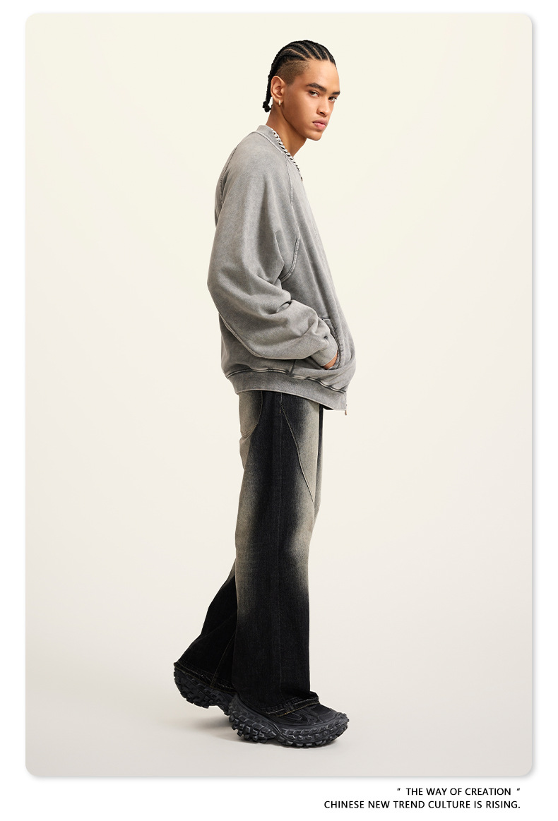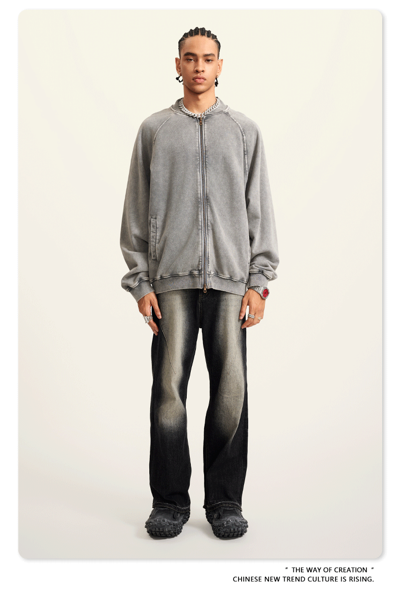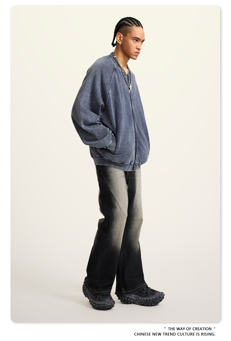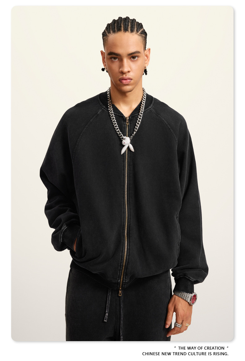 남성복 | 2025 가을 미국 스타일 트렌디 브랜드 헤비 레트로 워싱 가디건 재킷 루즈핏 캐주얼 재킷 남성용스토어 가기