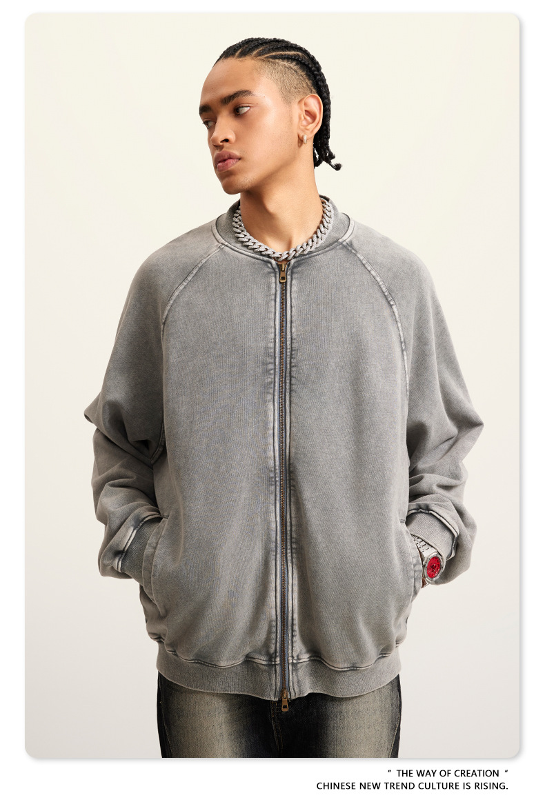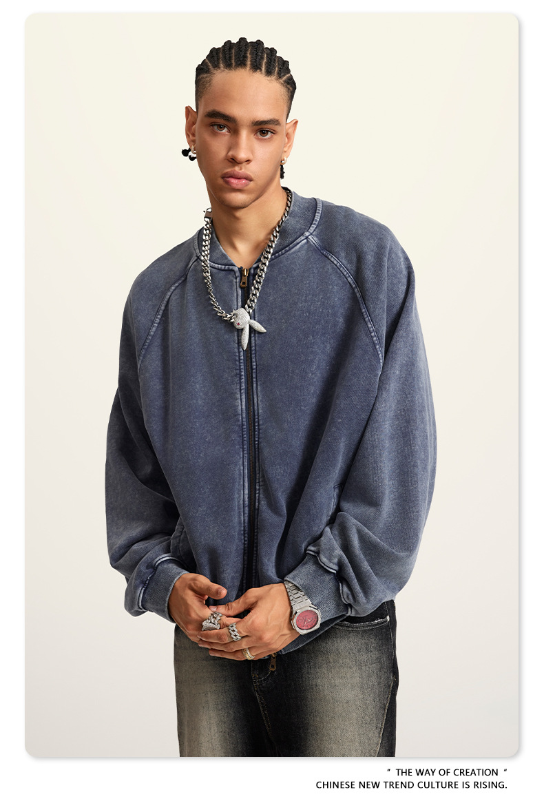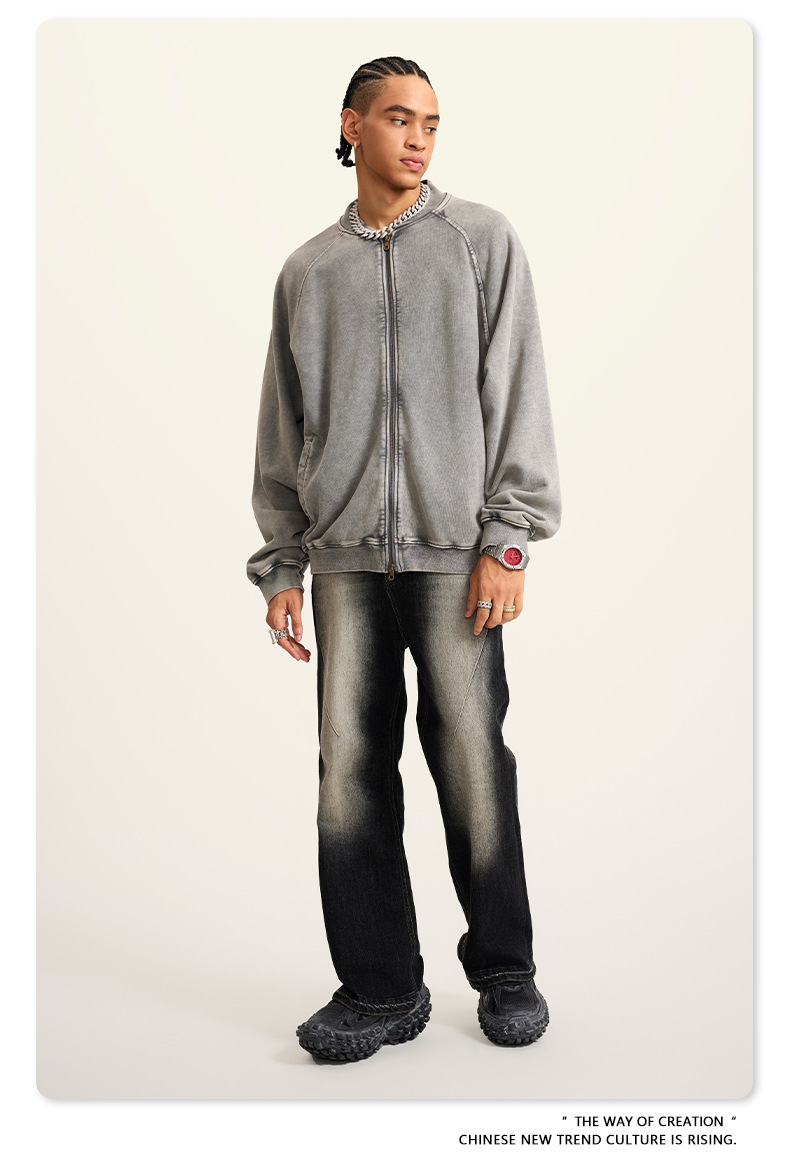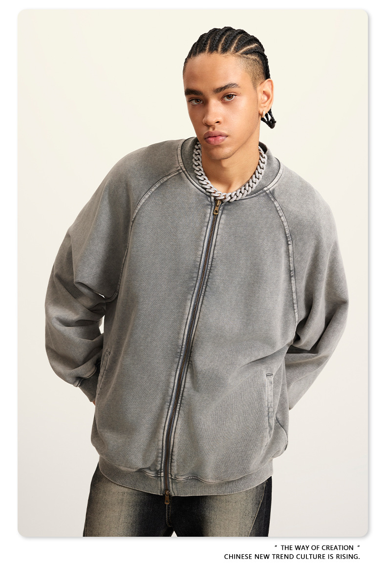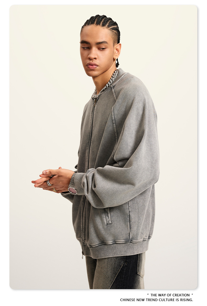 남성복 | 2025 가을 미국 스타일 트렌디 브랜드 헤비 레트로 워싱 가디건 재킷 루즈핏 캐주얼 재킷 남성용