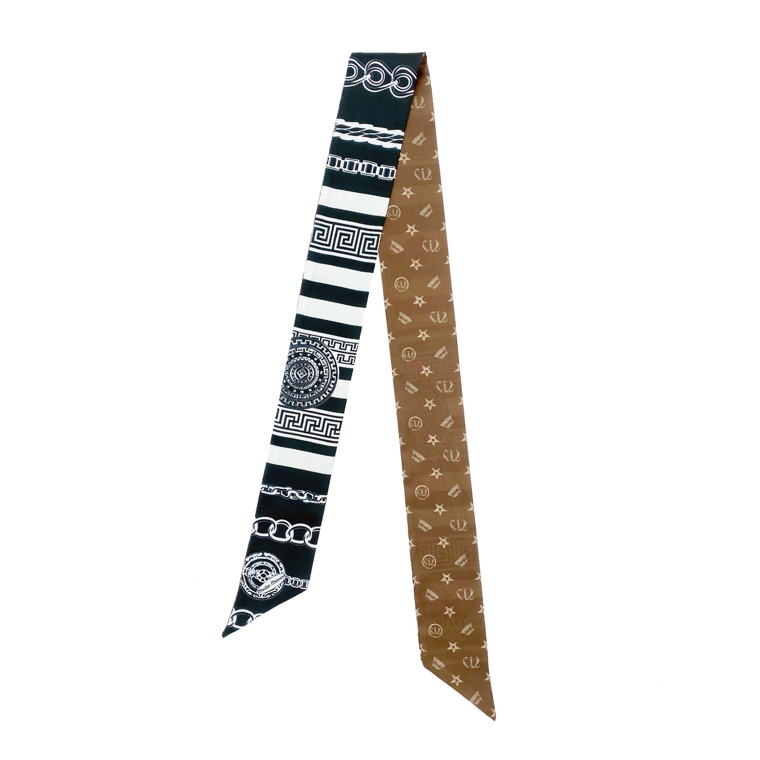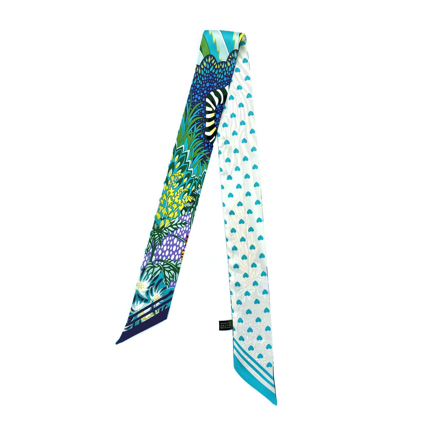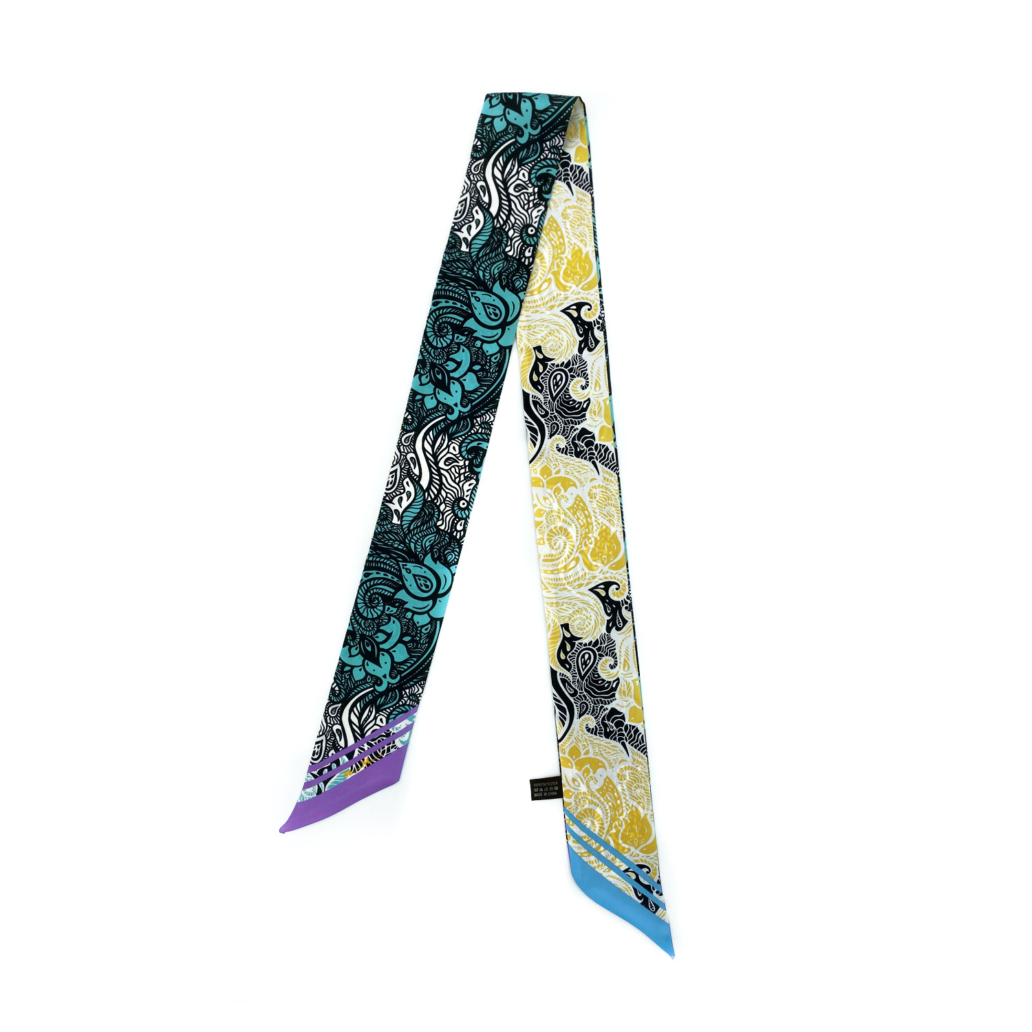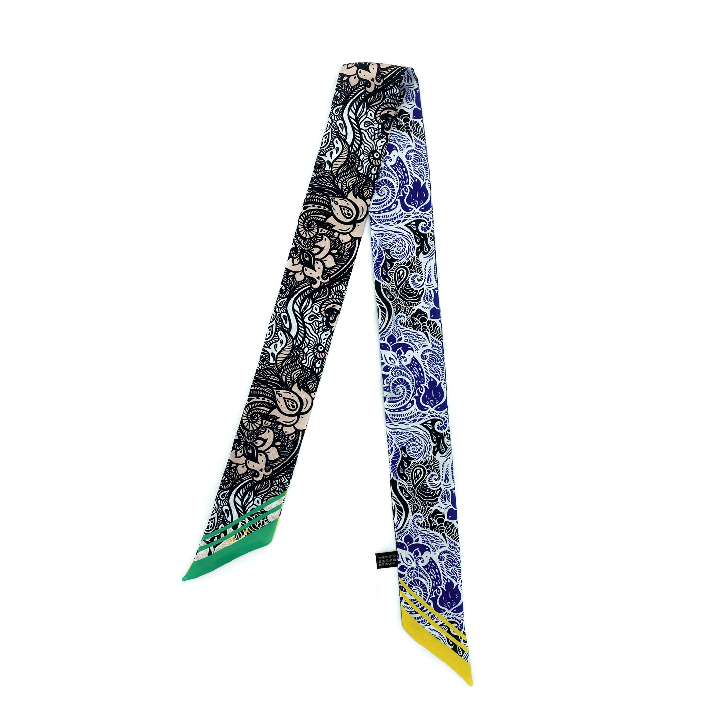 엄격한 선택 스카프 봄과 여름 새로운 원래 양면 인쇄 실크 스카프 다기능 긴 스카프 넥타이 가방 장식 헤어 밴드