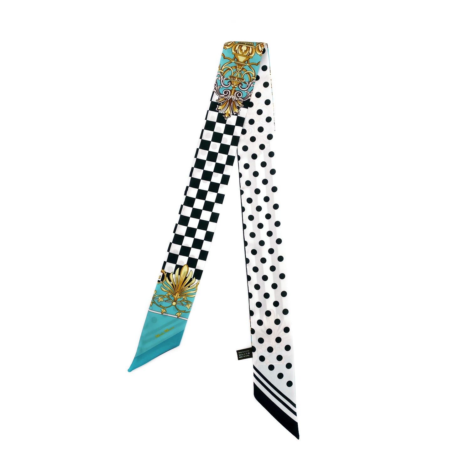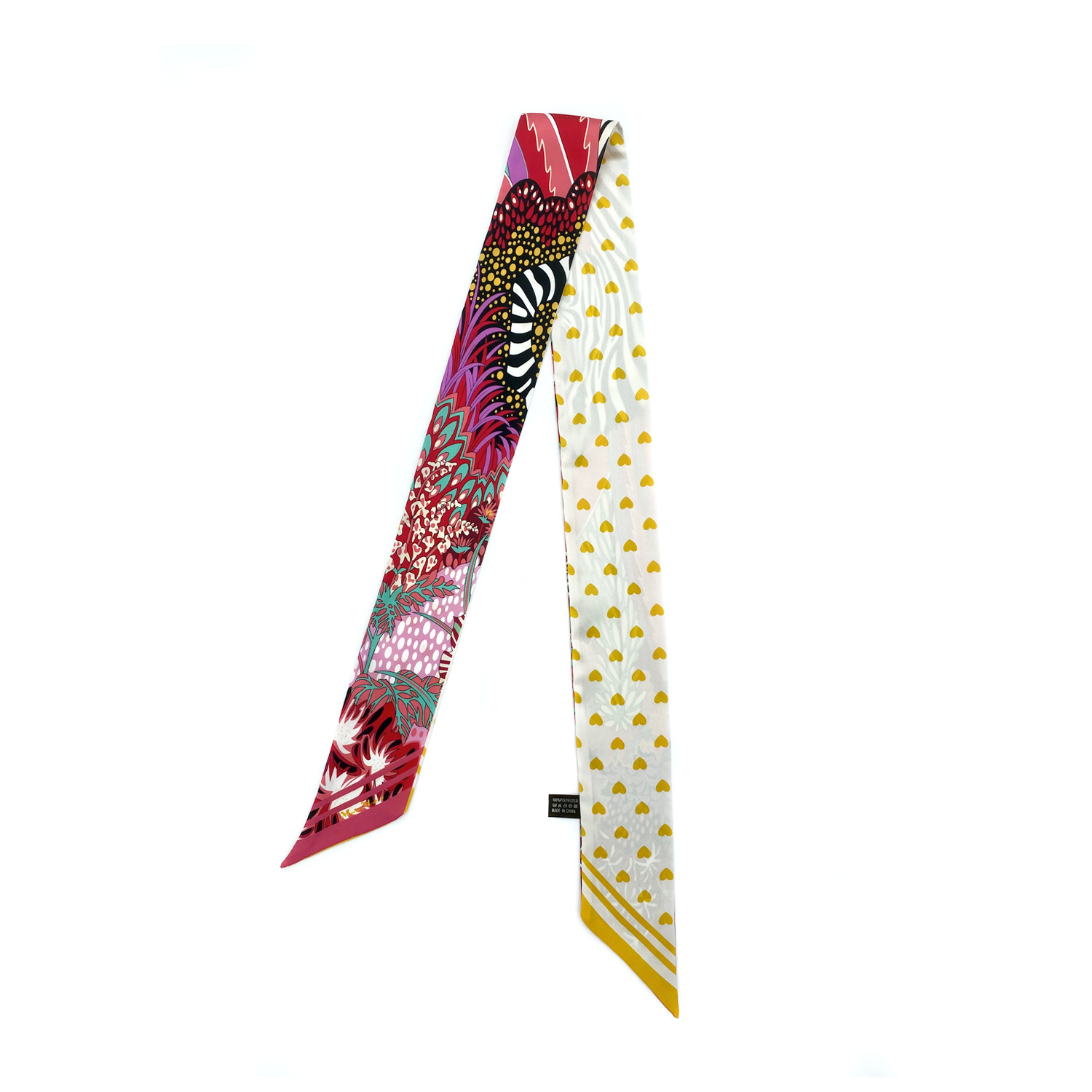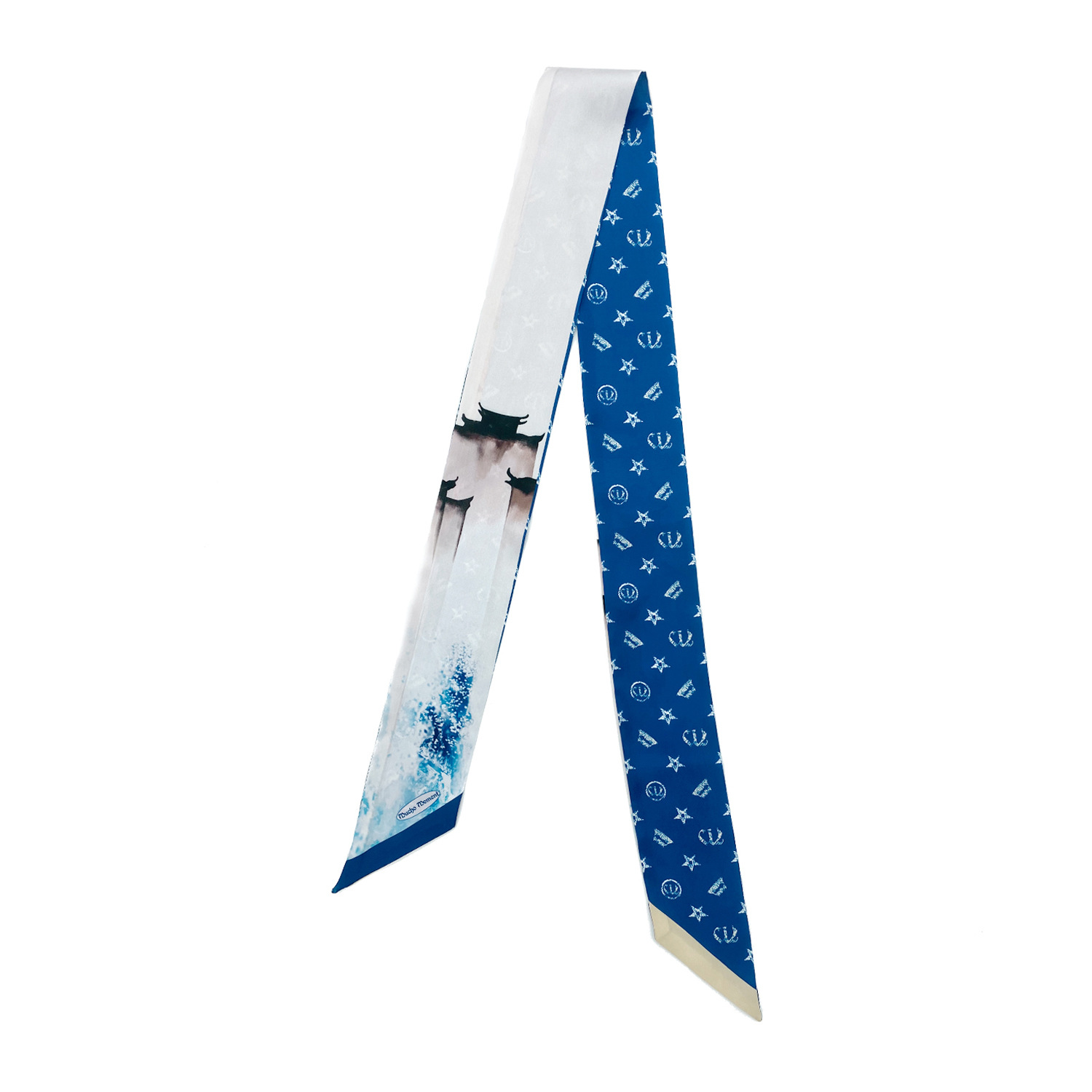 엄격한 선택 스카프 봄과 여름 새로운 원래 양면 인쇄 실크 스카프 다기능 긴 스카프 넥타이 가방 장식 헤어 밴드