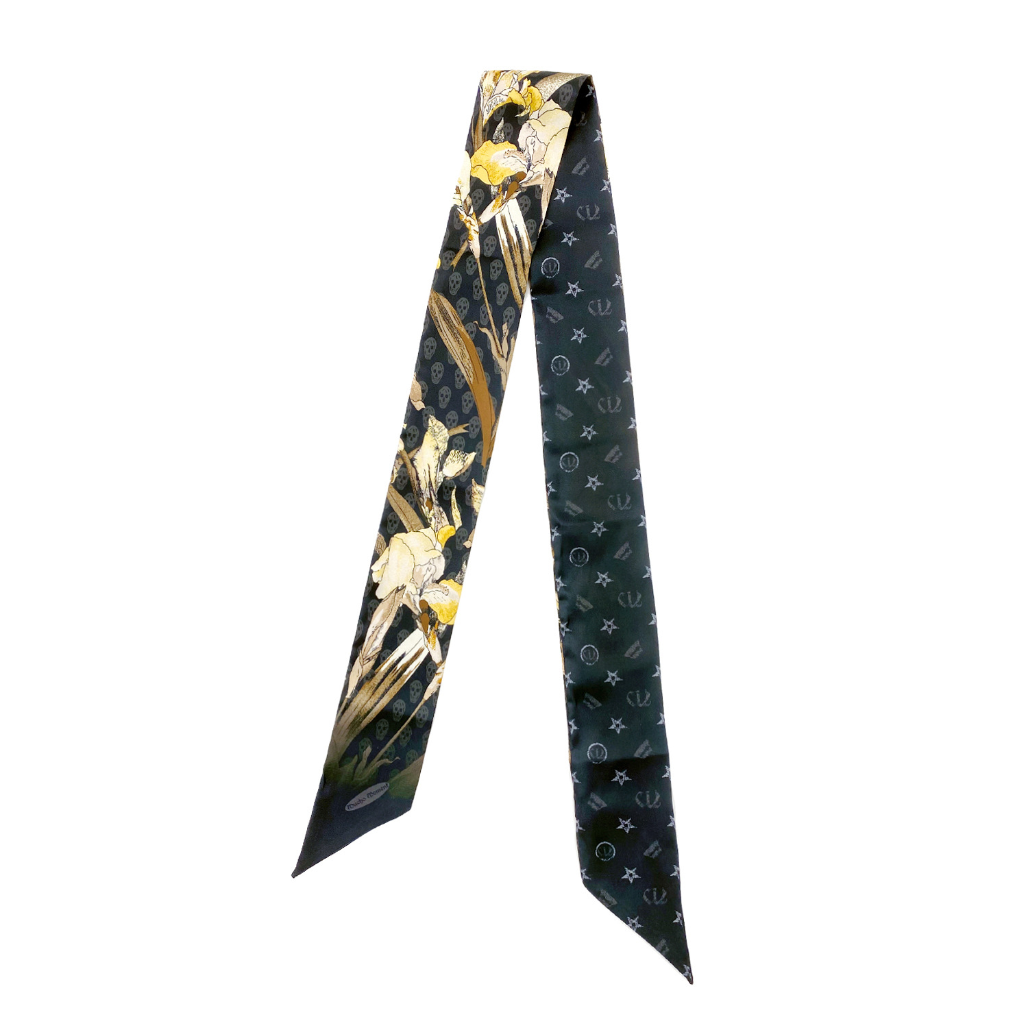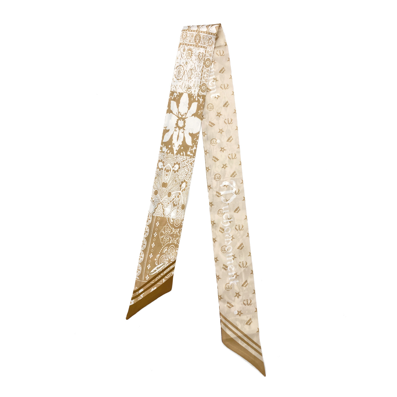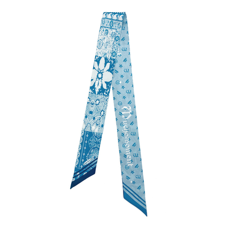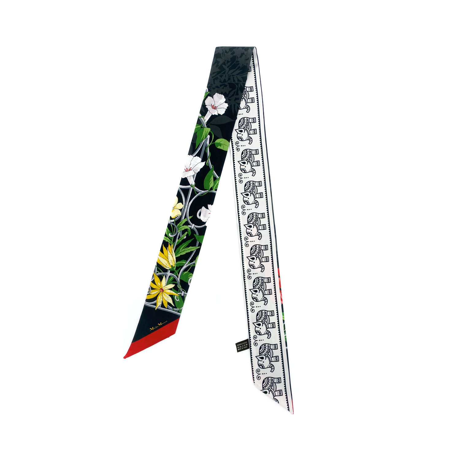 엄격한 선택 스카프 봄과 여름 새로운 원래 양면 인쇄 실크 스카프 다기능 긴 스카프 넥타이 가방 장식 헤어 밴드
