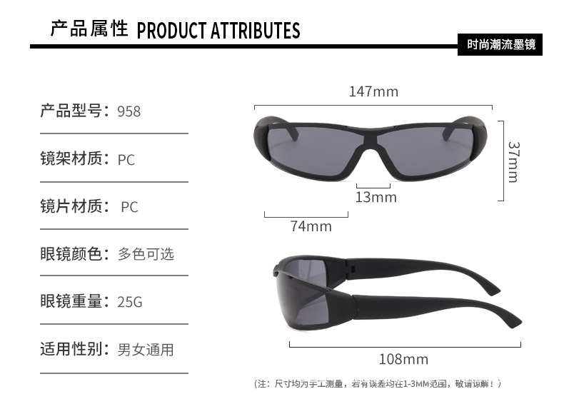 블랙 선글라스 야외 스포츠 차양 선글라스 유럽과 미국 패션 남성 승마 방풍 958 도매
