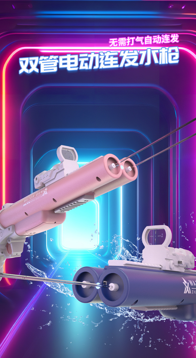크로스 보더 핫 세일 여름 쿨 더블 튜브 전기 물총 대용량 고압 물총 어린이 장난감 도매