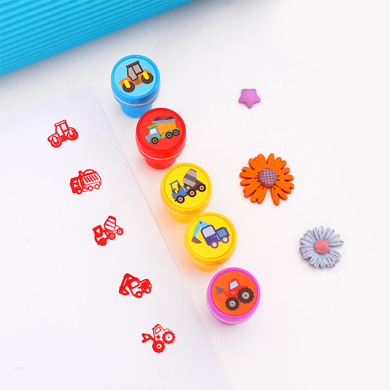 귀여운 만화 공학 자동차 어린이 스탬프 유치원 보상 장난감 스탬프 10 카드 포장스토어 가기