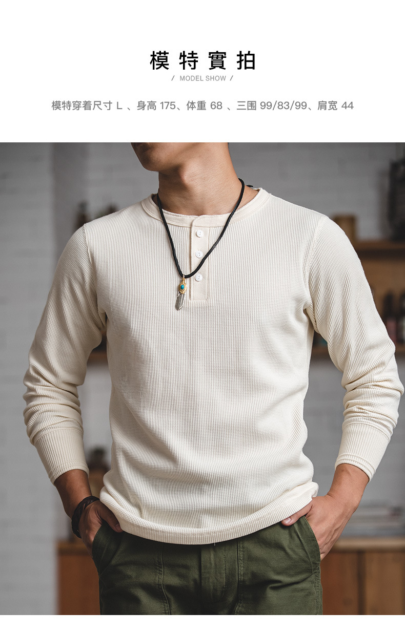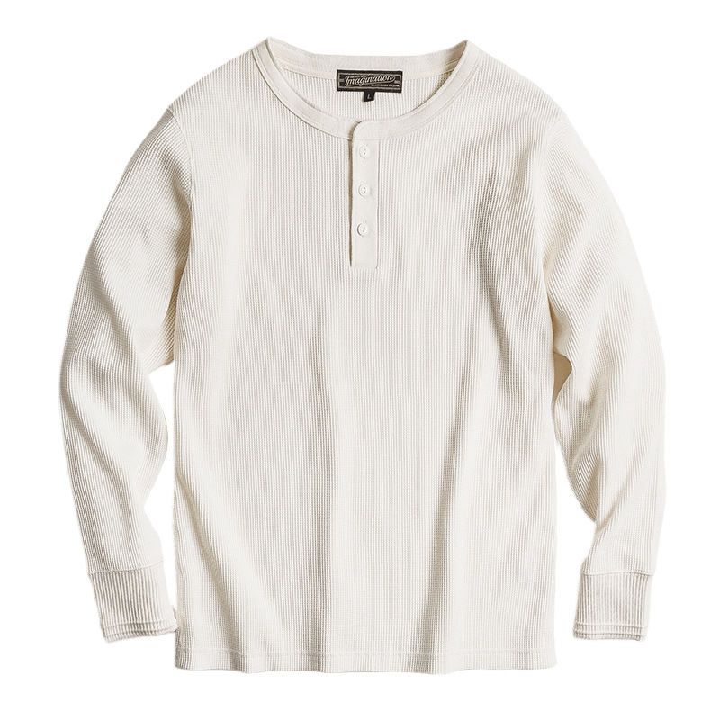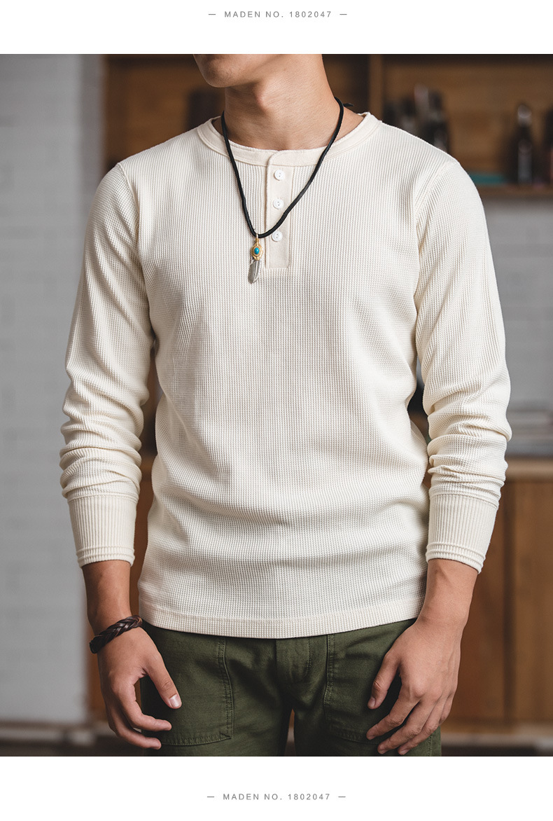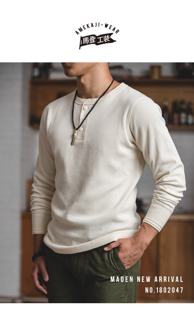 매든 툴링 빈티지 와플 헨리 셔츠 레트로 긴 소매 Ami Khaji 솔리드 컬러 스웨터 남성용스토어 가기