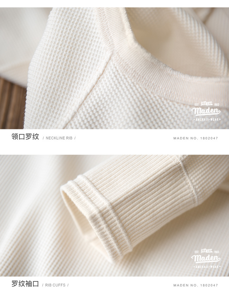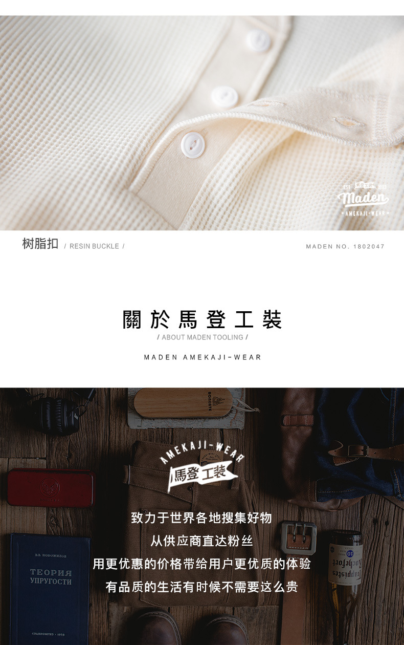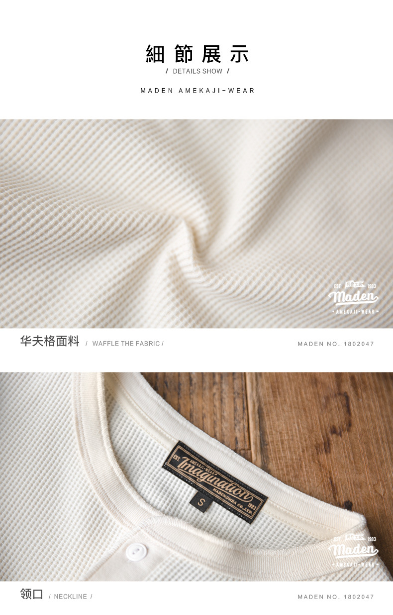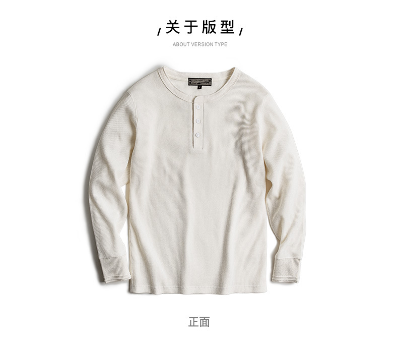 매든 툴링 빈티지 와플 헨리 셔츠 레트로 긴 소매 Ami Khaji 솔리드 컬러 스웨터 남성용스토어 가기