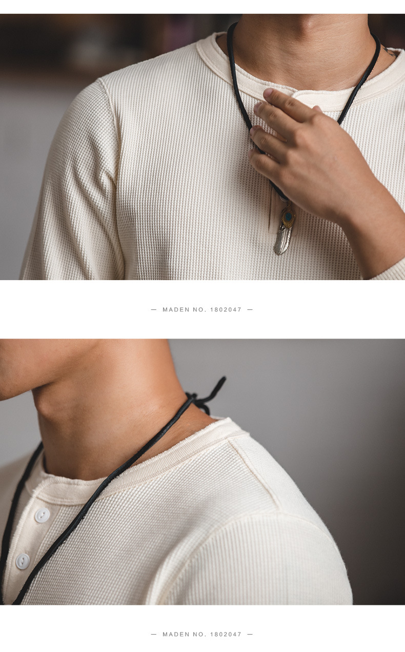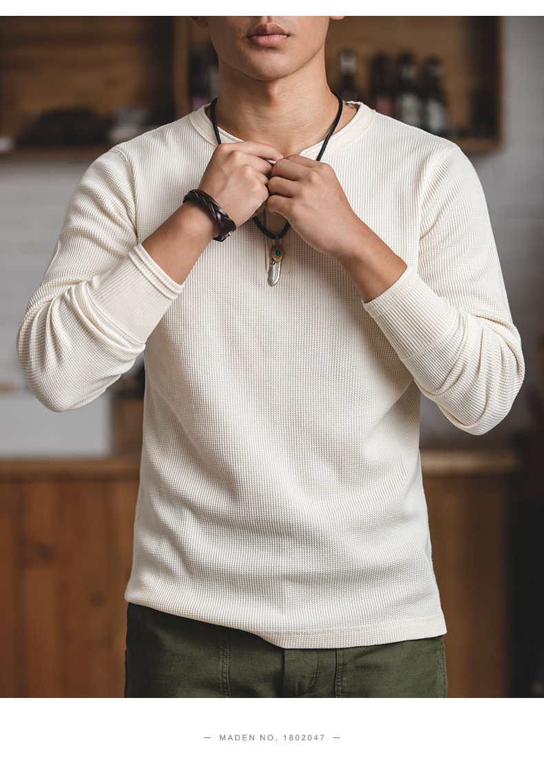매든 툴링 빈티지 와플 헨리 셔츠 레트로 긴 소매 Ami Khaji 솔리드 컬러 스웨터 남성용