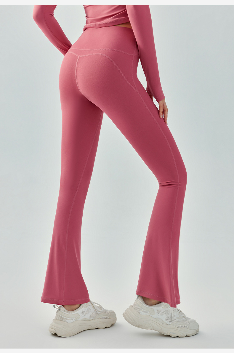 여름 새로운 복숭아 엉덩이 원활한 요가 플레어 바지 여성의 높은 허리 마이크로 건조 스트레치 피트니스 바지
