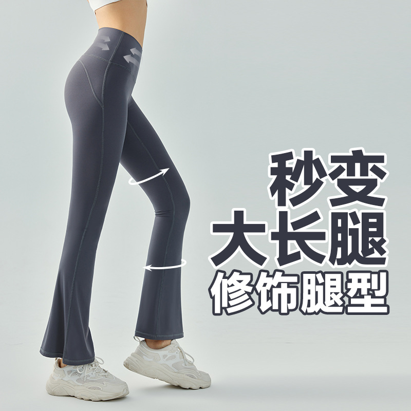 여름 새로운 복숭아 엉덩이 원활한 요가 플레어 바지 여성의 높은 허리 마이크로 건조 스트레치 피트니스 바지스토어 가기