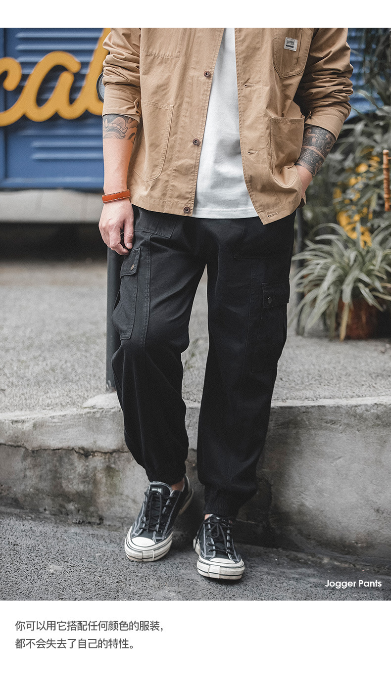 Madden Tooling 아메리칸 스타일 레트로 블랙 기능성 발 바지 포켓 스트레이트 캐주얼 크롭 랜턴 발 바지 남성스토어 가기