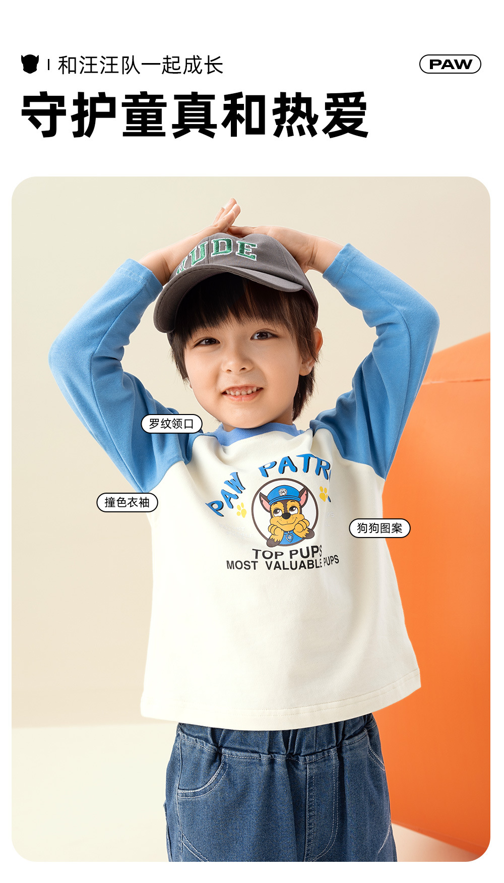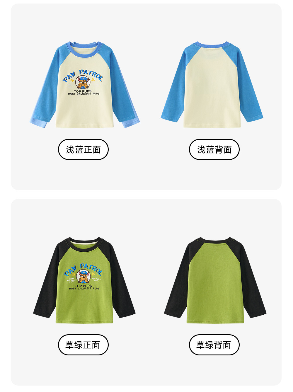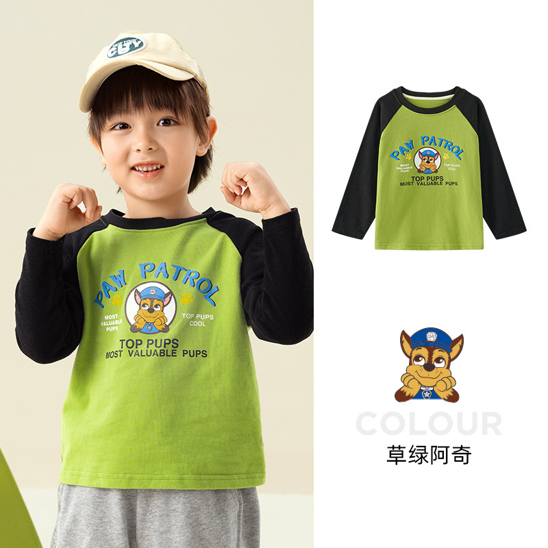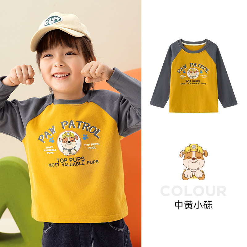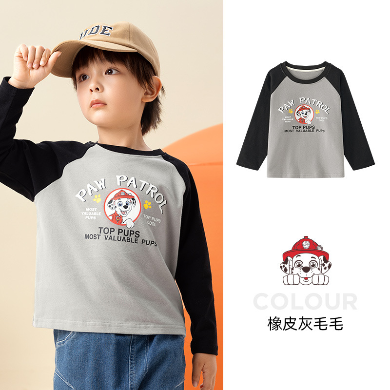 Paw Paw 팀 소년 티셔츠 순수 코튼 긴팔 라운드 넥 대비 색 소매 소년과 소녀 바닥 셔츠 봄, 가을 새로운 스팟 도매스토어 가기