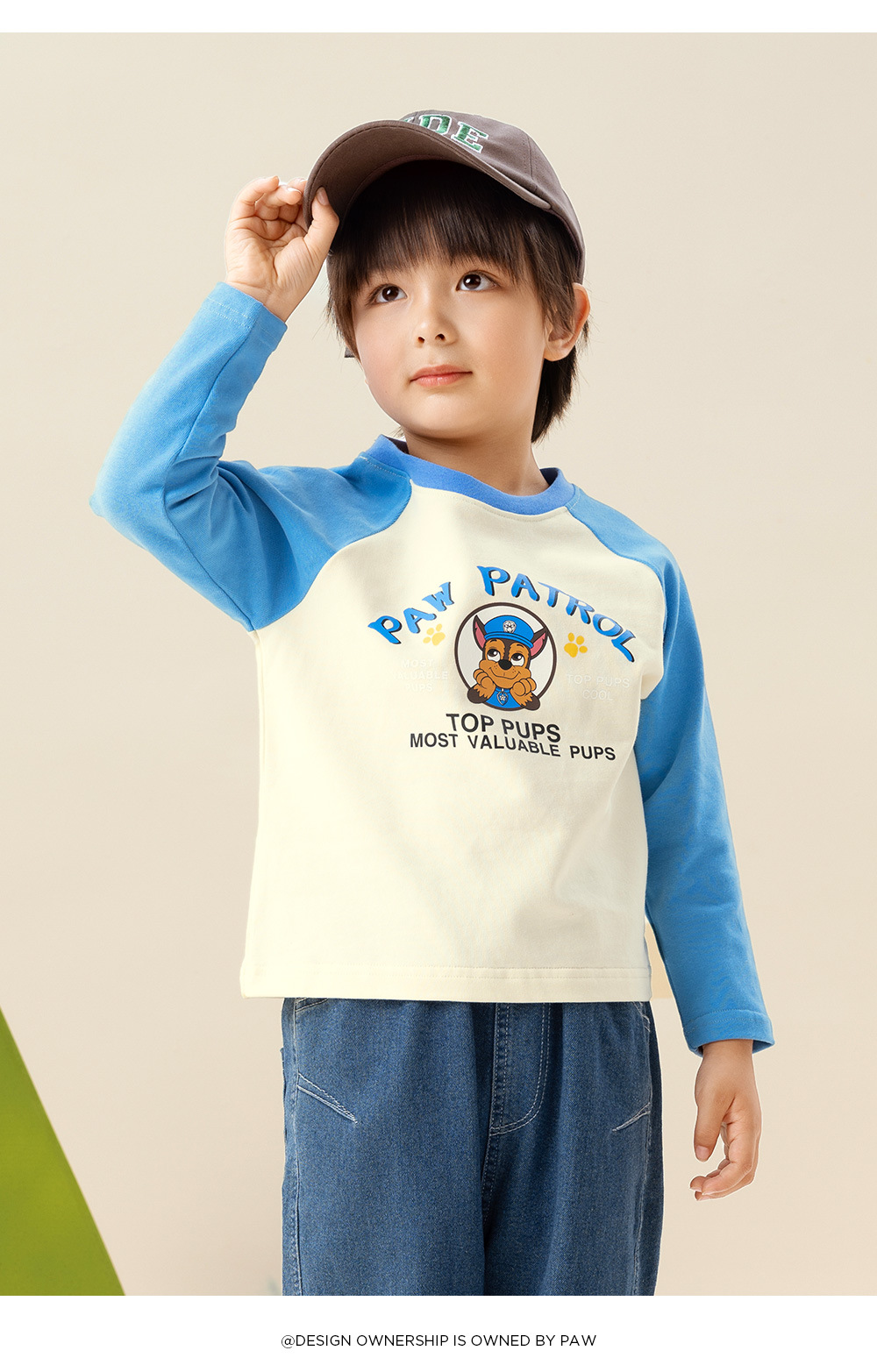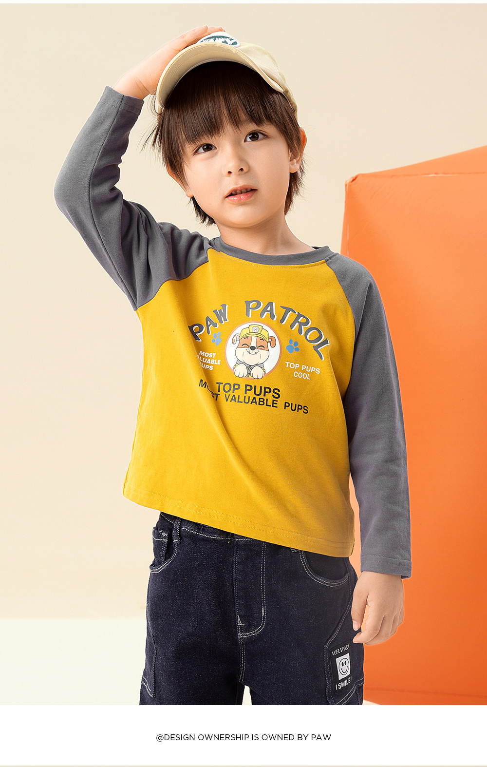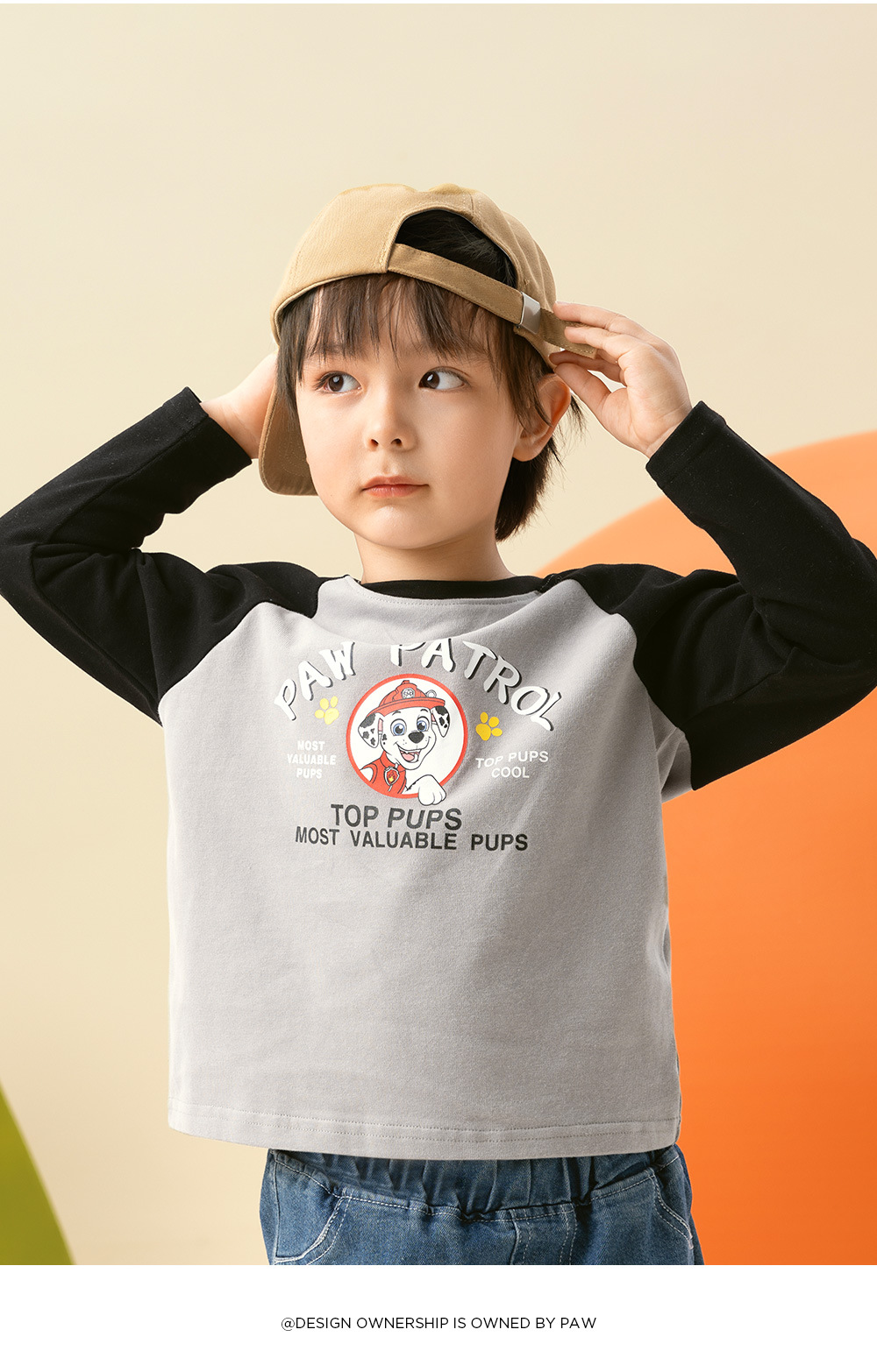 Paw Paw 팀 소년 티셔츠 순수 코튼 긴팔 라운드 넥 대비 색 소매 소년과 소녀 바닥 셔츠 봄, 가을 새로운 스팟 도매스토어 가기