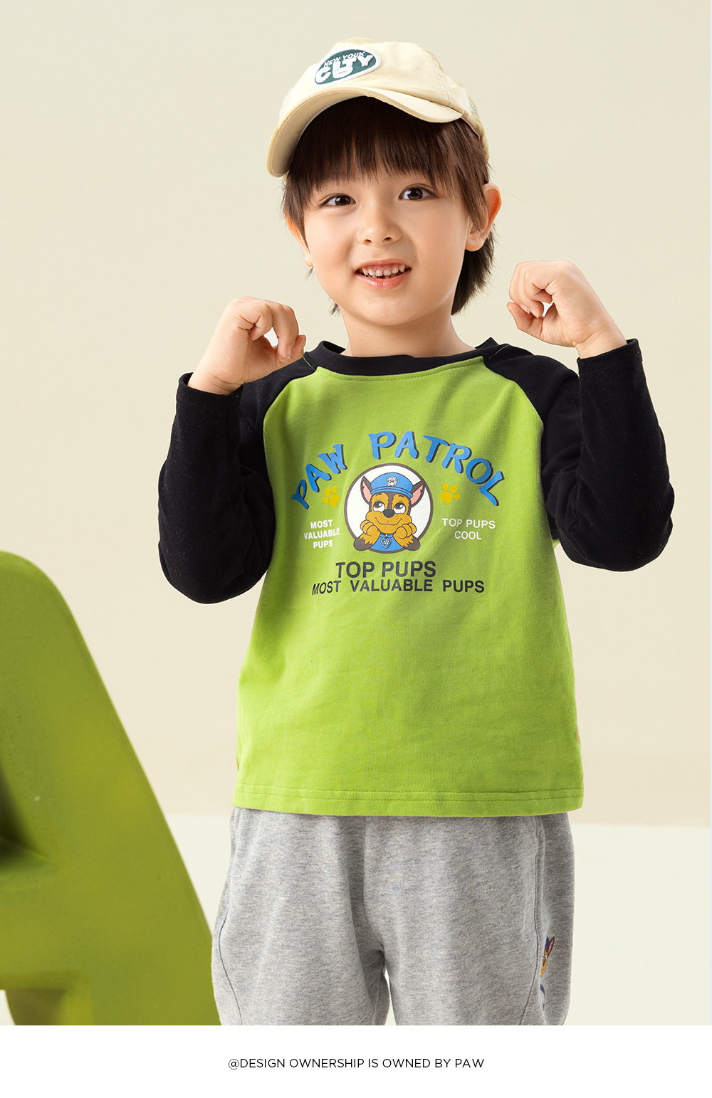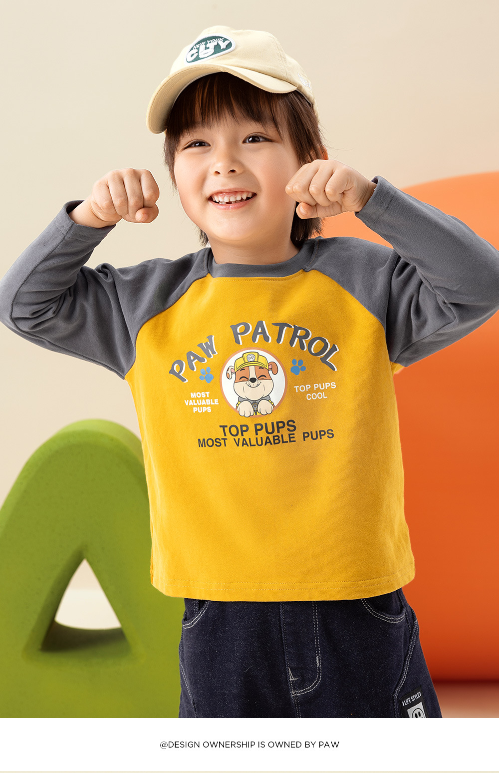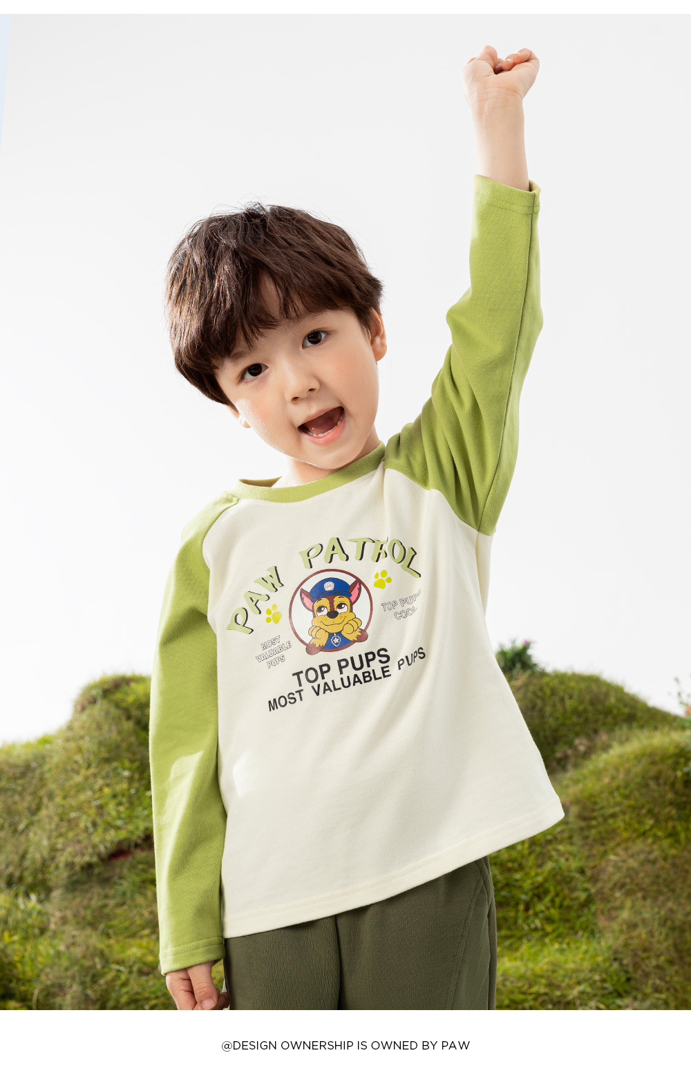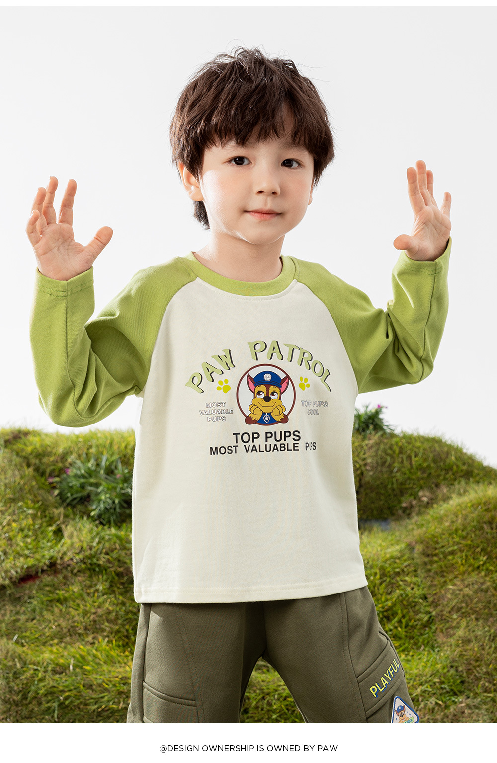 Paw Paw 팀 소년 티셔츠 순수 코튼 긴팔 라운드 넥 대비 색 소매 소년과 소녀 바닥 셔츠 봄, 가을 새로운 스팟 도매스토어 가기