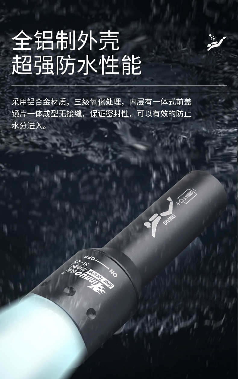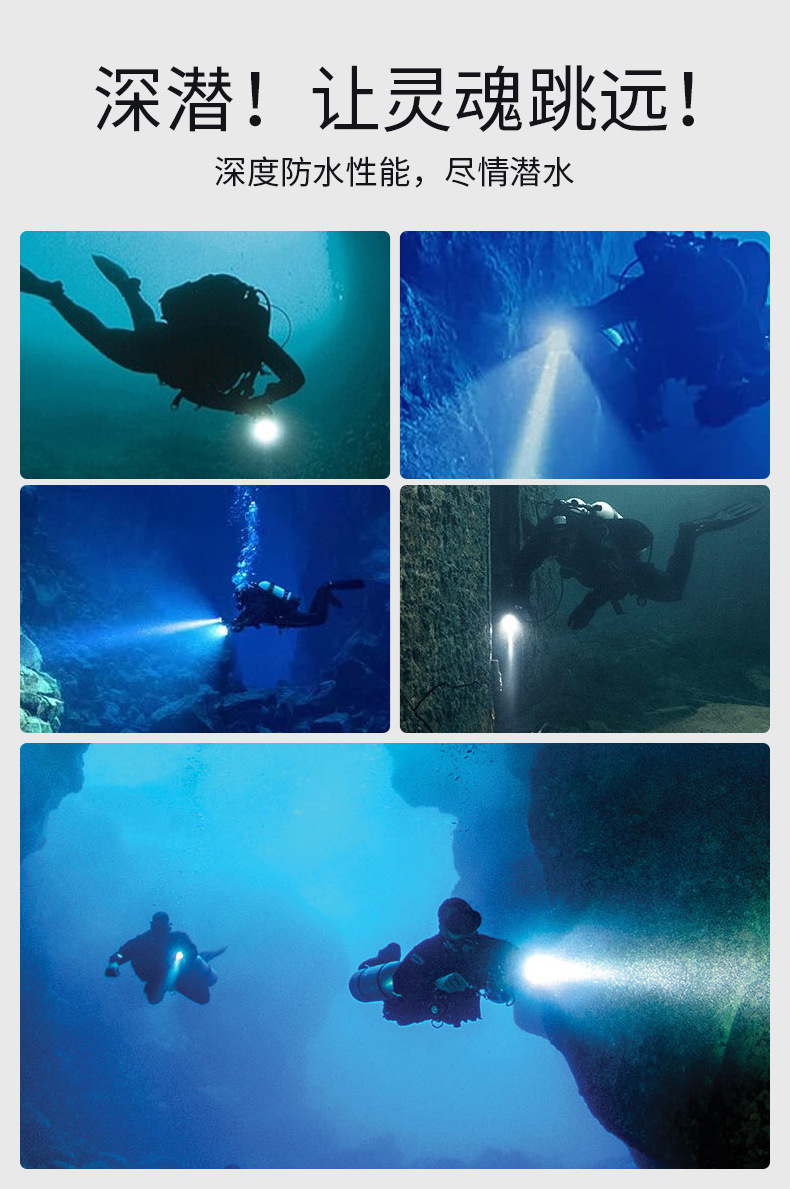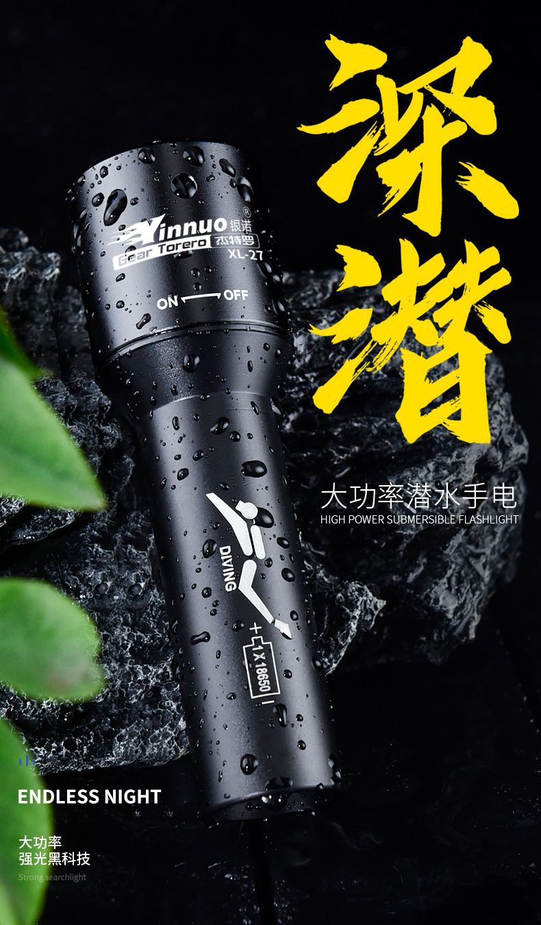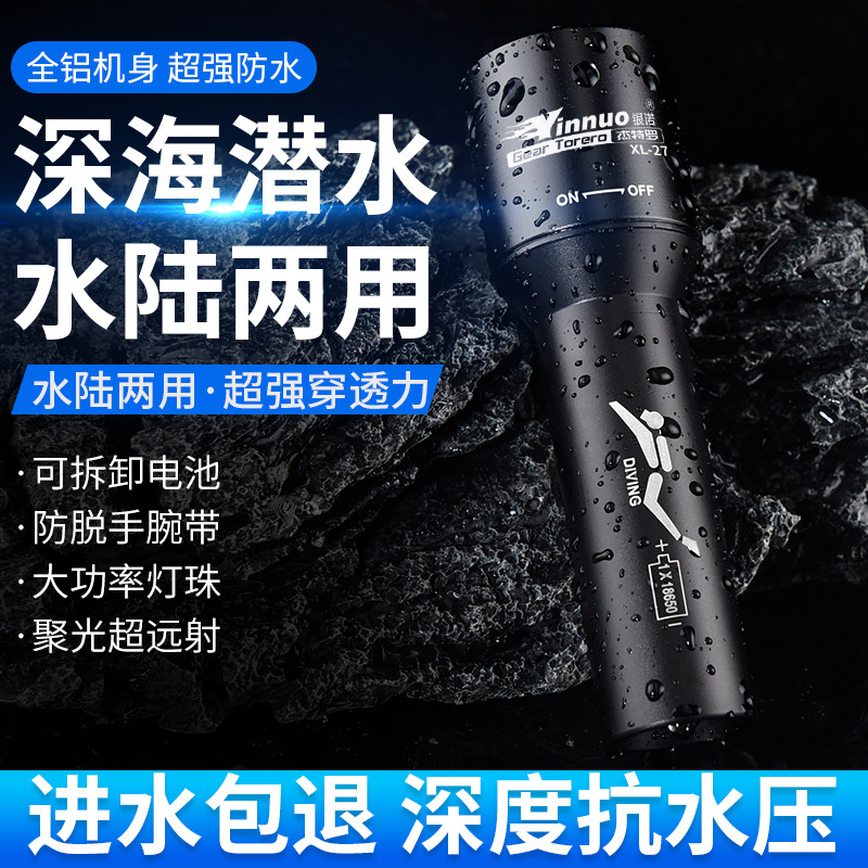 Yinnuo 다이빙 손전등 강한 빛 전문 수중 슈퍼 브라이트 충전식 야외 깊은 다이빙 조명