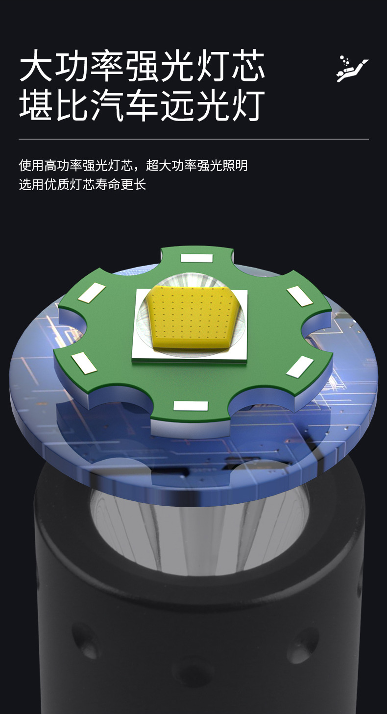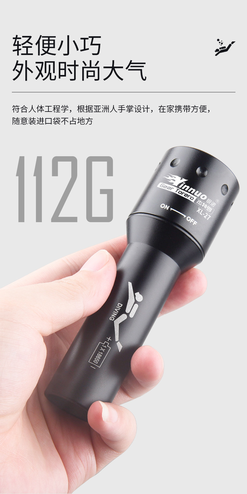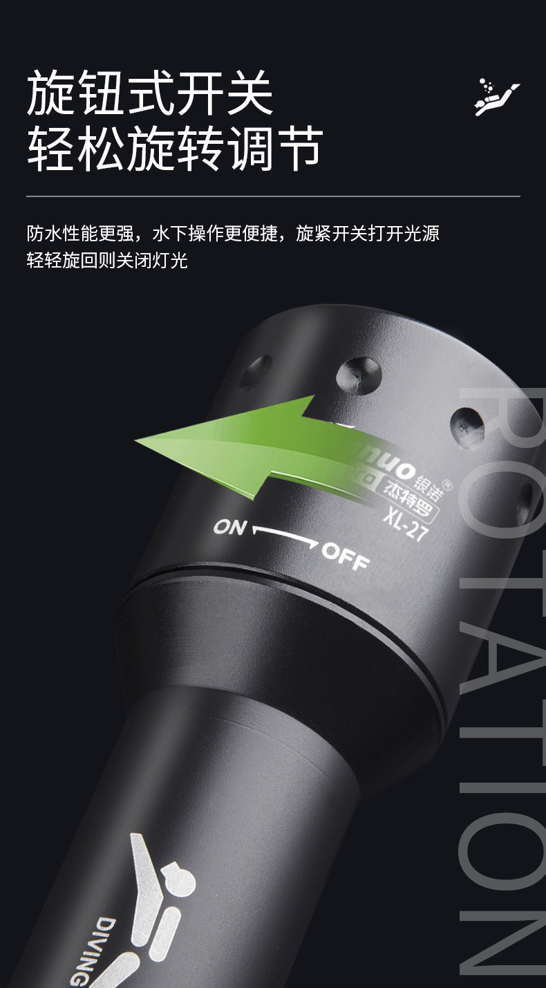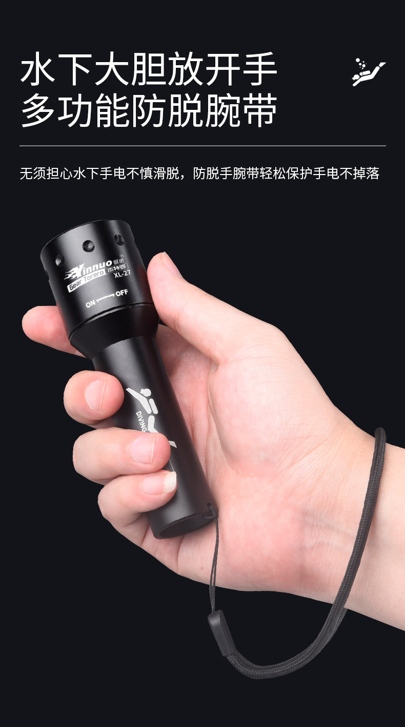 Yinnuo 다이빙 손전등 강한 빛 전문 수중 슈퍼 브라이트 충전식 야외 깊은 다이빙 조명