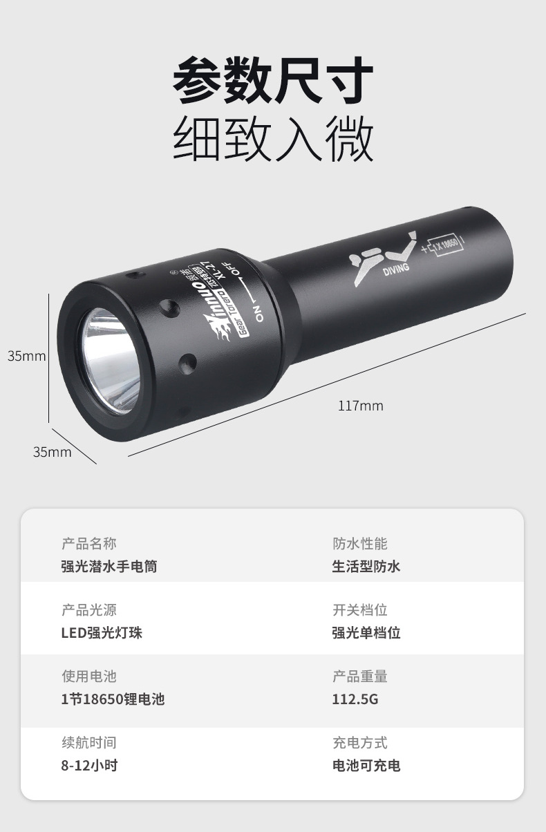 • XL-27 다이빙을위한 특별 (베어 램프)-충전 및 배터리 없음