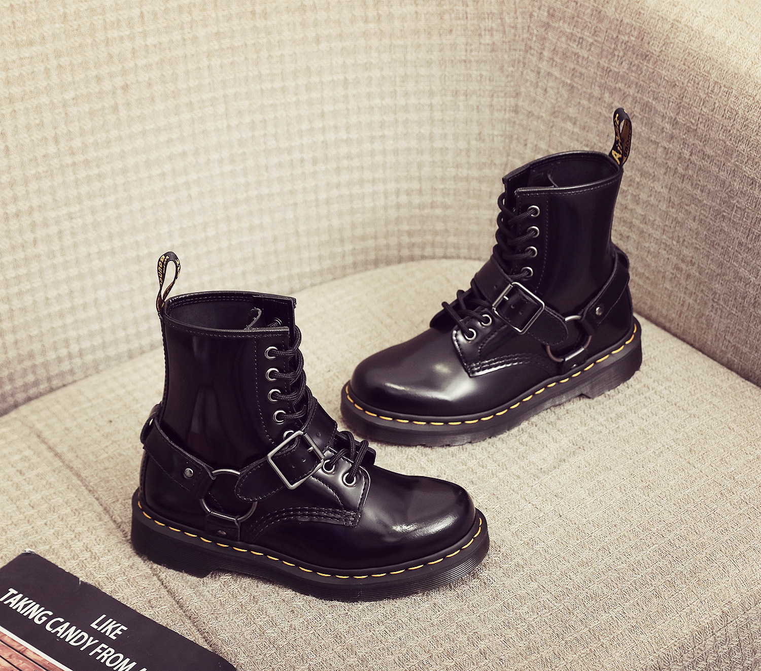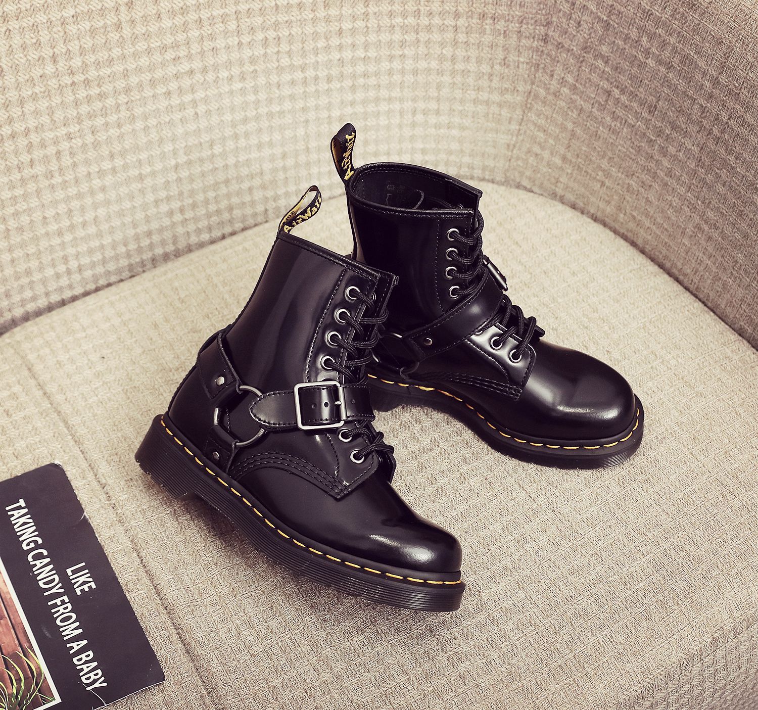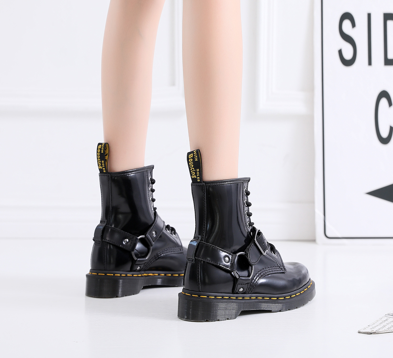 버클 1460 마틴 부츠 여성용 버클 브래드 필드 앵클 부츠 남성과 여성의 가죽 부츠 라운드 토 유행 빌보드 신발스토어 가기