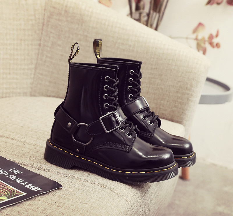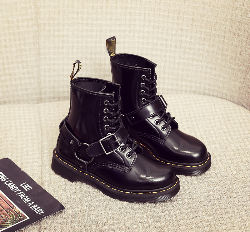 버클 1460 마틴 부츠 여성용 버클 브래드 필드 앵클 부츠 남성과 여성의 가죽 부츠 라운드 토 유행 빌보드 신발