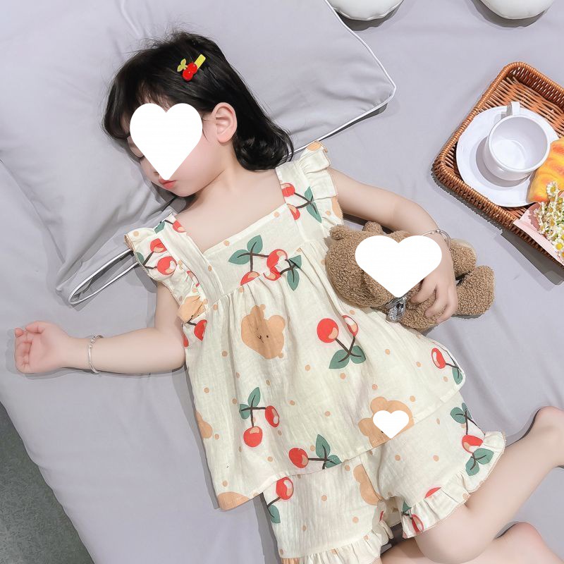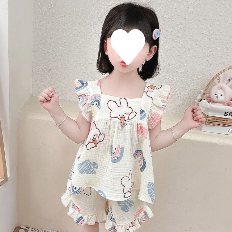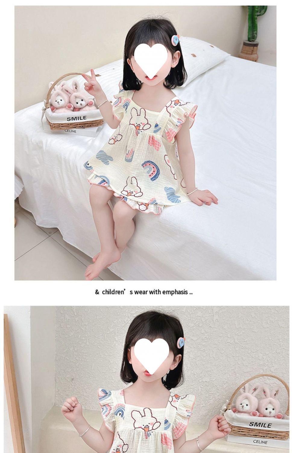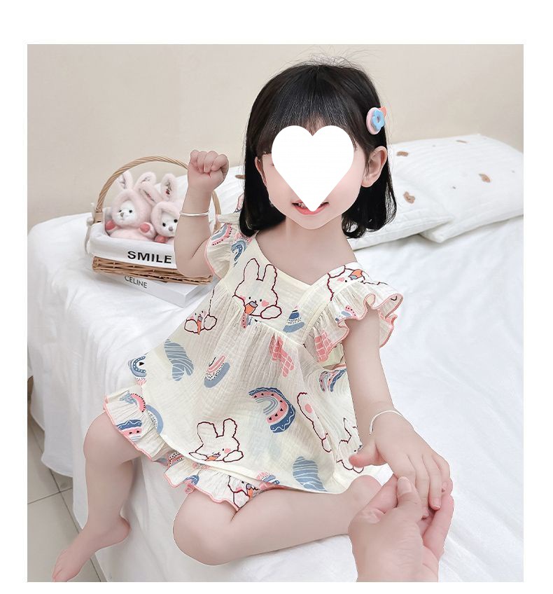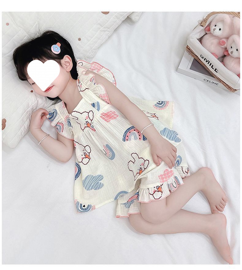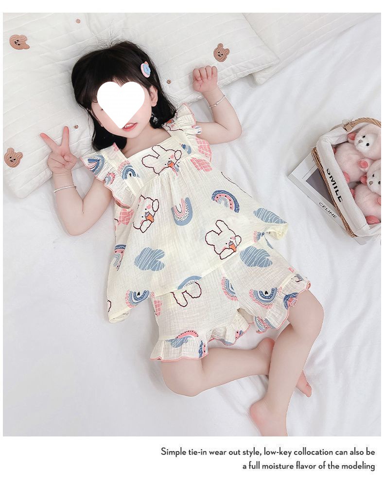 일본 여름 얇은 작고 큰 소녀 슬링 토끼 소녀 잠옷 공주 스타일 가정 옷 세트 에어컨 옷