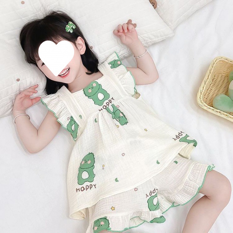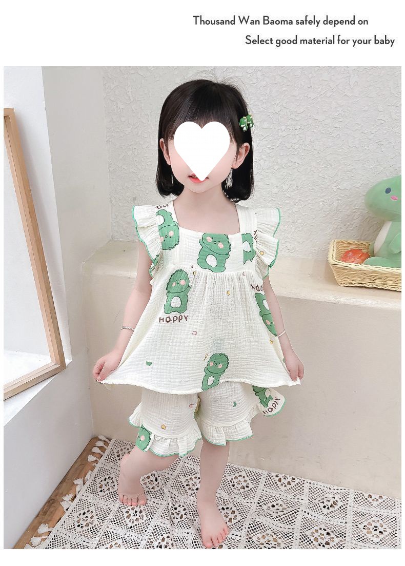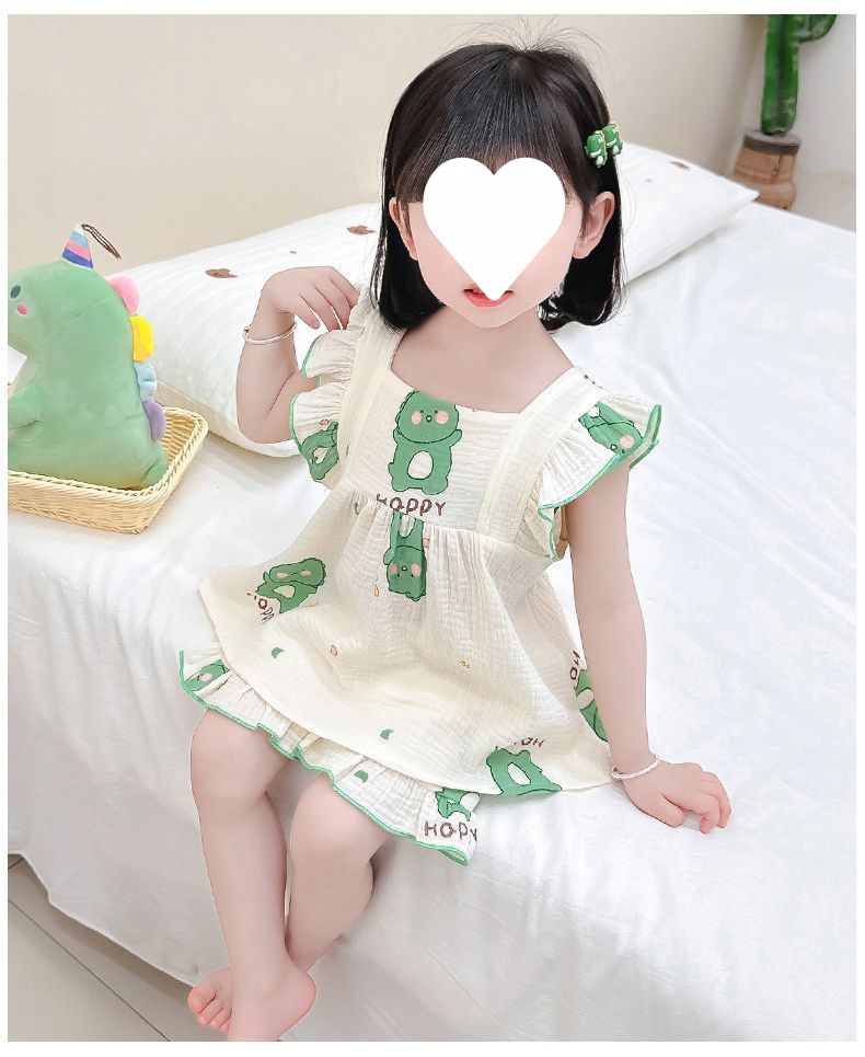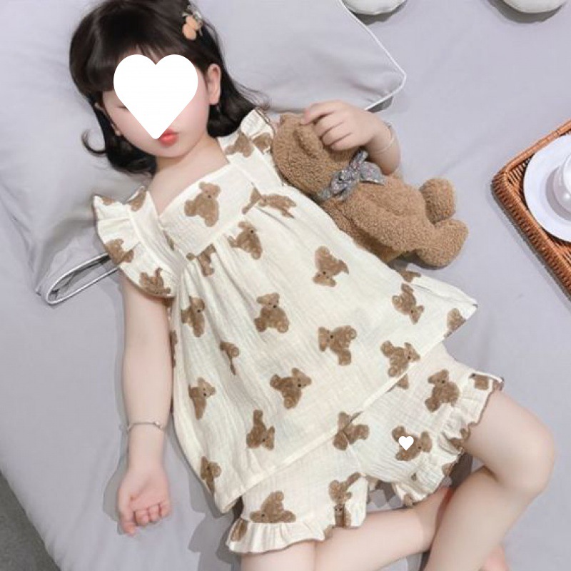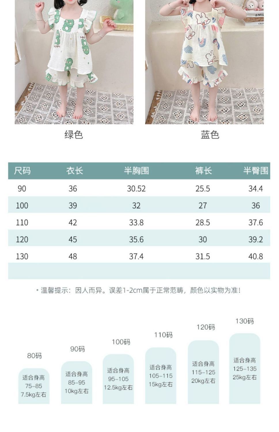 일본 여름 얇은 작고 큰 소녀 슬링 토끼 소녀 잠옷 공주 스타일 가정 옷 세트 에어컨 옷