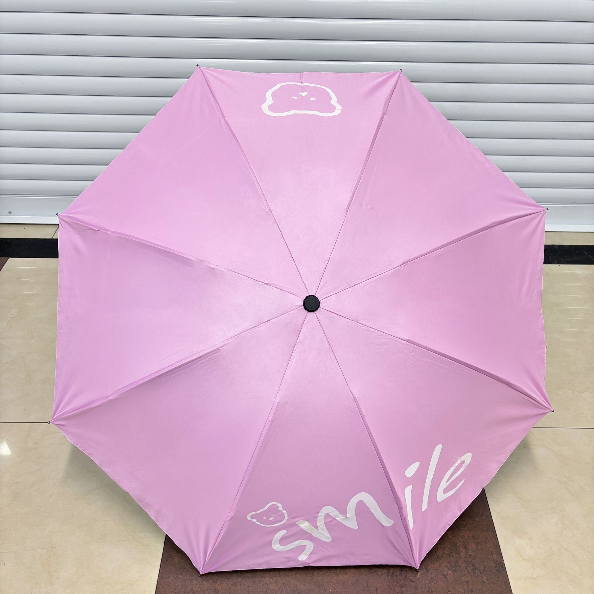 스마일 베어 어린이 자동 우산 접이식 만화 우산 자외선 차단 블랙 글루 우산 UV 차단 로고 인쇄 광고 우산