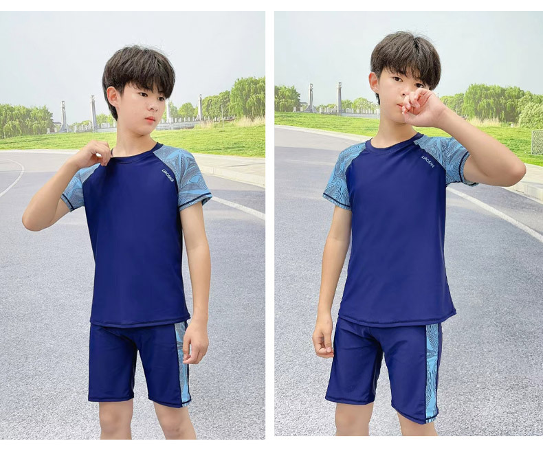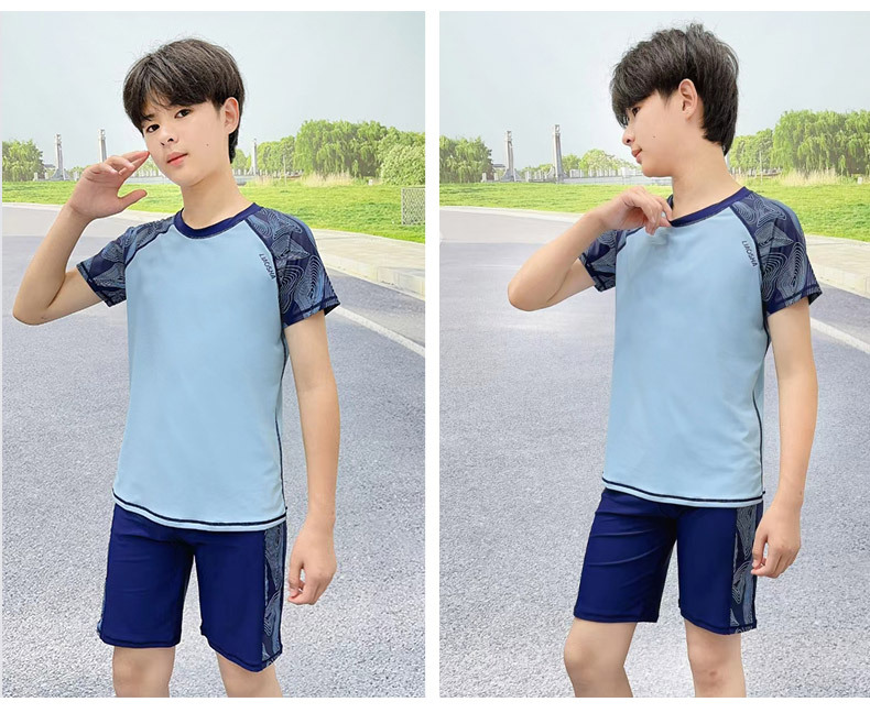 십대 플러스 수영 트렁크 세트 큰 소년 분할 수영복 속건 중학교 소년 수영복 5 점 스포츠 수영 트렁크스토어 가기