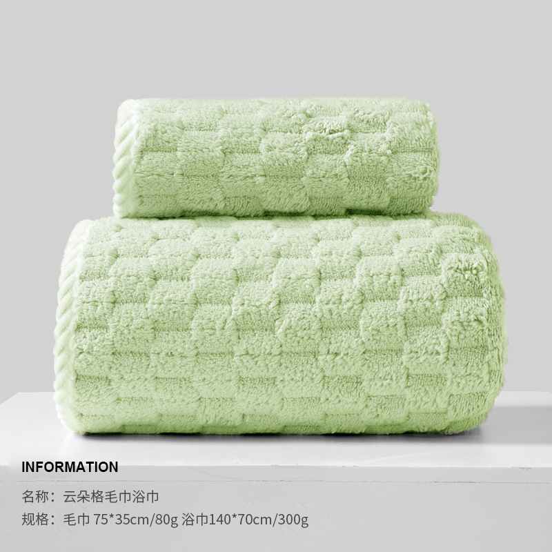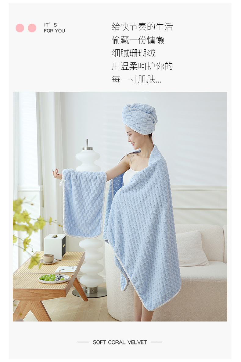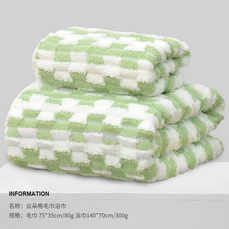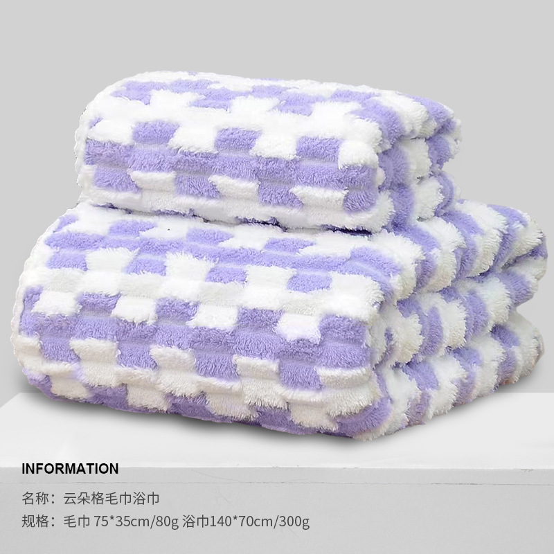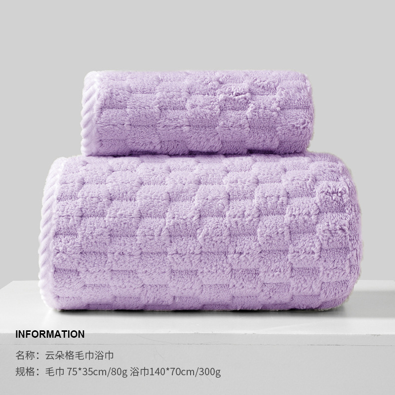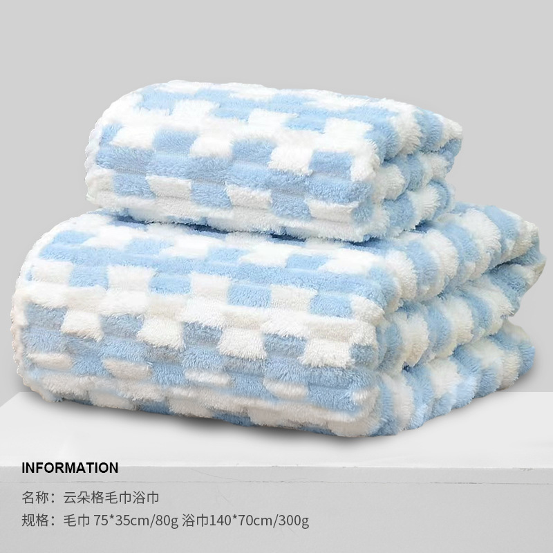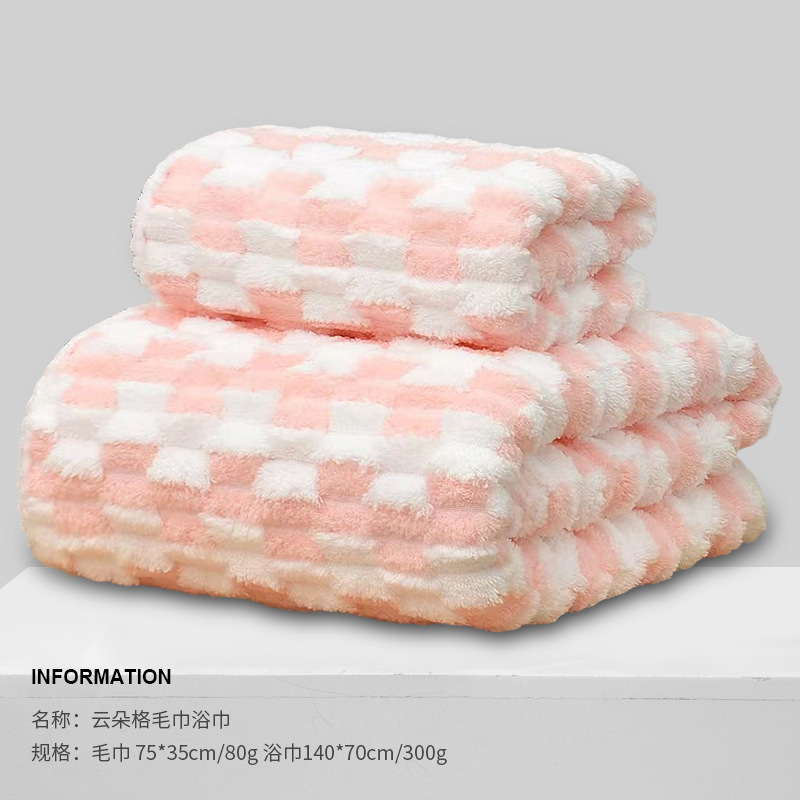 산호 벨벳 클라우드 체크 무늬 수건, 흡수성 및 보푸라기가 없는 목욕 수건, 성인용 샤워 캡 세트, 제조업체 도매, 두꺼운 배송스토어 가기