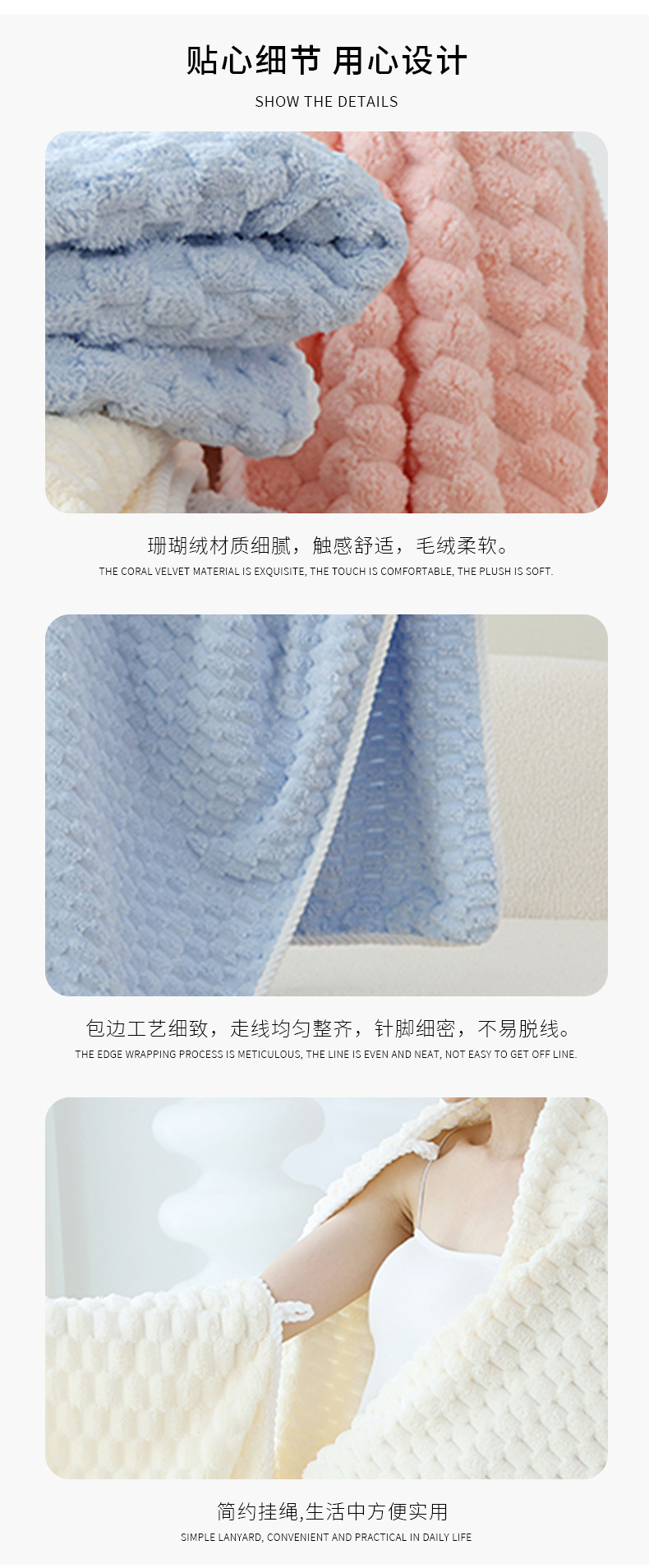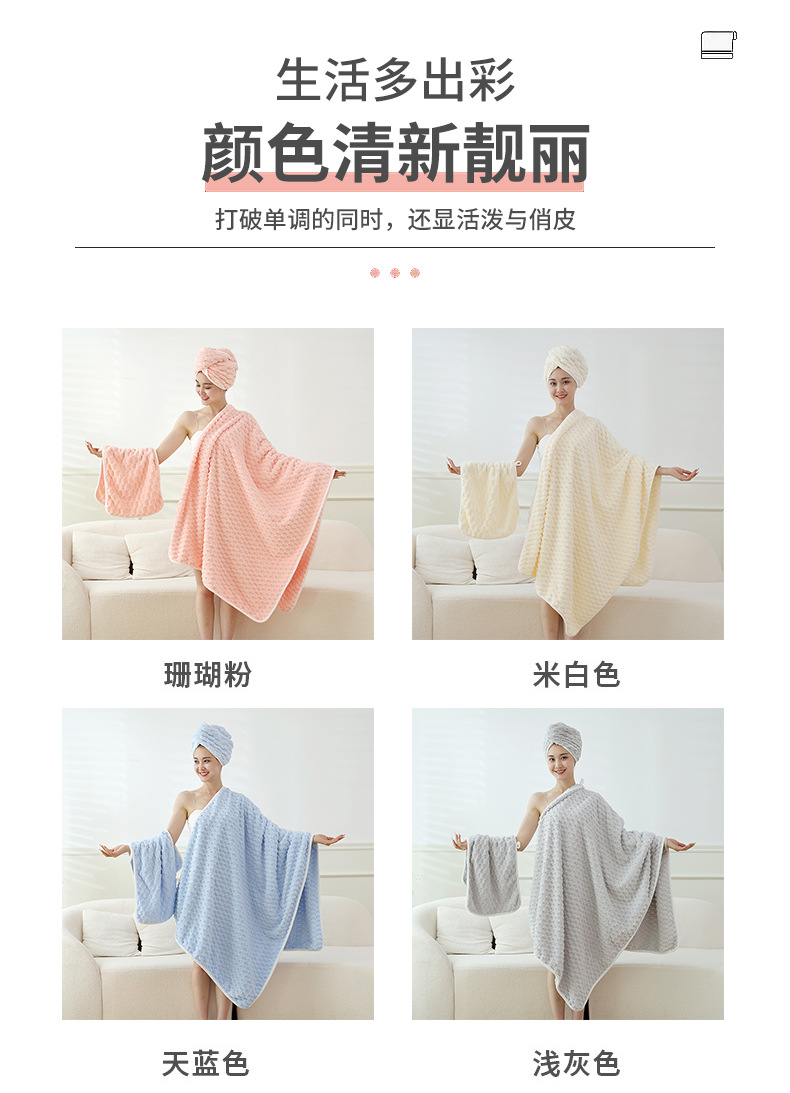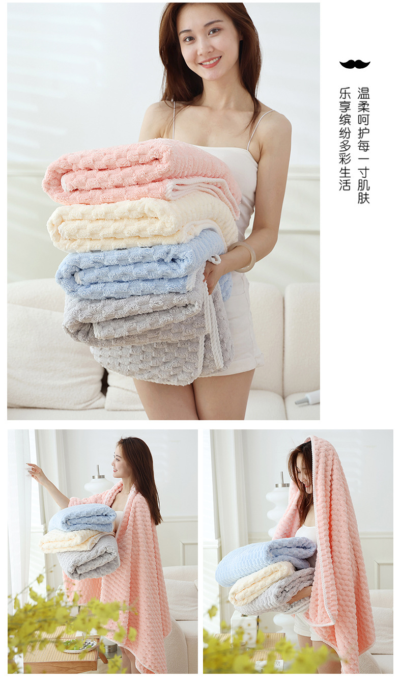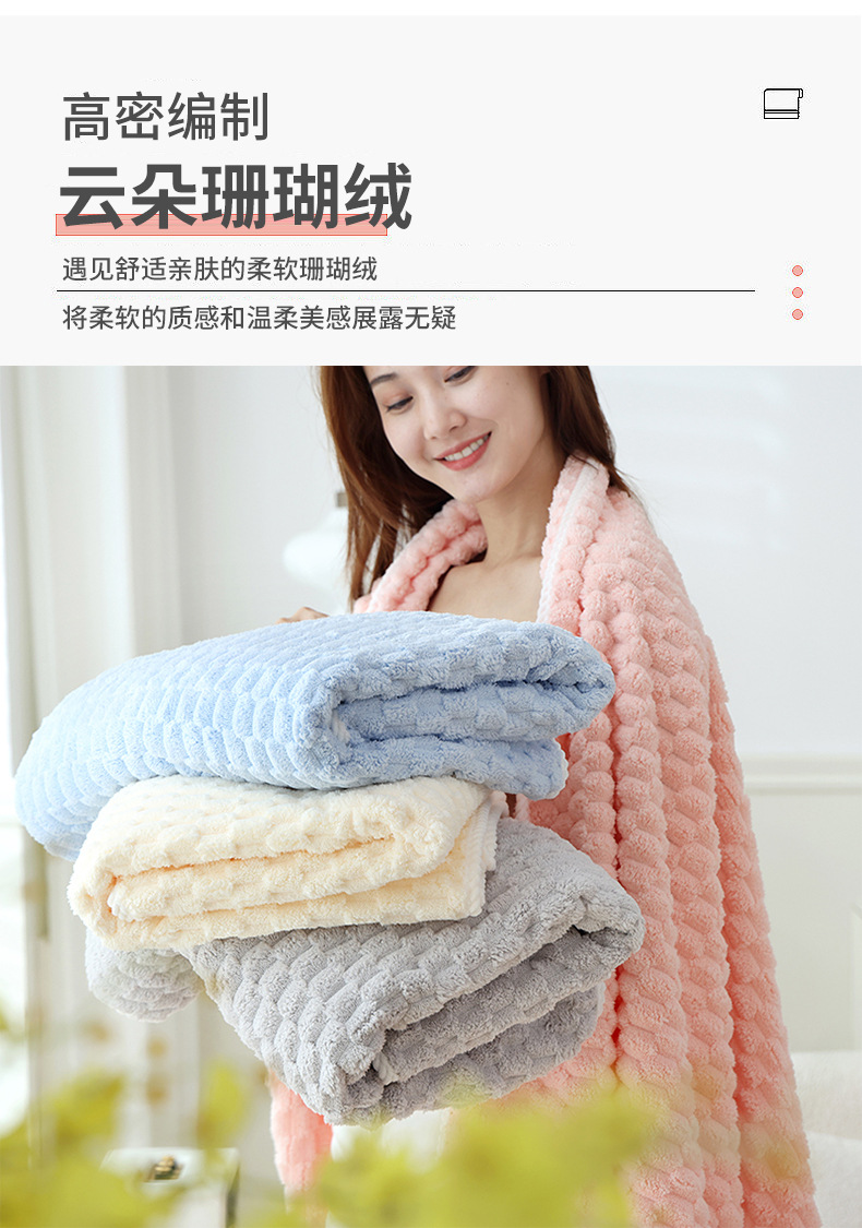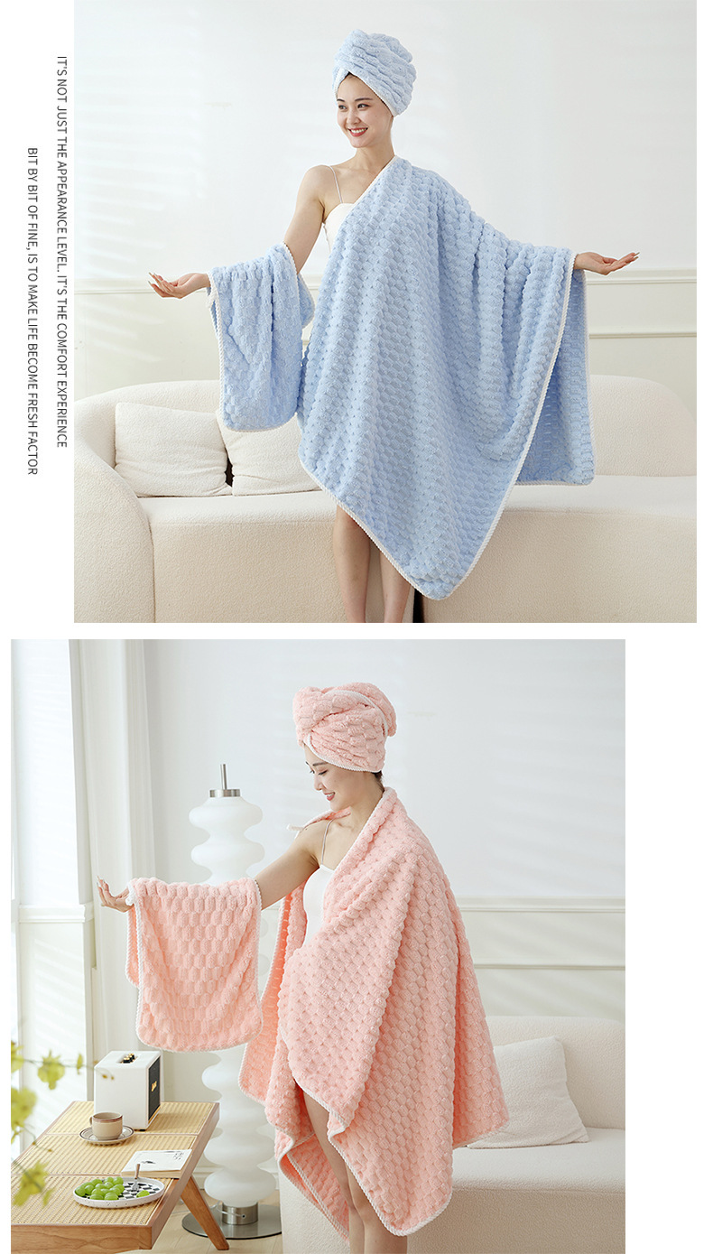 산호 벨벳 클라우드 체크 무늬 수건, 흡수성 및 보푸라기가 없는 목욕 수건, 성인용 샤워 캡 세트, 제조업체 도매, 두꺼운 배송스토어 가기