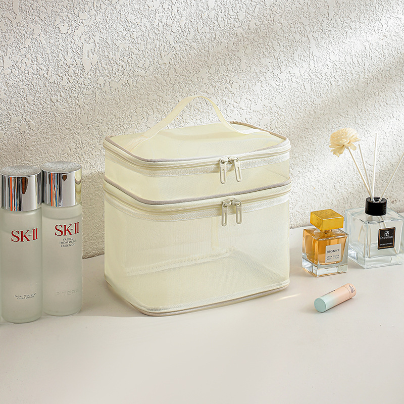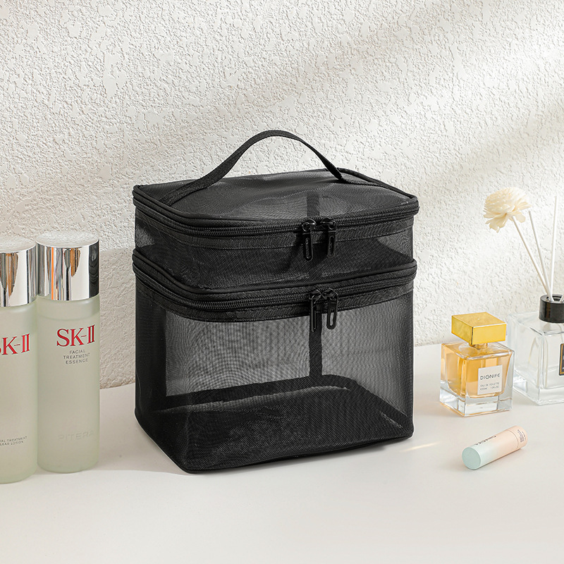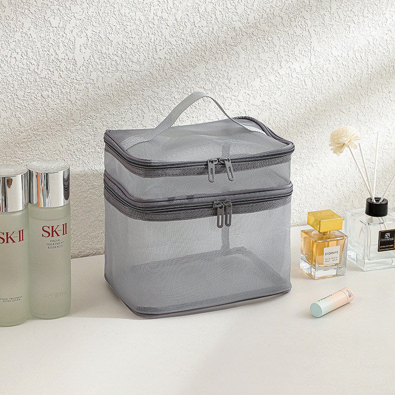 뉴 메쉬 화장품 가방 여행 화장품 보관 가방 대용량 이중 투명 메쉬 세면도구 가방 세트 로고스토어 가기