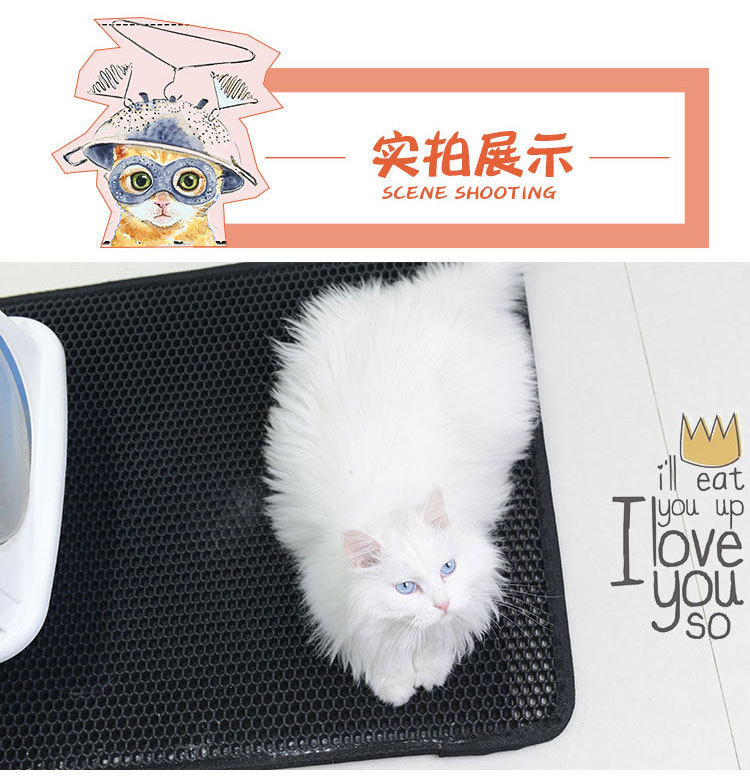 두 배 두꺼운 검은 벌집 EVA 애완 동물 고양이 쓰레기 매트 스플래시를 쉽게 청소할 수있는 매체