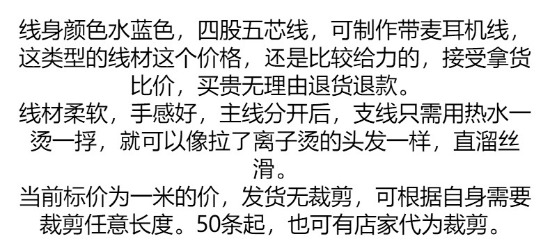 투명한 워터 블루 이어폰 케이블 diy 반제품 와이어 4 가닥 5 코어 와이어 diy 헤드셋 (미터로 판매되는 마이크 포함)스토어 가기