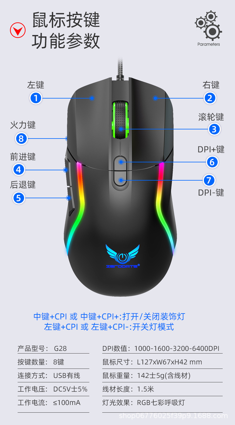 공장 직접 공급 게임 E 스포츠 유선 마우스 G28 사용자 정의 매크로 프로그래밍 다채로운 RGB 경쟁 컴퓨터 마우스스토어 가기