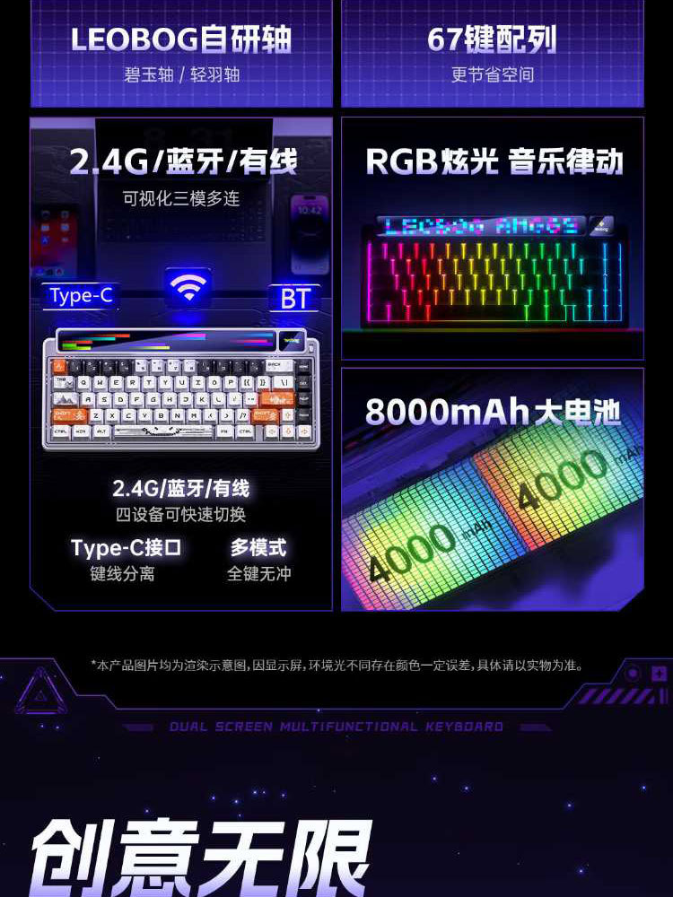 LEOBOG AMG65 무선 블루투스 3모드 기계식 키보드 마우스 세트 유선 게임용 키보드 마우스 핫스왑스토어 가기