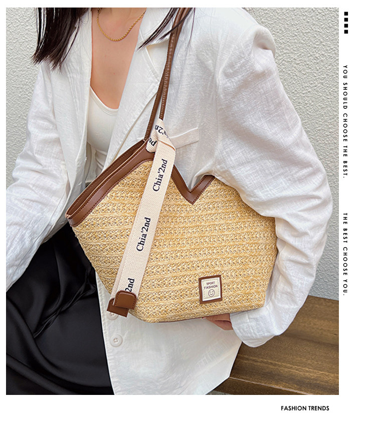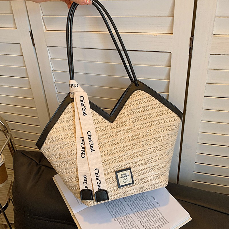 여성용 대용량 토트 백 2025 새로운 유행 복고풍 휴대용 밀짚 가방 다용도 어깨 짠 가방 통근 가방스토어 가기