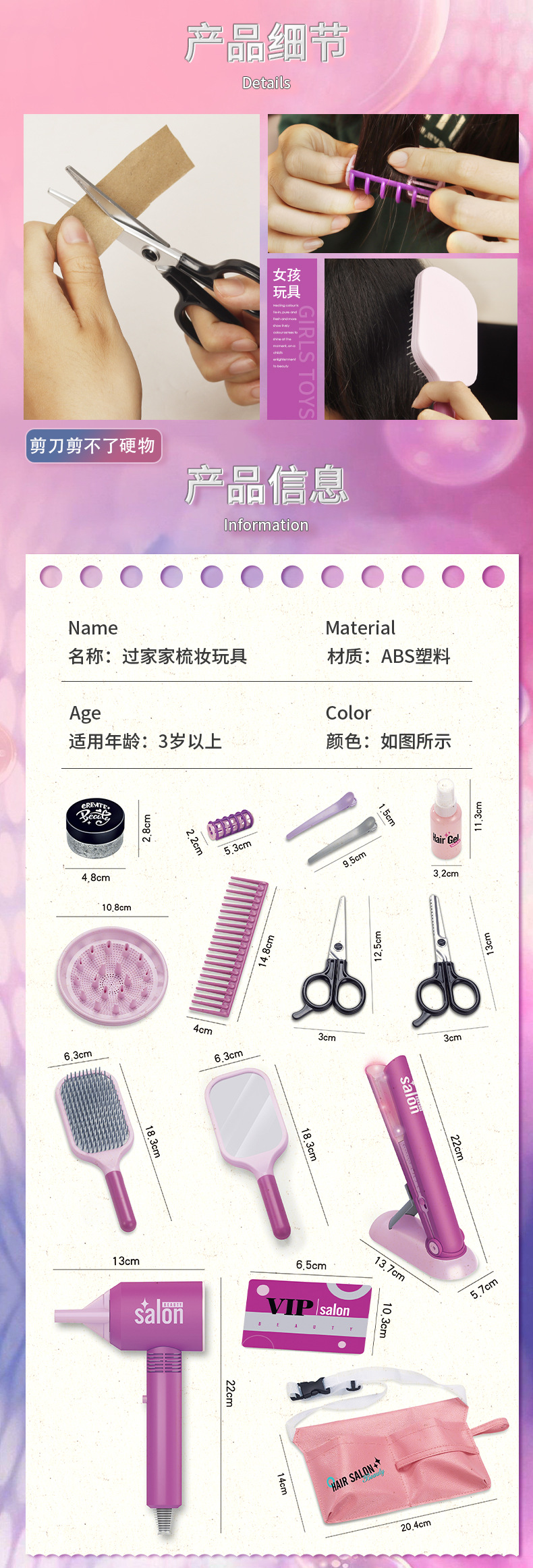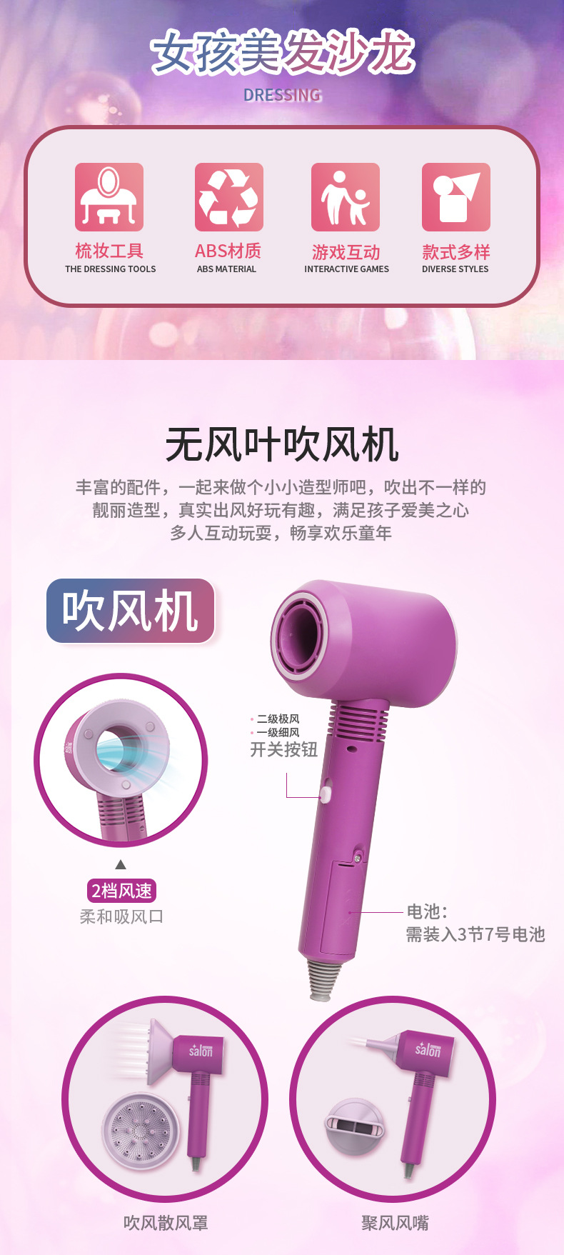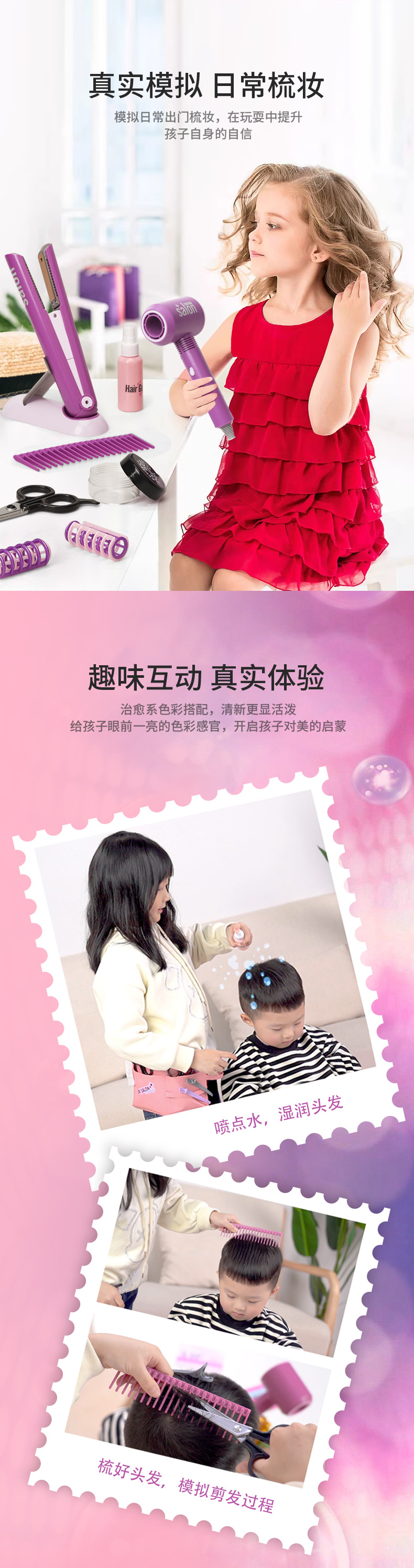 2026년 신형 국경 간 장난감, 어린이용 모조 헤어드라이어, 머리 부는 게임, 머리 자르기 게임, 가전제품, 여자아이들을 위한 재미있는 머리 빗질 게임