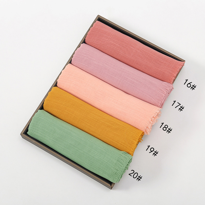 새로운 핫 세일 슬러브 면 단색 롱 스카프 말레이시아 부티크 통기성 여성용 모든 매치 소프트 스카프