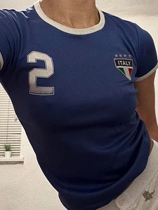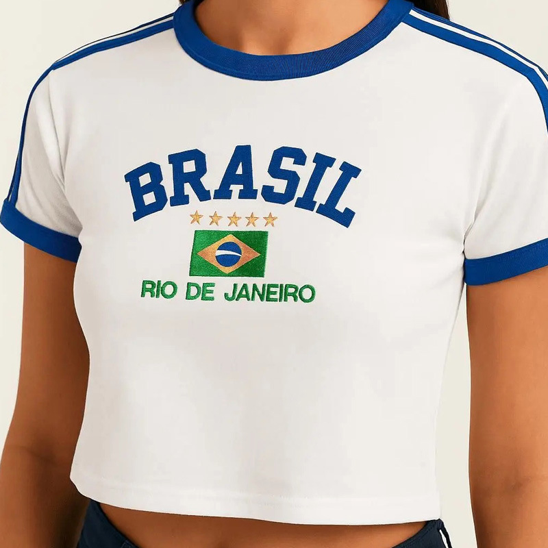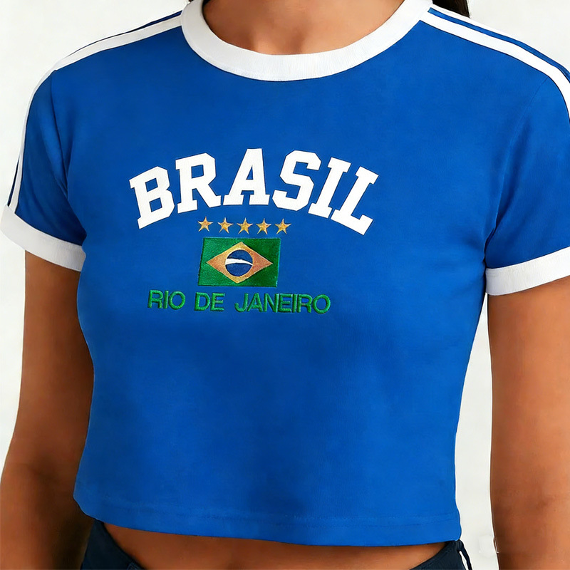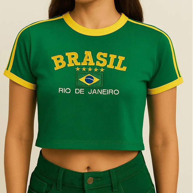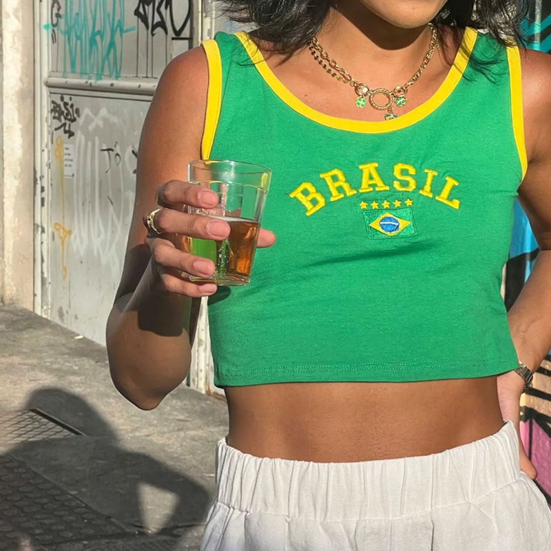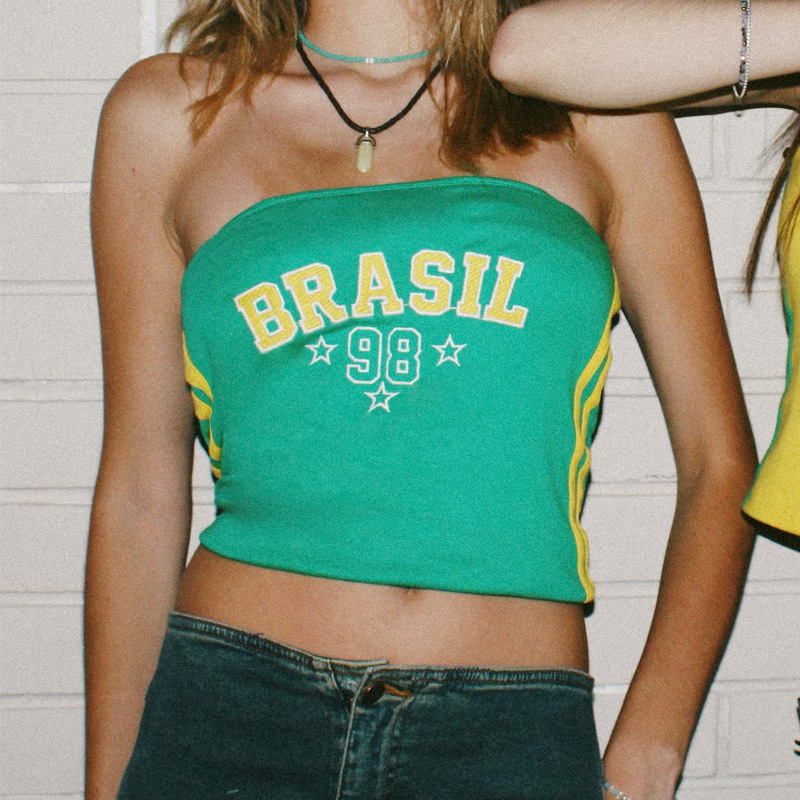 빈티지 미적 탑 녹색 여름 티셔츠 수 놓은 편지 패턴 짧은 소매 아기 배꼽 의류 레이디 도매스토어 가기