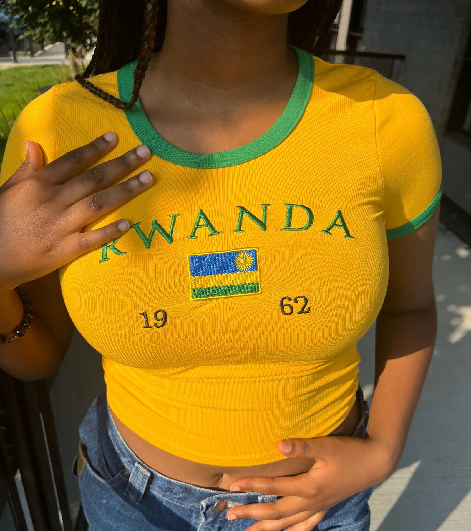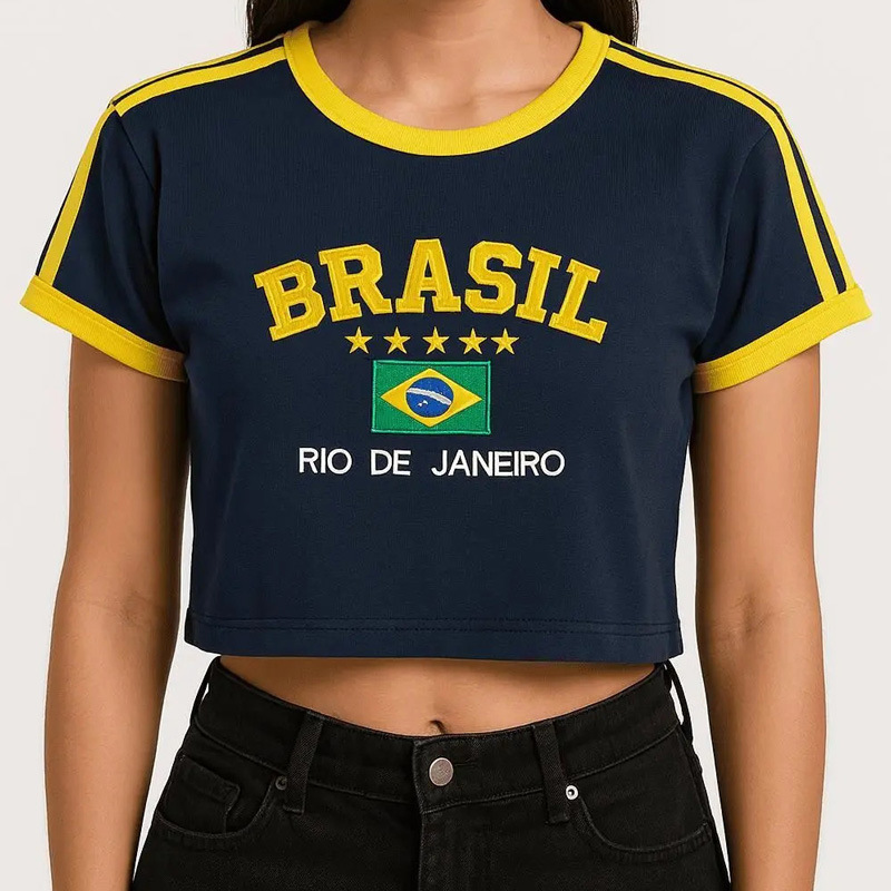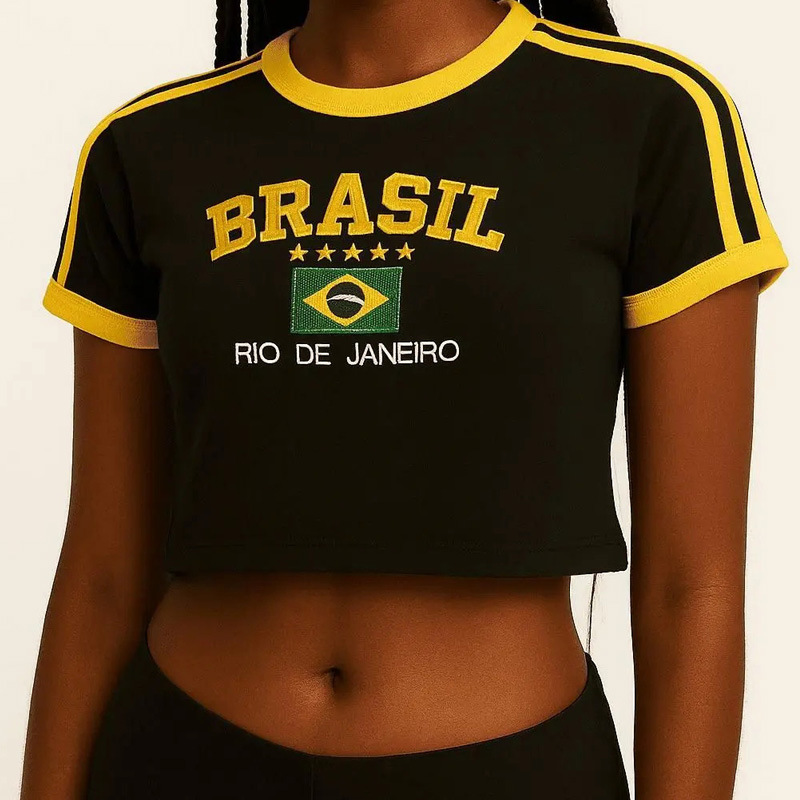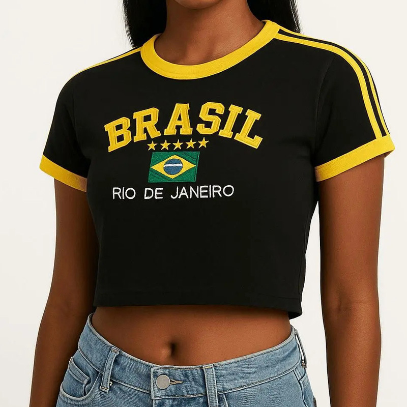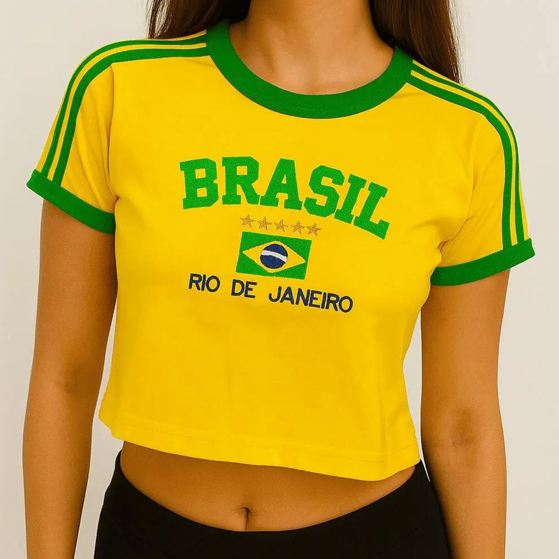 빈티지 미적 탑 녹색 여름 티셔츠 수 놓은 편지 패턴 짧은 소매 아기 배꼽 의류 레이디 도매스토어 가기